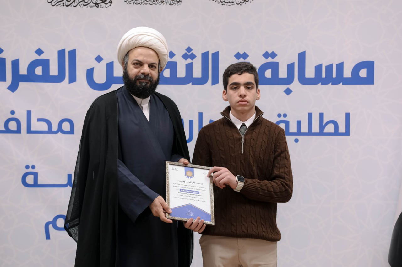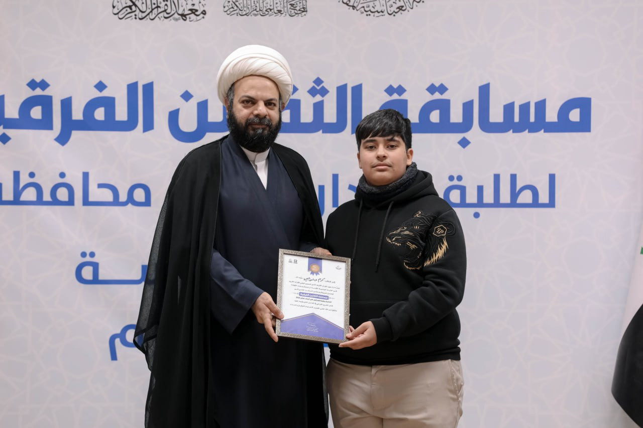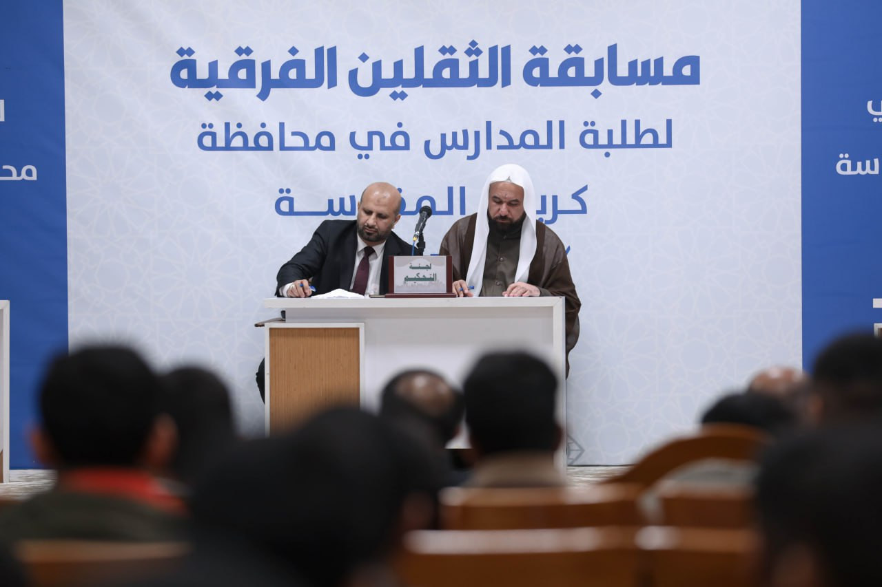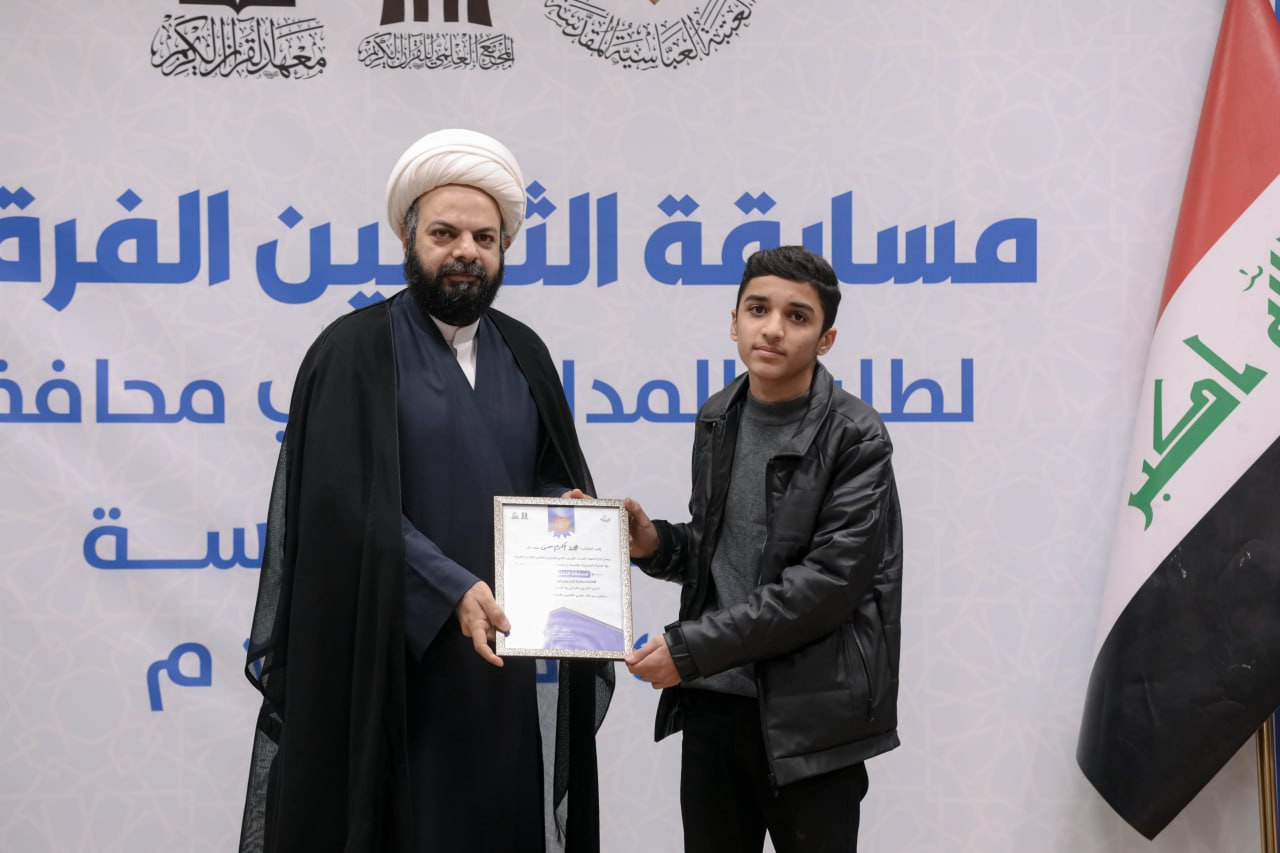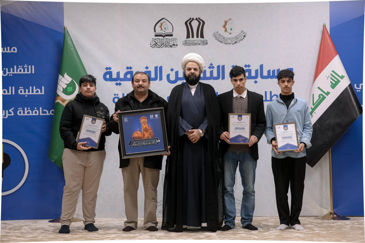 يواصل المَجمَعُ العلميّ للقرآن الكريم في العتبة العباسية المقدسة، مسابقةَ الثقلين الفِرقية لطلبة مدارس كربلاء، وذلك ضمن المشروع القرآني في المدارس، الذي يشرف على تنفيذه معهدُ القرآن الكريم في كربلاء. وقال مدير معهد القرآن الكريم التابع للمَجمَع الشيخ جواد النصراوي: إنّ "المعهد يواصل إقامة مسابقة الثقلين الفرقية لطلبة مدارس محافظة كربلاء، التي تأتي ضمن المشروع القرآني في المدارس، وشملت في هذه النسخة جولات عدة شاركت فيها 6 مدارس من كربلاء، وهي: متوسطة الإقدام، وعلي الوردي، وابن حيان، والعلامة الحلي، والرواد، وإمام المتقين ". وأضاف أنّ "المسابقة أُقيمت لتعزيز الجانب المعرفي لدى الطلبة، عبر مجموعة من الأسئلة الفقهية والعقائدية والقرآنية التي تمس واقعهم وتسهم في تنمية وعيهم الديني". وأشار النصراوي إلى أنّ: "نتائج المسابقة أسفرت عن فوز متوسطة الإقدام بالمركز الأول، وحلت متوسطة العلامة الحلي في المركز الثاني، وجاءت متوسطة إمام المتقين في المركز الثالث، في حين حقق بقية المتسابقين درجات متقاربة، مما يعكس المستوى العالي للمشاركين، وفي ختام المسابقة وُزّعت شهادات الشكر والتقدير على المشاركين، فضلًا عن هدايا مالية ومعنوية".