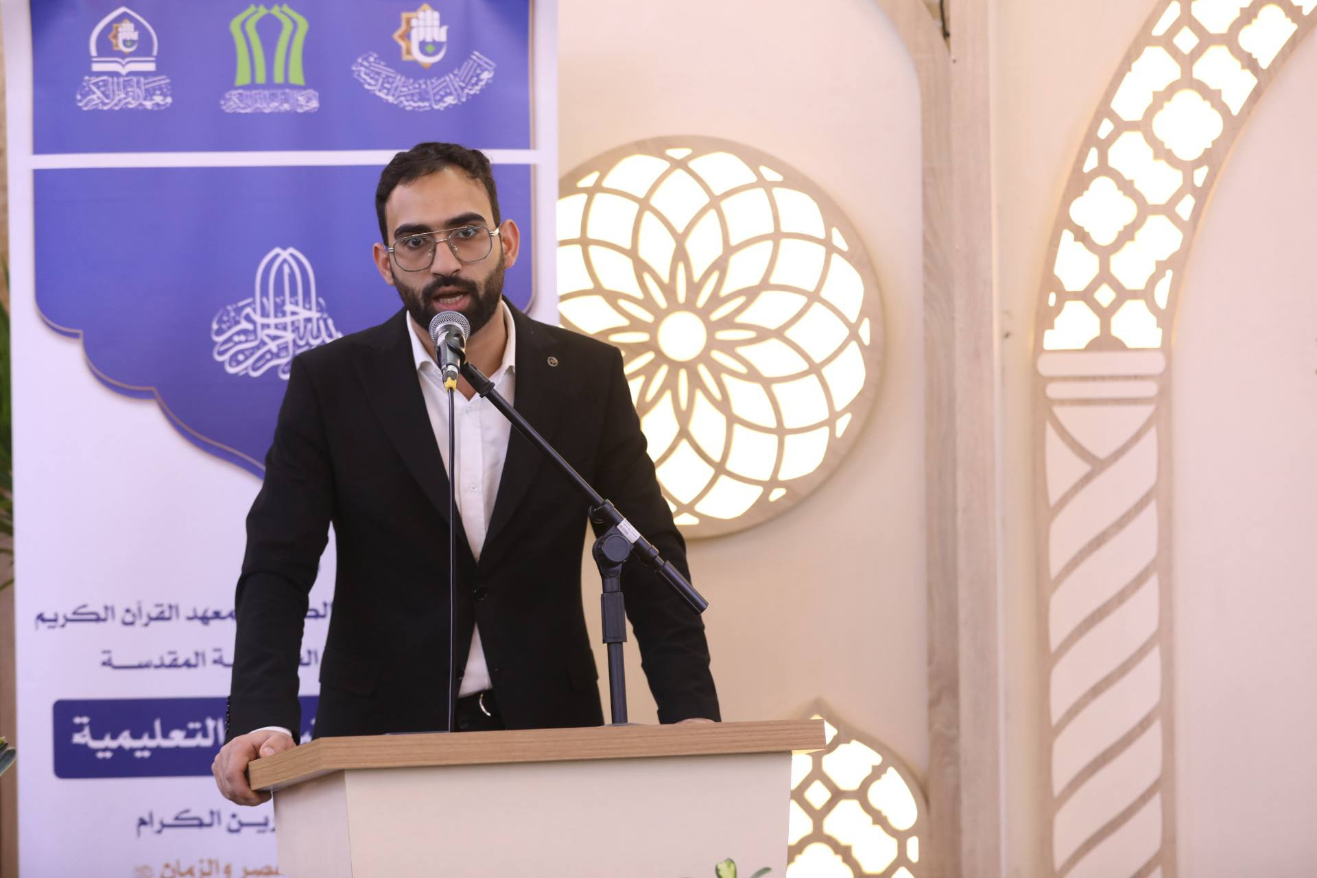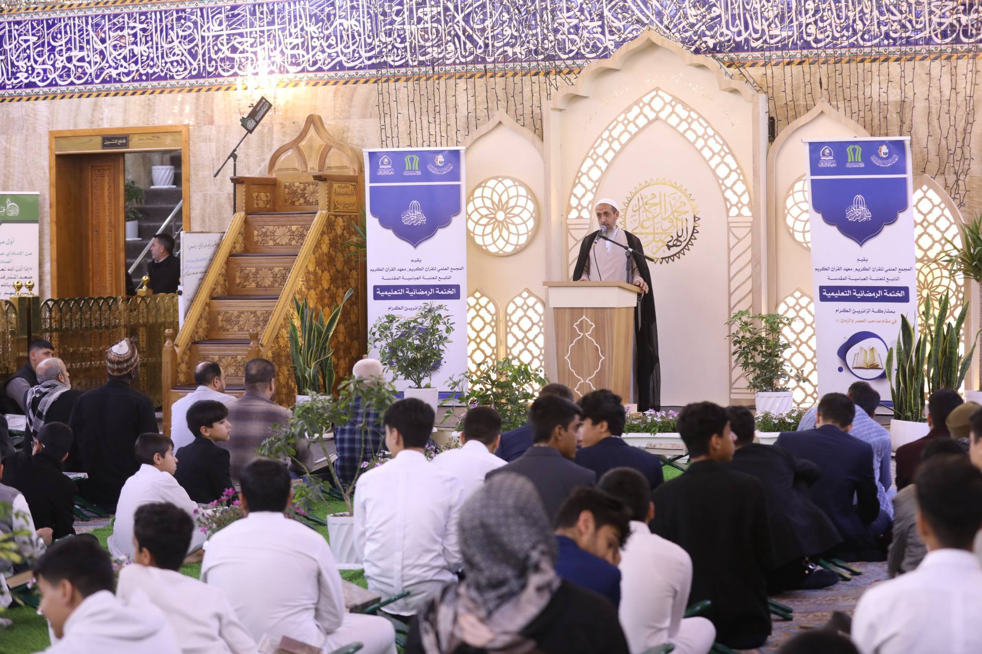 اختتم المجمع العلمي للقرآن الكريم في العتبة العباسية المقدسة، الختمات القرآنية الرمضانية التي أقامها في مقام الإمام المهدي (عجّل الله فرجه) طوال أيام الشهر الفضيل. وقال مدير معهد القرآن الكريم في كربلاء التابع للمجمع، الشيخ جواد النصراوي: إنّ "المعهد اختتم فعاليته الرمضانية في مقام الإمام المنتظر (عجّل الله فرجه)، عبر حفل ختام شهد فقرات متعددة". وأضاف، أنّ "الحفل شهد تلاوة الجزء الثلاثين من القرآن الكريم، وأعقبها كلمة للمعهد ألقاها الشيخ علي الرويعي، مثمنًا الجهود المبذولة في إقامة الفعاليات الرمضانية، وتقديم الشكر للمساهمين في إنجاح هذه البرامج، واختُتم بتكريم المشاركين في الختمات". وبيّن أنّ "المعهد أقام في المقام ختمتين قرآنيتين، الأولى تعليمية للزائرين، والثانية يتلوها طلبة مشروع حفظ القرآن الكريم في كربلاء والمحافظات حفظًا على الغيب، التي حظيت بعناية العتبة العباسية المقدسة".