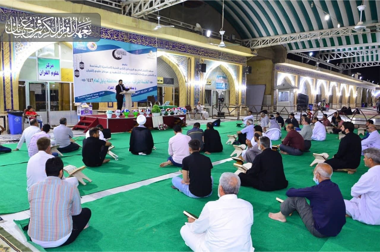 أحيا معهد القرآن الكريم فرع بابل، التابع للعتبة العباسية المقدسة، وبالتعاون مع مركز علوم القرآن الكريم في الأمانة الخاصة لمزار زيد الشهيد (عليه السلام) محفلاً قرآنيًا مباركًا، ضمن برامجه الرمضانية احياءً لأيام وليالي الشهر الفضيل، وبمشاركة نخبة من قراء الفرع. المحفل افتتح بتلاوة لقارئ المزار صلاح العبادي، اعقبها فقرة تفسيرية قدمها الشيخ الدكتور حسن المعموري أستاذ مادة التفسير في معهد القرآن الكريم فرع بابل، جاء بعدها تلاوة للقارئ البصير حسين الطفيلي، واختتم بتلاوة القارئ مجيد التميمي. يذكر أنّ لمعهد القرآن الكريم فرع بابل مجموعة من الأنشطة القرآنية خلال شهر رمضان المبارك، يقيمها بمناطق متفرقة من المحافظة بغية نشر الثقافة القرآنية بين افراد المجتمع.