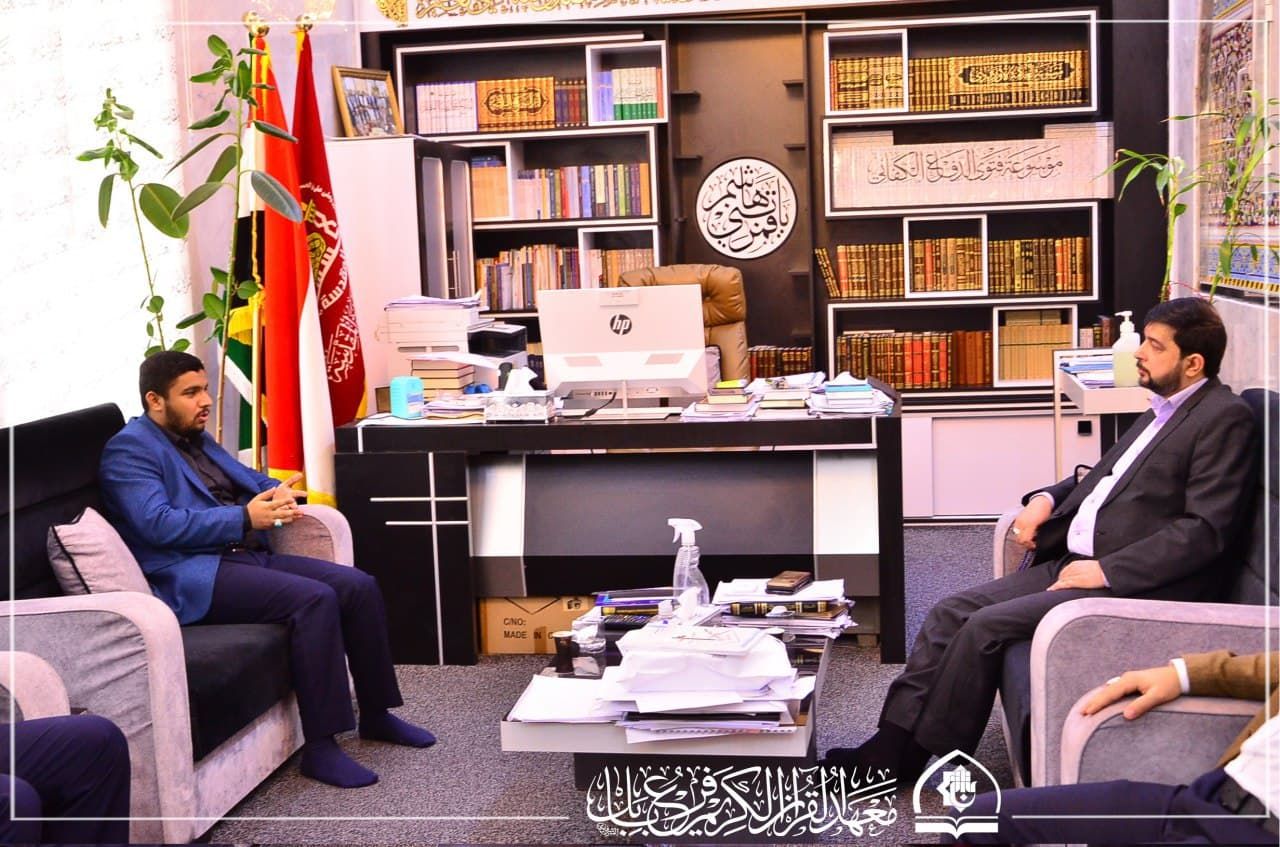 وفدٌ من معهد القرآن الكريم فرع بابل يزور قسم الإعلام في العتبة العباسية المقدسة زار وفد من معهد القرآن الكريم فرع بابل برئاسة مسؤول الفرع السيد منتظر المشايخي قسم إعلام العتبة العباسية المقدسة، وكان في استقبال الوفد السيد رئيس القسم الدكتور مشتاق العلي، في مقره بالعتبة المطهرة. الزيارة جاءت لتبادل الخبرات وإنتاج عمل مشترك بين الطرفين، في الانشطة القرآنية المقامة في المحافظة، وكذلك الأنشطة الإعلامية التي يقوم بها الجانبين، كما تضمن اللقاء مداولة آلية إبراز الأنشطة القرآنية المقامة في البلاد، وإعداد برنامج خاص بهذا الجانب. رئيس قسم الإعلام الدكتور مشتاق العلي، عبر عن سعادتهِ بهذه الزيارة مثمنًا هذه المبادرة عادًّاً إياها بالخطوة الواعية التي من شأنها ان تصبّ في تطوير العمل المبارك.