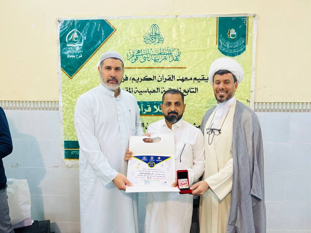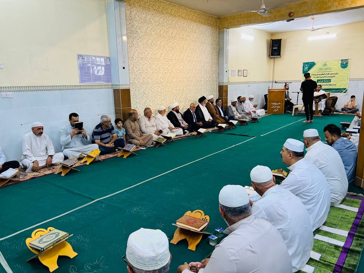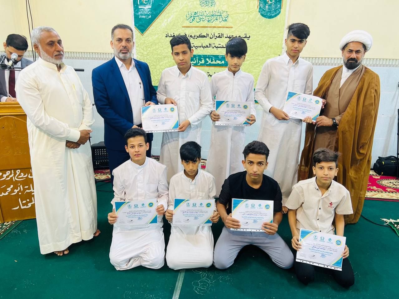 احتفى معهد القرآن الكريم فرع بغداد التابع للمجمع العلمي للقرآن الكريم في العتبة العباسية المقدسة بتخرّج طلبة الدورات القرآنية لعام (2022م). rnجاء ذلك خلال الحفل الختامي الذي أقامه المعهد في قضاء الحسينية في العاصمة بغداد.rnإذ افتتح الحفل بتلاوة آيات من الذكر المبارك بصوت أحد الطلبة المتخرجين القارئ (محمود الأبيض)، ثم قراءة سورة الفاتحة على أرواح شهدائنا الأبرار، جاء بعدها كلمة مسؤول فرع بغداد الأستاذ (نبيل الساعدي) بيّن فيها أبرز الأنشطة القرآنية التي أقامها المعهد خلال السنة الماضية، مشيراً إلى 11111 أن المعهد أقام (١٥٠) دورة قرآنية صيفية لأكثر من(٨٠٠٠) طالب، تنوعت ما بين دورات لأحكام التلاوة والتجويد، وأخرى للحفظ، فضلاً عن الدورات التحقيقية 11111. rnموضحاً: 11111 أن الأنشطة تضمنت أيضاً إقامة الندوات العلمية، والمحافل، والمسابقات، والختمات القرآنية توزعت على مختلف مناطق العاصمة 11111rnتلا ذلك كلمة لممثل الطلبة المتخرجين الطالب (علاء الحريشاوي) قدّم خلالها شكره وتقديره للعتبة العباسية المقدسة متمثلة بمعهد القرآن الكريم على عنايتهم بإقامة الأنشطة والدورات القرآنية الهادفة إلى إشاعة نهج الثقلين الشريفين بين أوساط المجتمع، جاء بعدها تلاوة بصوت القارئ (محمد باقر الحمراني)، واختتم الحفل بتكريم الطلبة المشاركين وأساتذتهم بدروع وشهادات تخرج.