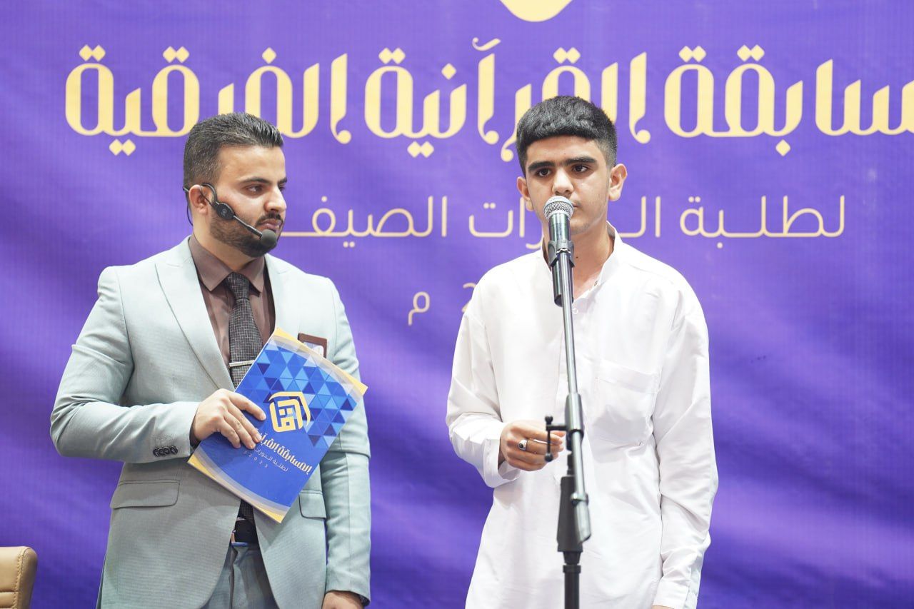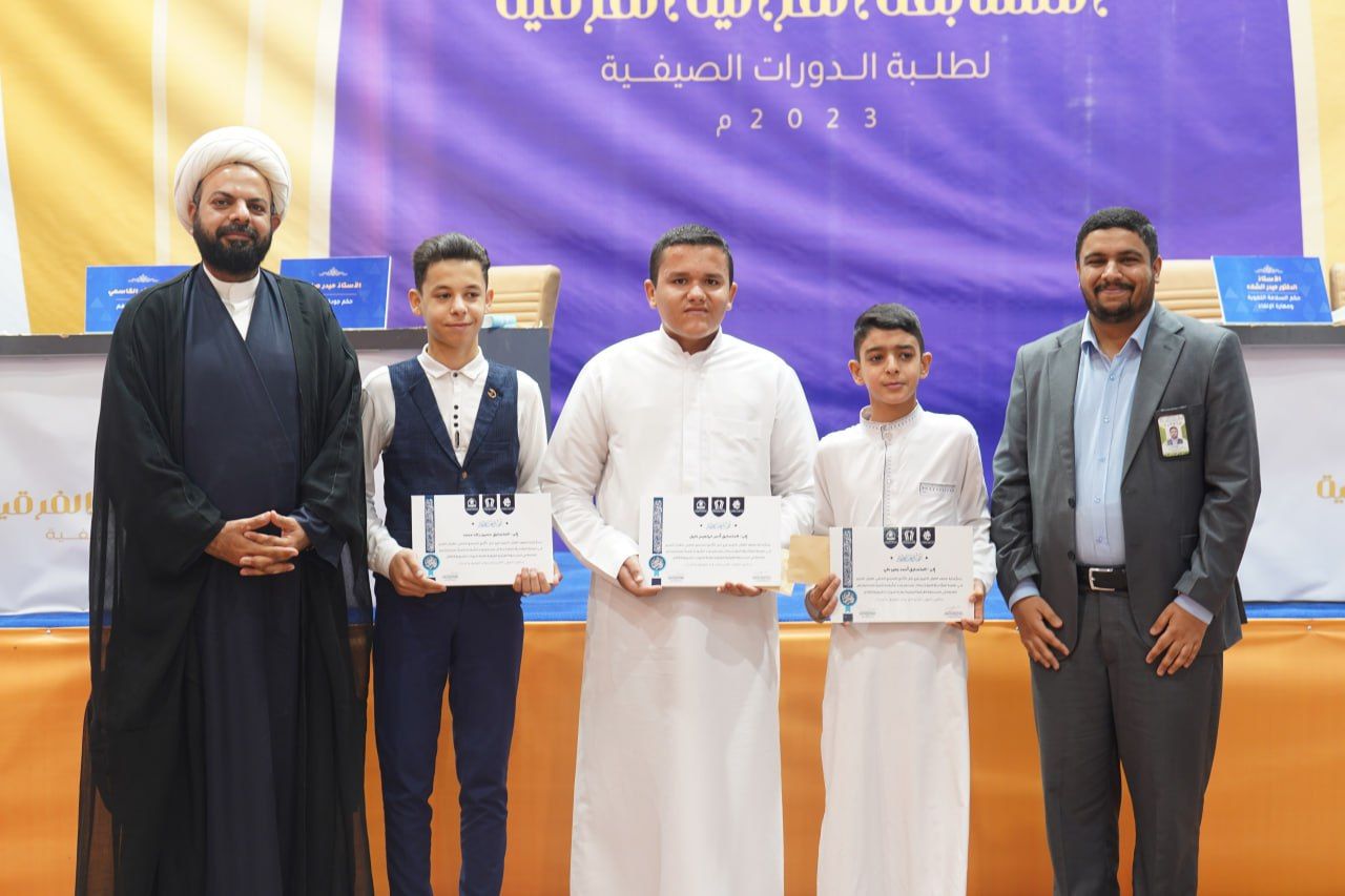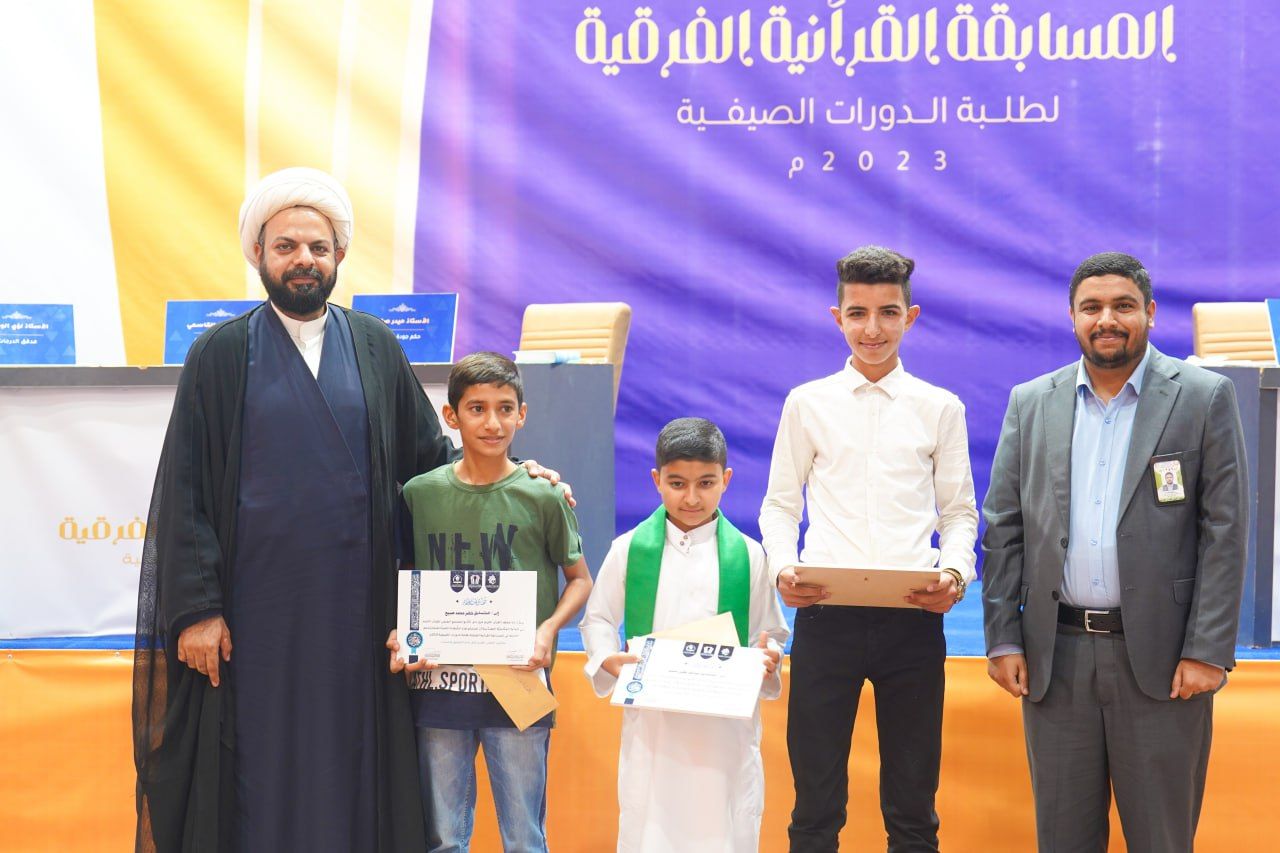 نظم المجمع العلمي للقرآن الكريم في العتبة العباسية المقدسة، ممثلًا بمعهد القرآن الكريم فرع بابل وبالتعاون مع الأمانة الخاصة لمزار الإمام القاسم -عليه السلام- مسابقة فرقية لطلبة الدورات الصيفية بمشاركة عشرة فرق من عموم أقضية ونواحي محافظة بابل.rnrnالمسابقة تضمنت أسئلة فقهية، وعقائدية، كذلك قصائد شعرية بحب آل البيت -عليهم السلام-؛ فضلًا عن حفظ سورة الفجر المباركة، وأجريت تحت إشراف لجنة تحكيمة مختصة.rnrnوقال مدير معهد القرآن الكريم الشيخ (جواد النصراوي) خلال كلمة ألقاها في حفل افتتاح المسابقة: 11111إنّ المجمع العلمي في العتبة العباسية المقدسة بجميع تشكيلاته يقدم خدماته المجانية لمختلف فئات المجتمع، ويسعى إلى بناء جيل واعٍ مثقف بثقافة القرآن والعترة من خلال مشروع الدورات الصيفية الذي أطلقه في اثنتي عشرة محافظة عراقية بمشاركة (54000)طالب11111.rnrnكما وضح 11111 إنّ هذه المسابقة القرآنية الفرقية التي يشرف عليها فرع بابل المعطاء لها أهداف عديدة؛ من أهمها إحياء روح المنافسة لدى الفتية في تعلم علوم الثقلين الشريفين، فضلًا عن إكتشاف الموهوبين من طلبة الدورات القرآنية وإدارجهم في ورشات تطويرية.