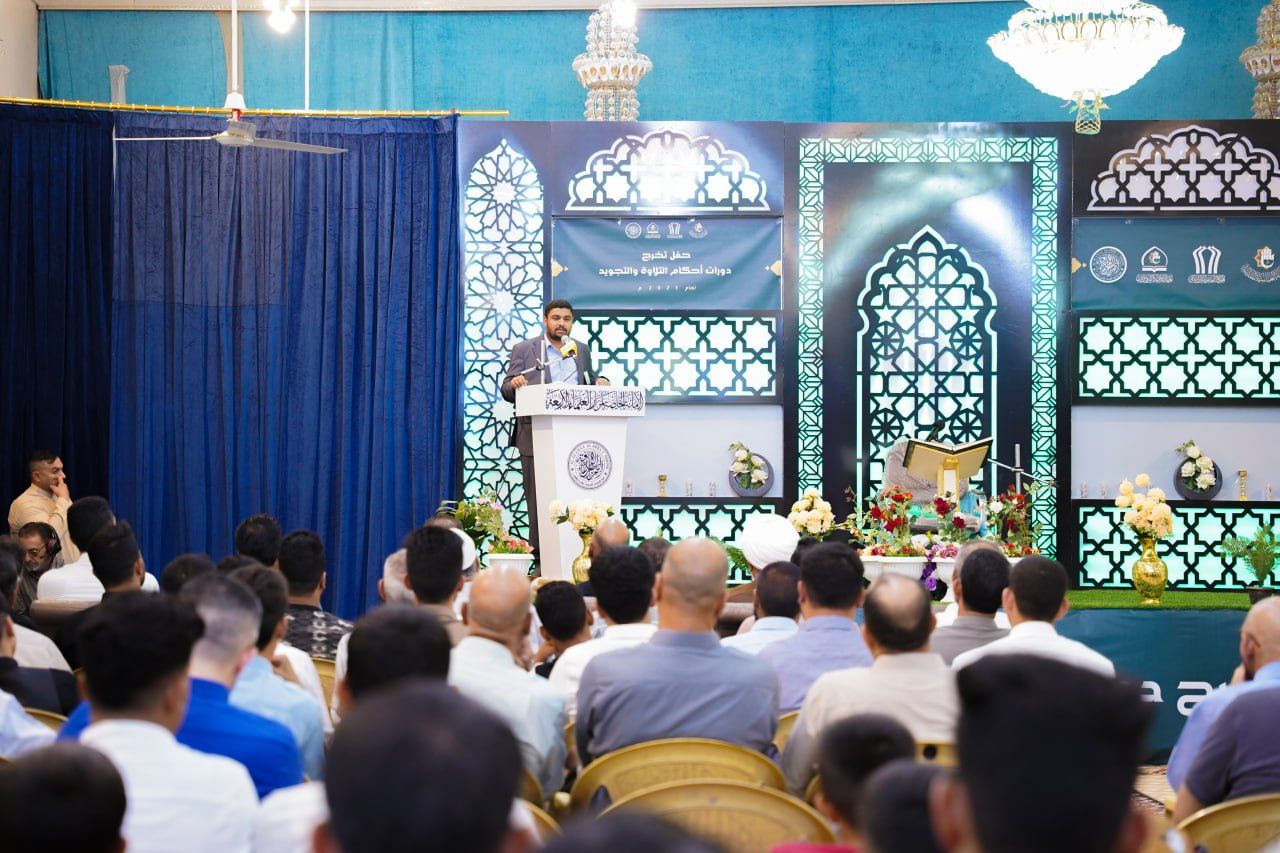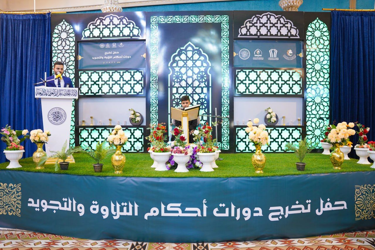 اختتَمَ المجمع العلمي للقرآن الكريم في العتبة العباسية المقدسة، دورات أحكام التلاوة والتجويد بتخرّج أكثر من 300 طالب في محافظة بابل ، وأشرف على إقامة الدورات معهد القرآن الكريم فرع بابل التابع للمجمع. rnrnوقال مدير معهد القرآن الكريم في العتبة المقدسة الشيخ جواد النصراوي إنّ المعهد أقام الحفل الختامي لتخرّج أكثر من (300) طالب، تلقّوا مجموعة من المحاضرات في أحكام التلاوة والتجويد، ومرّوا عبر مراحل عديدة منها مرحلة التمهيد والمبتدئين والمتقدّمين، بعد إجراء الاختبارات العمليّة والنظريّة لهم.rnrnبدوره قال مسؤول وحدة التلاوة في فرع بابل الأستاذ لؤي عبد الحمزة إنّ الدورات استمرّت على مدار ستة أشهر بواقع يومين في الأسبوع، وبعدد (19) دورة توزّعت في مركز المحافظة والأقضية والنواحي التابعة لها.rnrnوفي السياق نفسه عبّر المشاركون في الدورات عن حجم الفائدة المكتسبة، من خلال المحاضرات المتنوّعة في أحكام التلاوة والتجويد، التي قُدّمت لهم من قِبل أساتذة اختصاص.