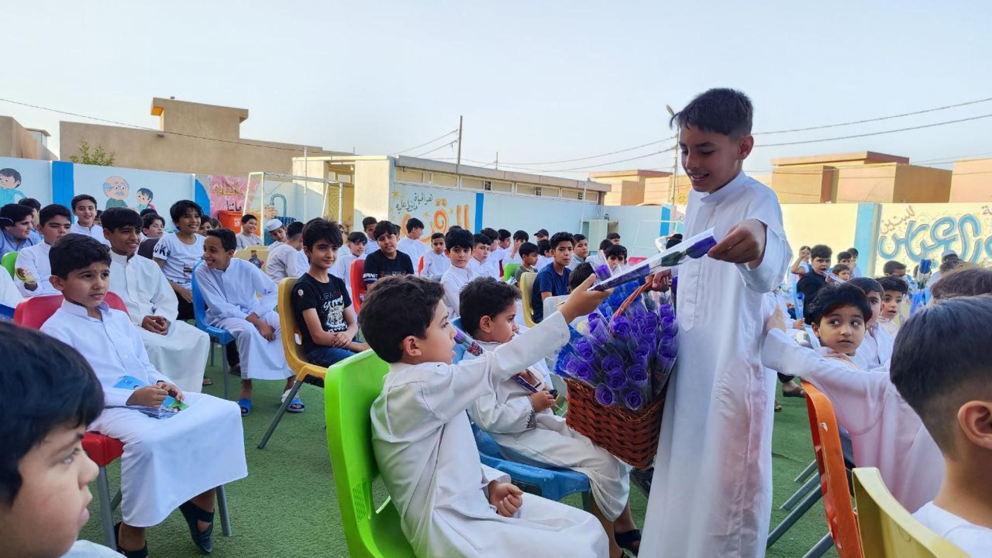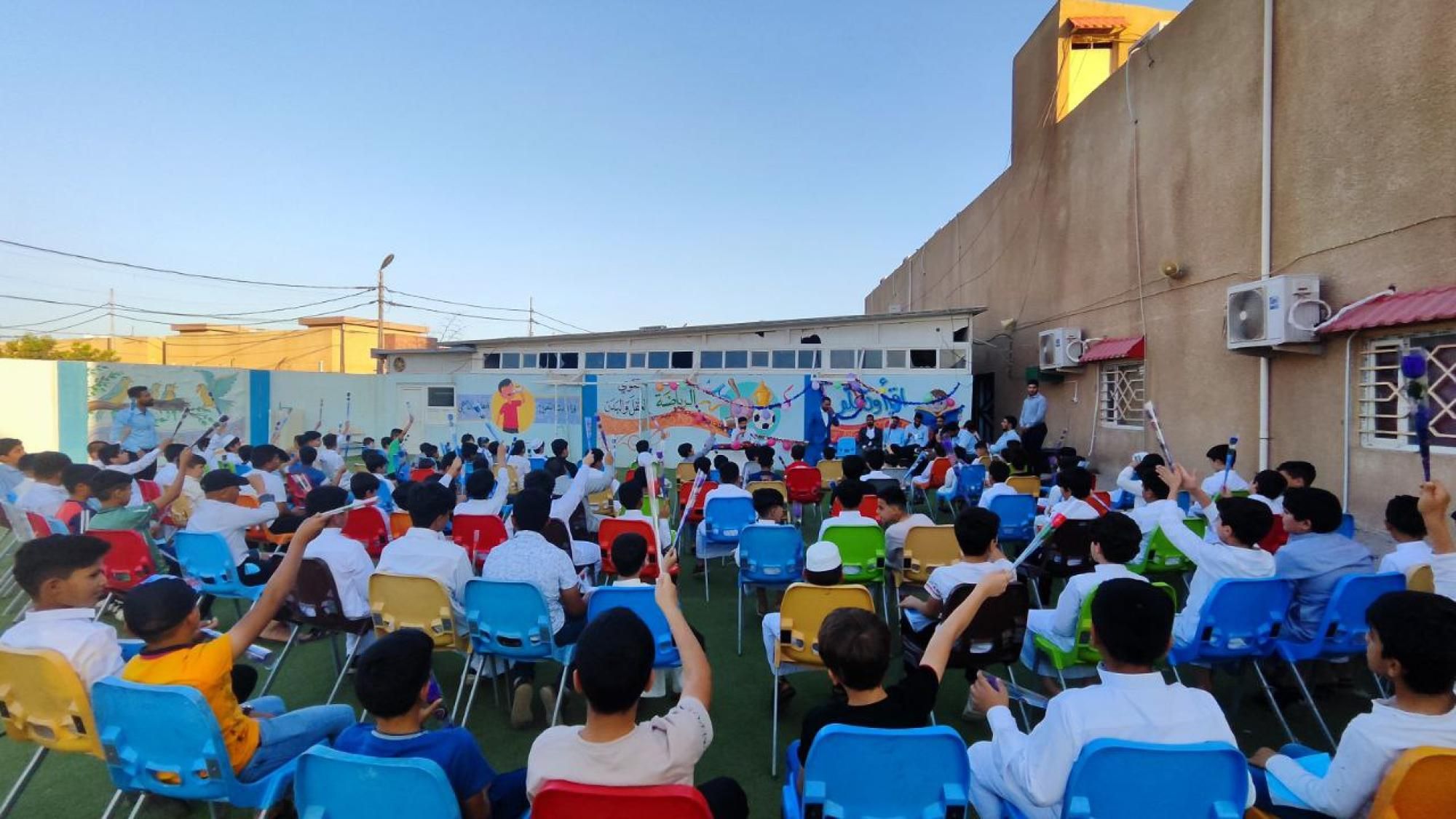أحيا طلبة مشروع الدورات القرآنية الصيفية الذي يقيمه المجمع العلمي للقران الكريم في العتبة العباسية، ذكرى زواج أمير المؤمنين الإمام علي بالسيدة فاطمة الزهراء (عليهما السلام).rnrnوأُقِيمت فعاليات الاحتفال الذي أشرف على تنظيمه معهد القران الكريم التابع للمجمع، على أرض مدرسة نور العباس في مجمع العباس السكني بكربلاء.rnrnوشهد الاحتفال فعاليات متعددة قدّمها أساتذة مشروع الدورات القرآنية الصيفية وطلابه، إذ استُهِل المحفل بتلاوة آيات من الذكر الحكيم، تلتها أهازيج ولائية صدحت بها حناجر الطلاب احتفاء بهذا الزفاف العظيم الذي خصّ الله تعالى به الإمام علي (عليه السلام) بالزواج من بنت رسول الله (صلى الله عليه واله) السيدة فاطمة الزهراء (سلام الله عليها).rnوخصّص المجمع العلمي أكثر من (1200) مسجد وحسينية في (12) محافظة لمشروع الدورات القرآنية الصيفية، بمشاركة أكثر من (54) ألف طالب ويشرف على تعليم الطلبة أكثر من (2000) أستاذ اختارهم المجمع بعناية ويسعى إلى تمكينهم عبر إشراكهم في ورشات ودورات مكثّفة وبما يحقق أهداف المشروع.rnrn