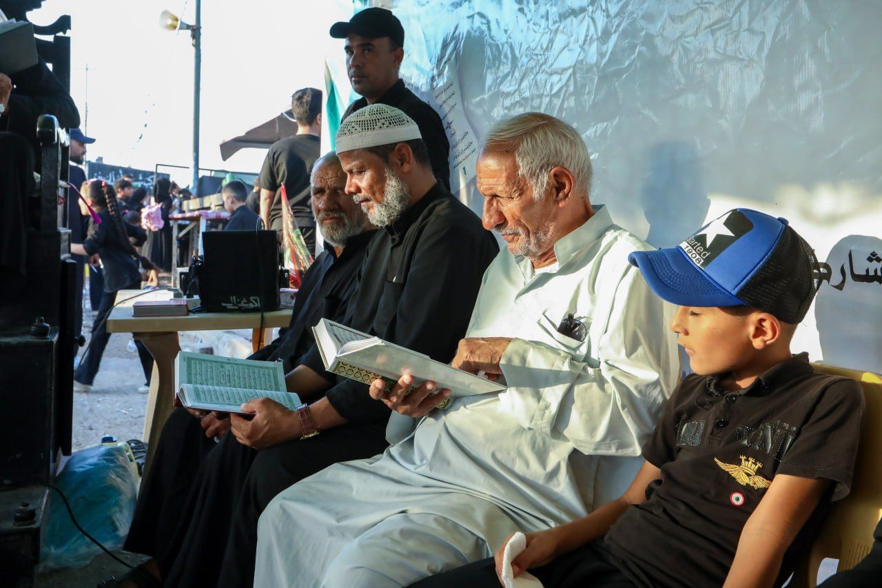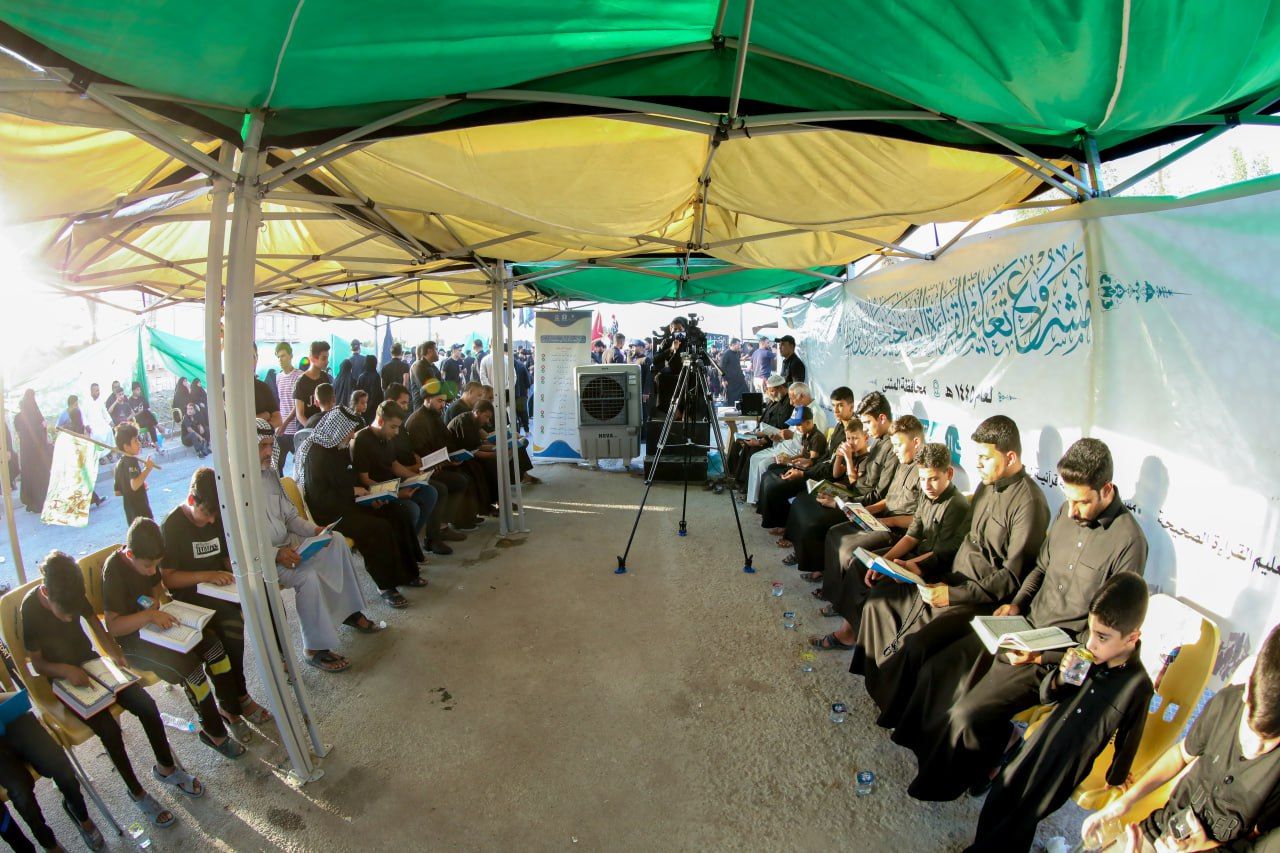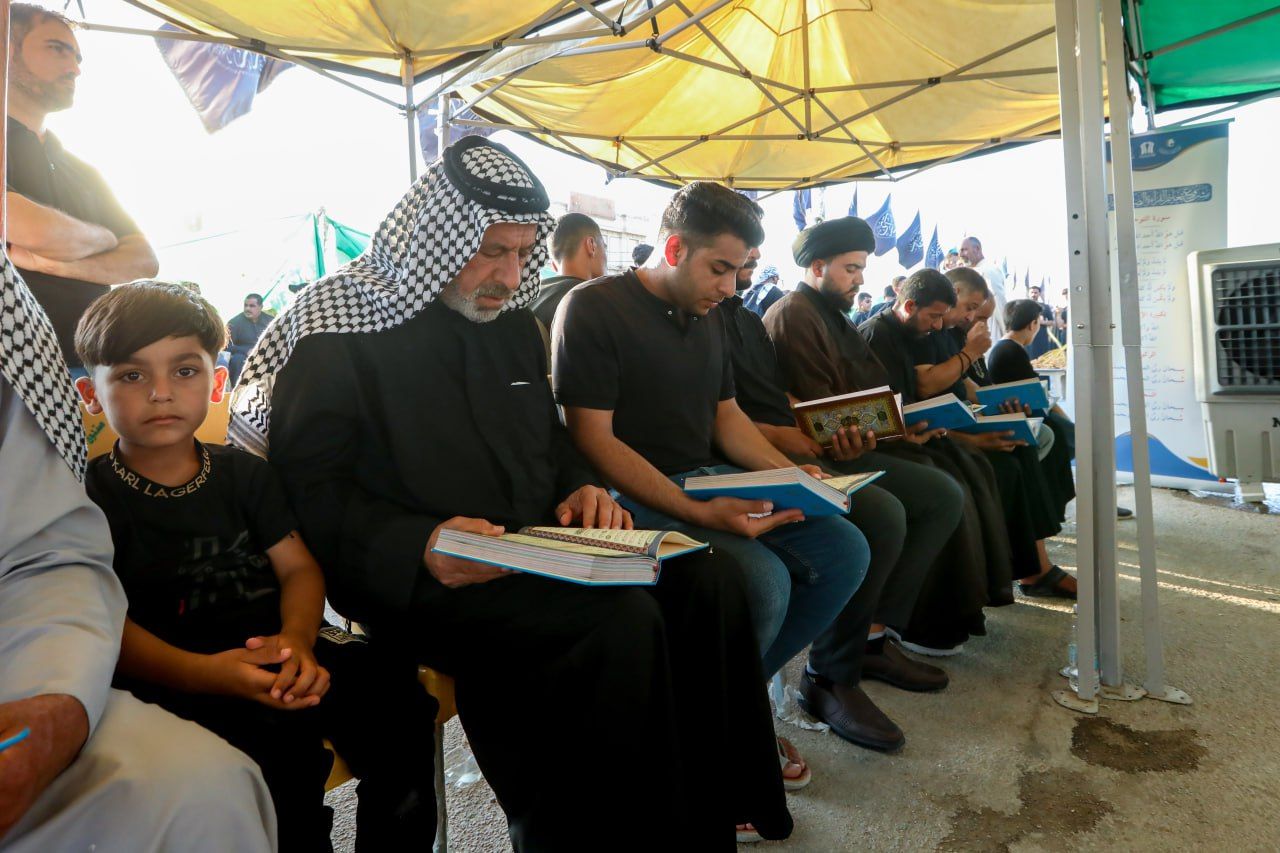 rnأقام معهد القرآن الكريم فرع المثنى التابع للمَجمَع العلميّ للقرآن الكريم في العتبة العباسية المقدسة، محفلاً قرآنيًا ضمن البرامج المتنوعة التي تقام في مشروع تعليم القراءة الصحيحة للزائرين.rnالمحفل يهدف إلى بث الثقافة القرآنية بين جموع الزائرين في سيرهم المبارك صوب كربلاء المقدسة لأداء زيارة الأربعين وخدمة الثقلين الشريفين.rnوقد افتتح بتلاوة للقارئ (علي حسين)، ثم تلاوة للقارئ (حسين هيثم)، وتلاوة القارئ وليد خالد، والقارئ (أمير علي).rnيذكر أن معهد القرآن الكريم وفروعه في المحافظات افتتح (52) محطة قرآنية في كل من (المثنى، والديوانية، وبابل، وبغداد، وكربلاء المقدسة).