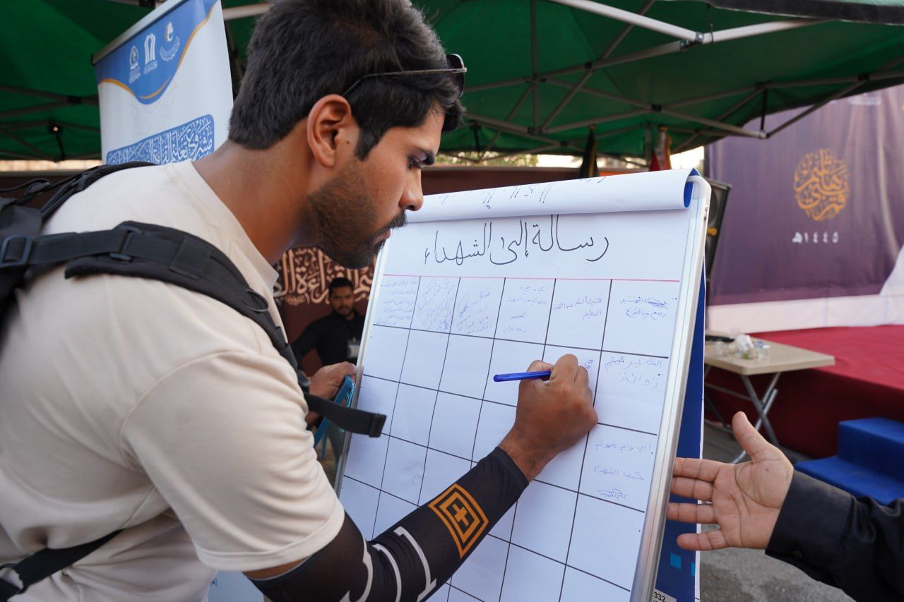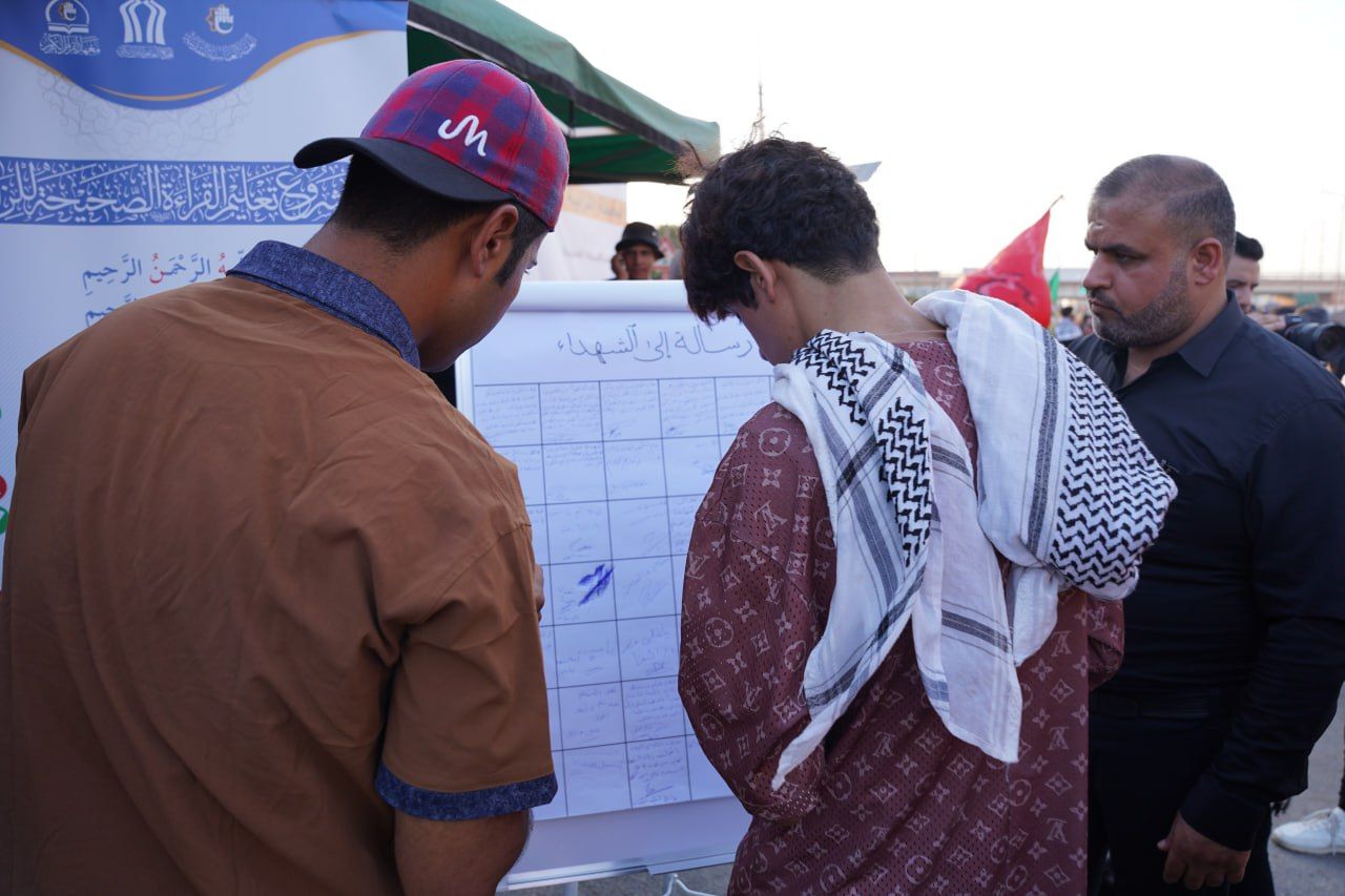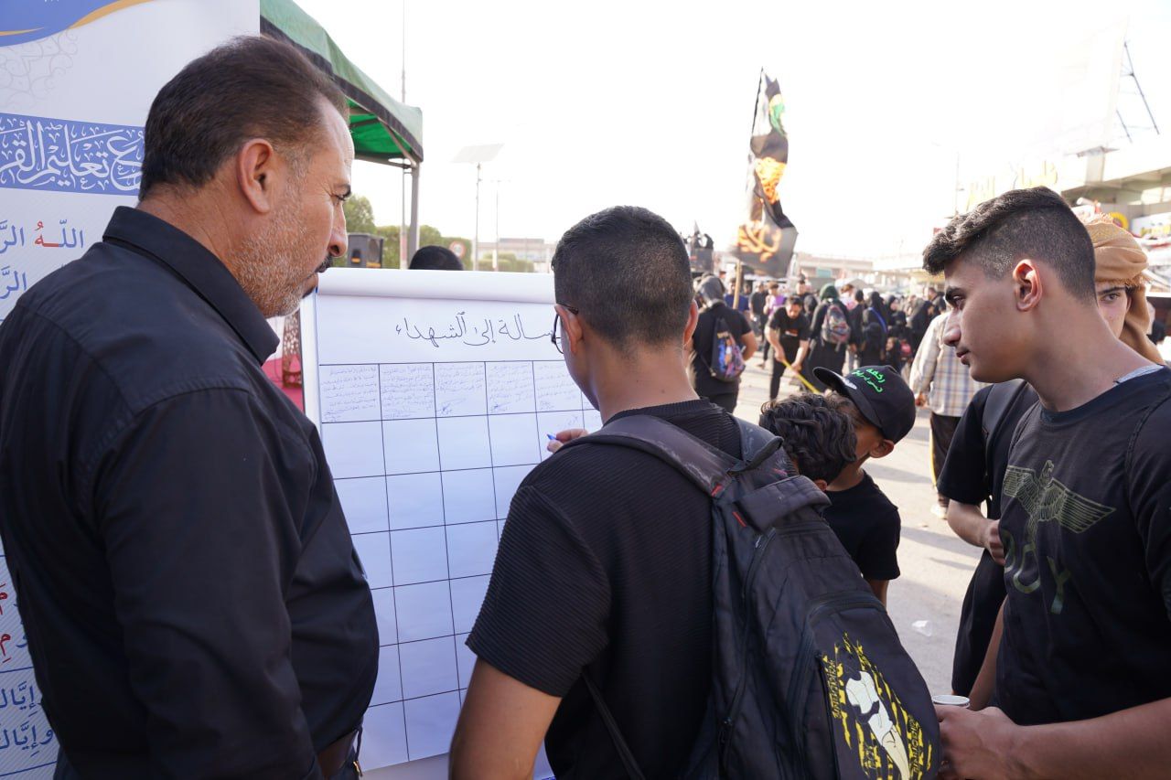 rnاستحدث معهد القرآن الكريم فرع بابل التابع للمَجمَع العلميّ للقرآن الكريم في العتبة العباسية المقدسة، فقرة جديدة يبعث من خلالها برسائل إلى الشهداء، وهي ضمن البرامج الكثيرة لمشروع تعليم القراءة الصحيحة للزائرين.rnالقائمين على المحطة القرآنية المركزية في بابل اكدوا بأن الزوار رحبوا بفكرة كتابة رسالة إلى الشهداء خلال زيارتهم وأحيائهم أربعينية الإمام الحسين عليه السلام.rnالرسائل تضمنت إهداء الشهداء سور من القرآن الكريم، وكلمات شكر وتقدير يطرزها الزوار استذاكارًا لتضخيتهم العظيمة.