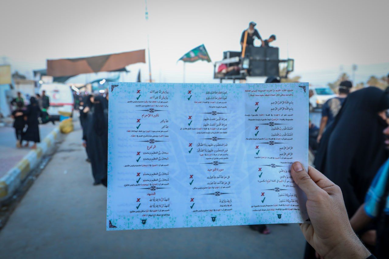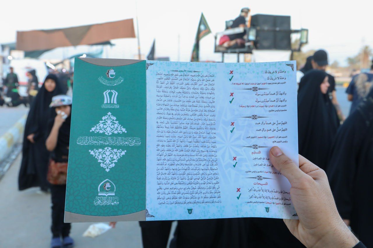 وزع المجمع العلمي للقرآن الكريم 200.000 ابروشور تعليمي على زائري الأربعين ضمن مشروع تعليم القراءة الصحيحة للزائرين الذي يشرف عليه معهد القرآن الكريم وفروعه في المحافظات.rnمدير معهد القرآن الكريم الشيخ جواد النصراوي بين: إن 11111المعهد وفروعه في المحافظات قام بتوزيع 200.000 ابروشور على جموع الزائرين القاصدين صوب كربلاء المقدسة لأداء زيارة الأربعين11111.rnوأضاف: إن11111 الابروشور التعليمي ضم تعليم سورة الفاتحة وسورة الإخلاص مع أذكار الصلاة وقد وضحت فيه الأخطاء الشائعة التي رصدها أساتذة المشروع في السنوات الماضية كما تصمن زيارة الأربعين المباركة.rnيذكر أن معهد القرآن الكريم وفروعه في المحافظات أفتتح (52) محطة تعليمية قدمت خدماتها القرآنية للزوار القاصدين صوب كربلاء المقدسة لأداء زيارة الأربعين