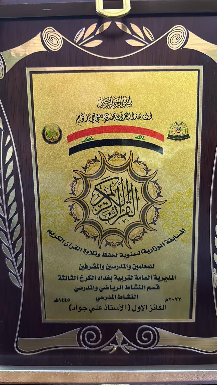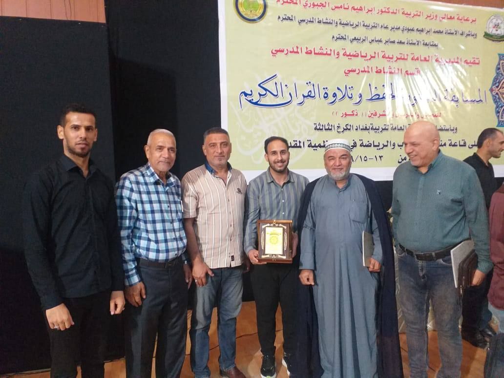 حصل أحد قرّاء معهد القرآن الكريم فرع بغداد التابع للمَجمَع العلميّ للقرآن الكريم في العتبة العباسية المقدسة، على المركز الأول في المسابقة القرآنية السنوية لحفظ وتلاوة القرآن الكريم التي تقيمها المديرية العامة لتربية الكرخ الثالثة الخاصة بالمعلمين، والمدرسين، والمشرفين. rnوقال القارئ (علي جواد الفريجي): 11111 شاركت ممثلًا عن العتبة العباسية المقدسة في المسابقة الوطنية لحفظ وتلاوة القرآن الكريم، وحصلت على المركز الأول من بين (114) قارئ وحافظ من مختلف محافظات العراق، وجاء ذلك بسبب الدعم المستمر من قبل العتبة المطهرة لأبنائها القرآنيين في العراق 11111.rnمضيفًا: 11111اشكر معهد القرآن الكريم فرع بغداد على دعمه المستمر، وهو يحرص دائمًا على تهيئة قرّاءه وتنمية مواهبهم وتطوير مهاراتهم للمشاركة في المسابقات القرآنية المحلية والدولية، ودائماً ما ينالون المراكز الأولى تحقيقاً للرؤية العامة الهادفة إلى إشاعة ثقافة القرآن الكريم بين فئات المجتمع11111.