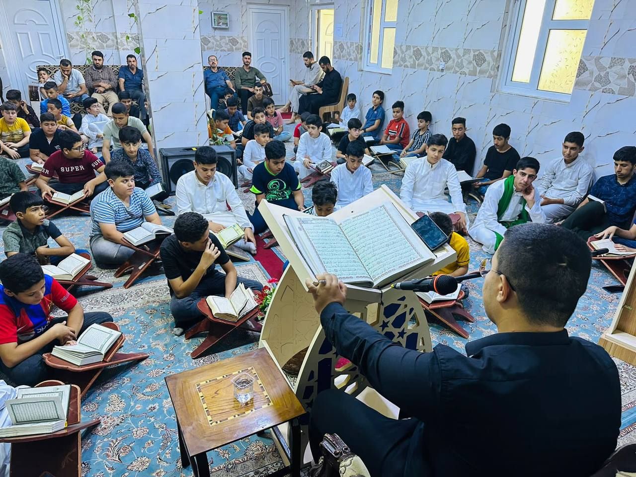 نظم معهد القرآن الكريم فرع الهندية التابع للمَجمَع العلميّ للقرآن الكريم في العتبة العباسية المقدسة، محفلاً قرآنيًا لتكريم الطلبة المتفوقين من دورات التحفيظ المستمرة دروسها على مدار العام.rnافتتح المحفل بتلاوة للقارئ (امين التميمي)، تلتها كلمة الفرع ألقاها مسؤوله السيد (حامد المرعبي) قدم فيها الشكر للأساتذة وأولياء الأمور الذين بذلوا الجهد الكبير في تحفيظ الطلبة للكتاب العزيز، كما بين فضل حفظ القرآن على الإنسان، تلا ذلك تلاوة جماعية، ومطاردة في الحفظ، وتم تكريم الطلبة المتميزين، بحضور أوليا أمورهم.