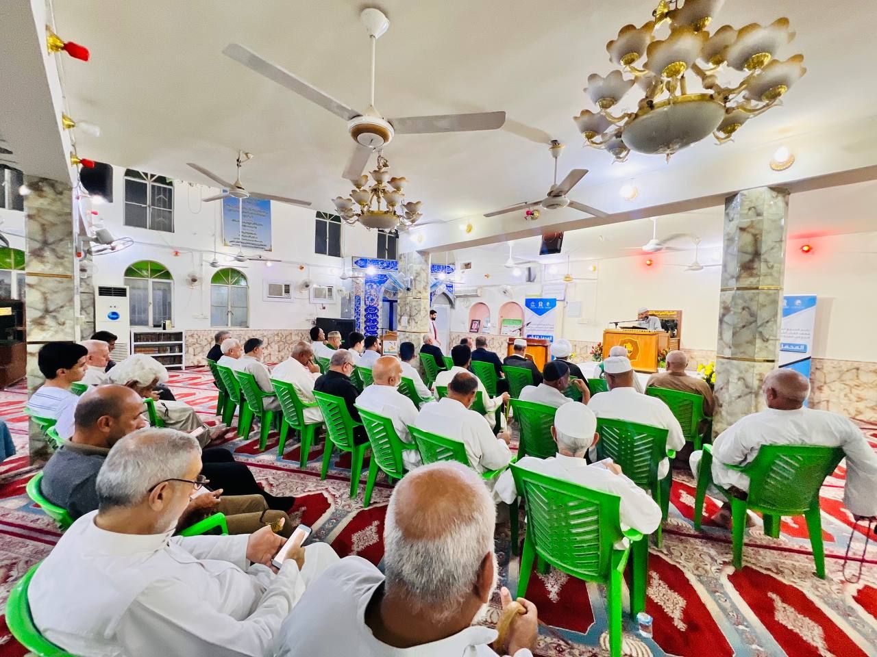 احتفى المَجمَع العلميّ للقرآن الكريم في العتبة العباسية المقدسة بذكرى تتويج الإمام الحجة المنتظر -عجل الله فرجه الشريف- عبر إقامة محفل قرآني في العاصمة بغداد.rnrnوأشرف على اقامة المحفل معهد القرآن الكريم فرع بغداد التابع للمجمع. rnrnالمحفل القرآني الذي أقيم في مسجد وحسينية الحاجة فخرية البيرماني بمنطقة الشعب افتتح بتلاوة بصوت القارئ (سلمان التميمي)، أعقبها قراءة سورة الفاتحة على أرواح الشهداء، ثم تلاوة بصوت القارئ (حسين الغزي)، جاء بعدها إلقاء بعض الأبيات الشعرية والابتهالات بصوت المنشد (علي الذهبي) احتفاءً بهذه الذكرى المباركة.rnrnكما تضمن المحفل تكريم أساتذة المعهد من قبل الأمانة العامة للعتبة العباسية المقدسة تثميناً لجهودهم المبذولة في إنجاح النشاطات القرآنية في عموم مناطق العاصمة بغداد.