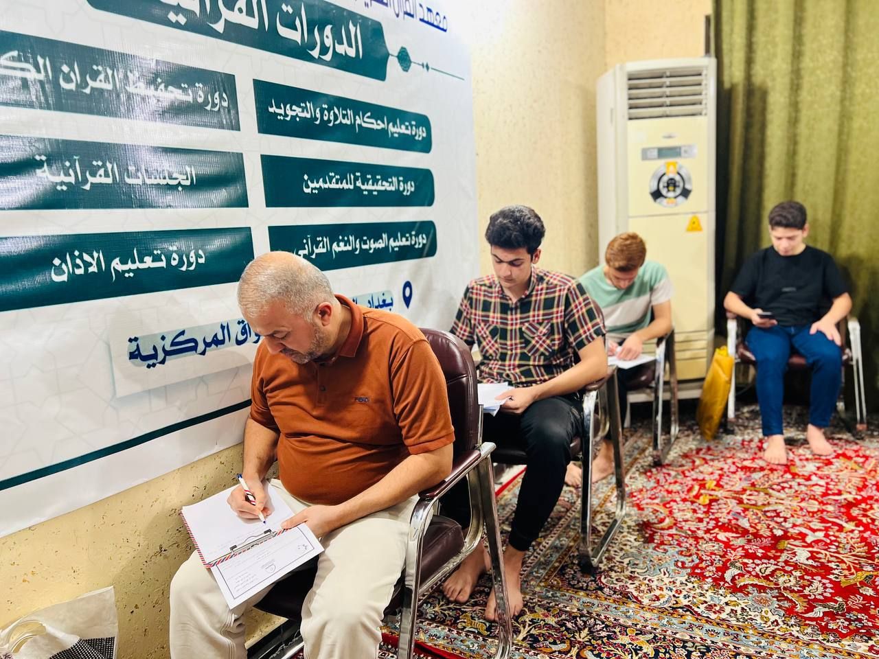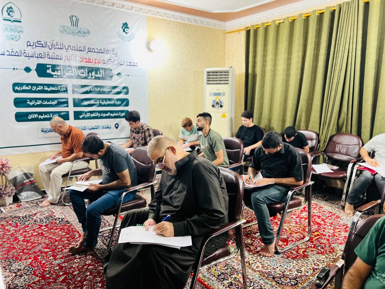 أجرت وحدة التلاوة في معهد القرآن الكريم فرع بغداد التابع إلى المجمع العلمي للقرآن الكريم في العتبة العباسية المقدسة اختباراً مركزياً موحداً لطلبة الدورات القرآنية في عموم مناطق بغداد بجانبيها الكرخ والرصافة والأقضية والنواحي. rnrnالاختبار المركزي تضمن مجموعة من الأسئلة للموضوعات التي تلقاها الطلبة خلال المرحلة من الدورة؛ بهدف قياس مدى استيعابهم لتلك الموضوعات وتحديد نقاط القوة والضعف، فضلاً عن قياس مدى تقدمهم في المادة العلمية التي يتلقونها. rnrnعلماً أن معهد القرآن الكريم فرع بغداد أطلق في منتصف العام الجاري دورات قرآنية في أحكام التلاوة والتجويد، ودورات تحقيقية، ودورات في القرآت العشرة، وعلوم القرآن.