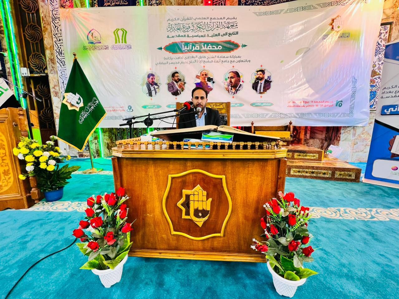أحيا معهد القرآن الكريم فرع بغداد التابع للمَجمَع العلميّ للقرآن الكريم في العتبة العباسية المقدسة ذكرى ولادة الإمام الحسن العسكري -عليه السلام- بإقامة محفل قرآني في العاصمة بغداد، بحضور جمعٌ من المؤمنين.rnالمحفل القرآني الذي أُقيم في مسجد وحسينية (الحاج رحيم مجيسر البيضاني) أُفتتح بتلاوة عطرة بصوت قارئ معهد القرآن الكريم فرع بغداد (علي الفريجي)، ثم قراءة سورة الفاتحة على أرواح الشهداء، تلاها كلمة لوكيل المرجعية الدينية العليا الشيخ (طارق البغدادي) تحدث فيها عن فضل إحياء المناسبات الدينية لأهل بيت النبوة -عليهم السلام-، مؤكداً أن هذا المحفل يُعد انطلاقة لسلسلة نشاطات قرآنية متنوعة ستقام في هذا المسجد المبارك في قابل الأيام؛ بهدف نشر الثقافة القرآنية على نطاق واسع يستهدف جميع فئات المجتمع. rnجاء بعدها كلمة المَجمَع العلميّ للقرآن الكريم ألقاها ممثلًا عنه مسؤول فرع بغداد الأستاذ (نبيل الساعدي) استعرض فيها أهم النشاطات القرآنية التي أقامها المعهد خلال العام الجاري من دورات، وندوات، ومسابقات قرآنية شملت جميع مناطق العاصمة بغداد بجانبيها الكرخ والرصافة، وأقضيتها ونواحيها. rnتلا ذلك تلاوة لقارئ العتبتين المقدستين السيد (حسنين الحلو)، أعقبها مشاركة لشاعر أهل البيت -عليهم السلام- (ناظم الحاشي)، ثم إنشادية قدمها المنشد (علي الذهبي) احياءً لهذه المناسبة العطرة، واختتم المحفل بتكريم عدد من منتسبي فرع المعهد في بغداد بشارة شكر وتقدير من قبل الأمانة العامة للعتبة العباسية المقدسة تثميناً لجهودهم في إقامة الأنشطة القرآنية.