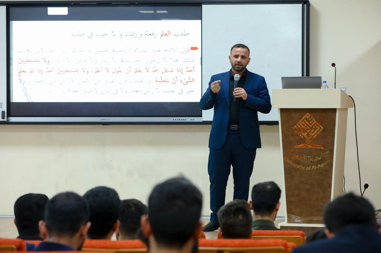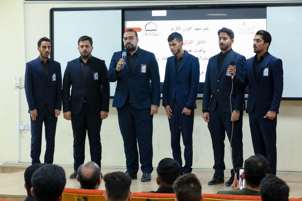 أطلق معهد القرآن الكريم التابع للمَجمَع العلميّ للقرآن الكريم في العتبة العباسية المقدسة، الملتقى القرآني في الجامعات والمعاهد العراقية، وكانت أولى جلساته في رحاب جامعة العميد، وشهد الملتقى تقديم محاضرات قرآنية، مفاهيمية، حوارية، ومحافل قرآنية، ومشاركات لحفاظ القرآن الكريم بهدف إشاعة الثقافة القرآنية بين طلبة الجامعات.rnافتتح الملتقى بتلاوة جماعية من قبل الفرقة القرآنية في مركز المشاريع القرآنية التابع للمَجمَع، ثم محاضرة قرآنية قدمها الدكتور (علي حمد) بعنوان (القرآن والعلم ودورهما في بناء الإنسان) بين فيها الهدف من وجود الإنسان، مستشهدًا بآيات قرآنية تبين هدف الوجود، تلتها مشاركة لطلبة مشروع حفظ القرآن الكريم الذي يقيمه المعهد استعرضوا فيها مهاراتهم في الحفظ من خلال الإجابة على اسئلة الحاضرين.rnوقال مدير معهد القرآن الكريم الشيخ (جواد النصراوي): ان 11111المعهد يسعى جاهدًا إلى بث الثقافة القرآنية بين صفوف فئات المجتمع المختلفة، ولعل أهمها طلبة الجامعات كونهم الجيل الذي يعتمد عليه البلد، وهذا الملتقى أحد المشاريع الهادفة التي يقيمها المعهد، ويقدم فيه محاضرات قرآنية فكرية يلقها الأساتذة والفضلاء، كما يتضمن المحافل القرآنية، ومشاركة لحفظة الكتاب العزيز11111.rnمؤكدًا: ان 11111الهدف من إقامة مثل هكذا مشاريع هو صد الغزو الثقافي، والعصف الفكري الذي يستهدف ابناءنا، وتحصينهم من تلك الهجمات الفكرية التي تريد تغيير المسار الديني الثقافي في عقول الشباب11111.