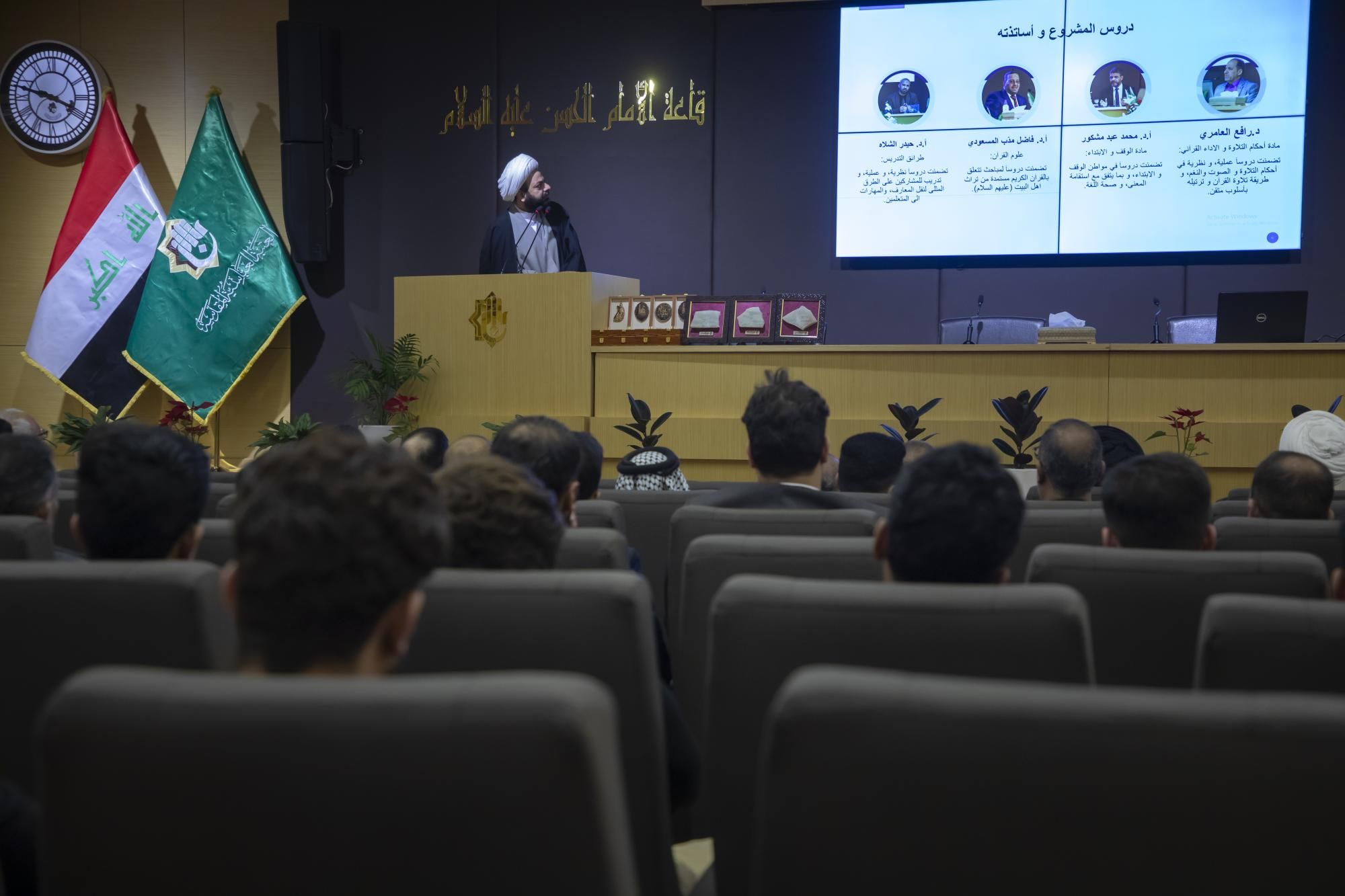أطلق المجمَع العلميّ للقرآن الكريم في العتبة العبّاسية المقدّسة، فعاليات الحفل المركزي لمشروع الكفيل القرآني التخصّصي الوطني الرابع.rnrnويقيم المشروع معهد القرآن الكريم في العتبة المقدسة التابع للمجمَع، بحضور عضو مجلس إدارة العتبة العباسية الدكتور عباس الددة الموسوي، ورئيس المجمَع العلميّ الدكتور مشتاق العلي وعددٍ من رؤساء الأقسام، والعديد من المهتمّين بالشأن القرآني.rnrnواستُهِلَّ الحفل بتلاوةٍ عطرةٍ بصوت القارئ الدكتور رافع العامريّ، أعقبتها قراءة سورة الفاتحة المباركة ترحّماً على أرواح شهداء العراق، جاء بعدها عزف النشيد الوطني العراقي وأنشودة العتبة العبّاسية (لحن الإباء)، تلتها كلمةُ المجمَع العلميّ للقرآن الكريم التي ألقاها مدير المعهد الشيخ جواد النصراوي، وبعدها كلمة ممثّل الطلبة وألقاها الدكتور أحمد مسلم الحسيني.rnrnوقال معاون رئيس المجمَع الدكتور لواء العطية، إن 11111المجمَع العلميّ احتفل بتخرّج دورةٍ جديدة ضمن مشروع الكفيل الوطني التخصّصي بنسخته الرابعة، من أساتذةٍ قد حصلوا على دروس في أحكام التلاوة وعلوم القرآن وقواعد الوقف والابتداء وطرائق التدريس الحديثة11111.rnrnوأضاف 11111شارك في هذه الدورة التي استمرّت لمدّة سنة كاملة قرابة (120) طالباً من مختلف محافظات العراق، وتلقّوا دروساً على يد أربعة أساتذة متخصّصين وهم أستاذ مادة أحكام التلاوة الدكتور رافع العامري، وأستاذ مادة الوقف والابتداء الدكتور محمد عبد مشكور، وأستاذ مادّة علوم القرآن الدكتور فاضل المسعودي، وأستاذ مادّة طرائق التدريس الأستاذ الدكتور حيدر الشلاه11111.