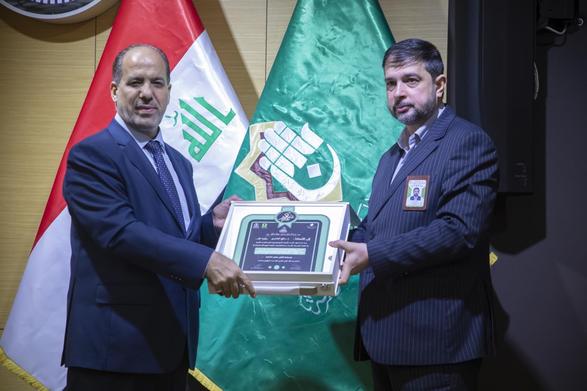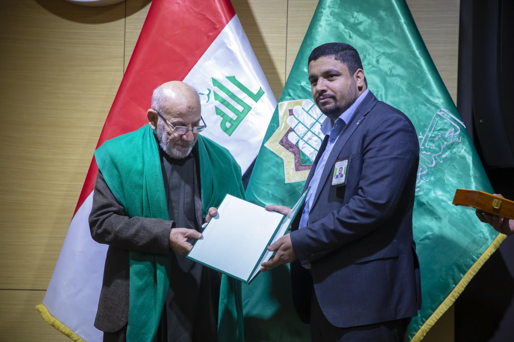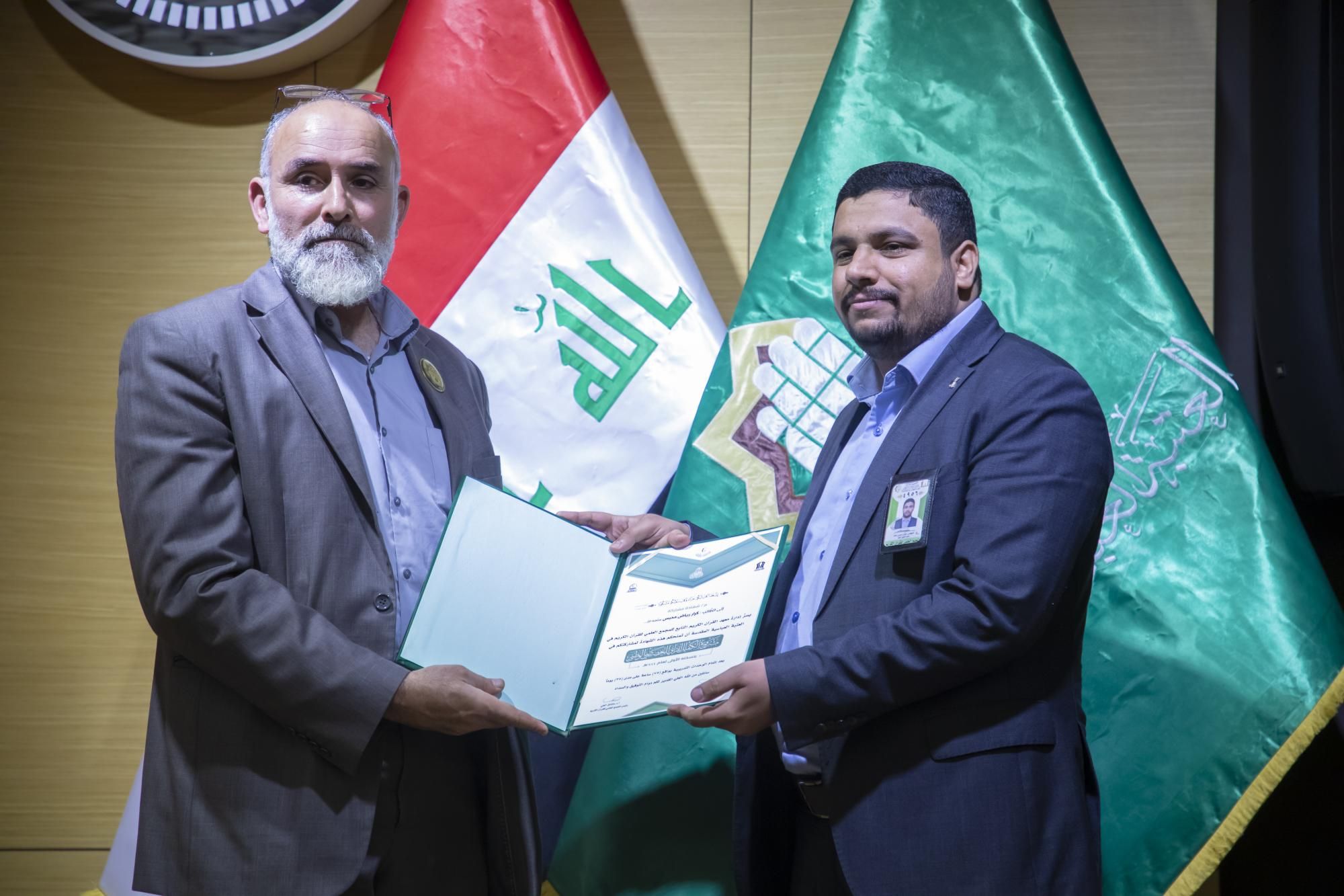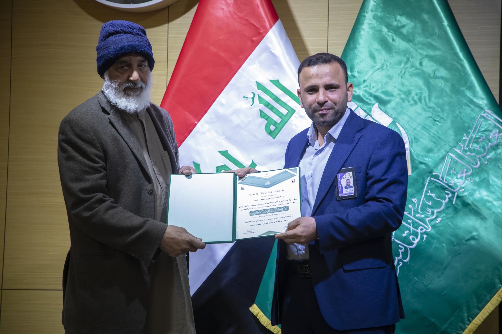 كرّم المجمَع العلميّ للقرآن الكريم في العتبة العباسية المقدّسة، المتخرّجين في مشروع الكفيل القرآني التخصّصي الوطني الرابع.rnrnجاء ذلك ضمن فعّاليات الحفل المركزي لمشروع الكفيل القرآني التخصّصي الوطني، الذي انطلق في رحاب العتبة العبّاسية المقدّسة، بحضور عضو مجلس إدارتها الدكتور عباس الددة الموسوي، ورئيس المجمَع العلمي الدكتور مشتاق العلي وعدد من رؤساء الأقسام، والعديد من المهتمّين بالشأن القرآني.rnrnوقال معاون رئيس المجمَع الدكتور لواء العطية، إن 11111المجمَع العلميّ احتفل بتخرّج دورةٍ جديدة ضمن مشروع الكفيل الوطني التخصّصي بنسخته الرابعة، من أساتذة قد حصلوا على دروس في أحكام التلاوة وعلوم القرآن وقواعد الوقف والابتداء، وطرائق التدريس الحديثة11111.rnrnوأضاف 11111شارك في هذه الدورة التي استمرّت لمدة سنة كاملة قرابة (120) طالباً من مختلف محافظات العراق، وتلقّوا دروساً على يد أربعة أساتذة متخصّصين، وهم أستاذ مادة أحكام التلاوة الدكتور رافع العامري، وأستاذ مادة الوقف والابتداء الدكتور محمد عبد مشكور، وأستاذ مادة علوم القرآن الدكتور فاضل المسعودي، وأستاذ مادة طرائق التدريس الأستاذ الدكتور حيدر الشلاه11111.rnrnبدوره قال مدير معهد القرآن الكريم الشيخ جواد النصراوي إن 11111المتخرّجين سيُسهمون في نشر الثقافة القرآنية في ربوع العراق، سواء كان حفظاً أو تلاوةً أو تدبّراً11111، مضيفاً أن 11111الركيزة الأساسية في نشر تلك الثقافة هو إعداد جيلٍ من الأساتذة والمربّين يأخذون على عاتقهم تلك المسؤولية؛ فجاء هذا المشروع المبارَك ليخرج لنا مجموعةً من الأساتذة يقومون بهذا الدور11111.