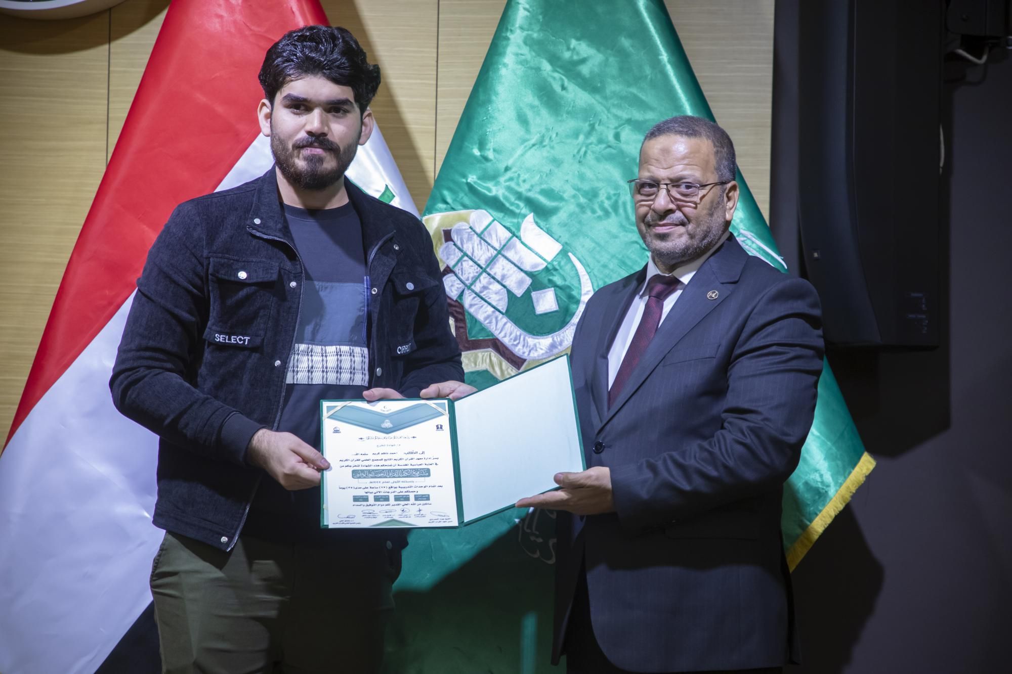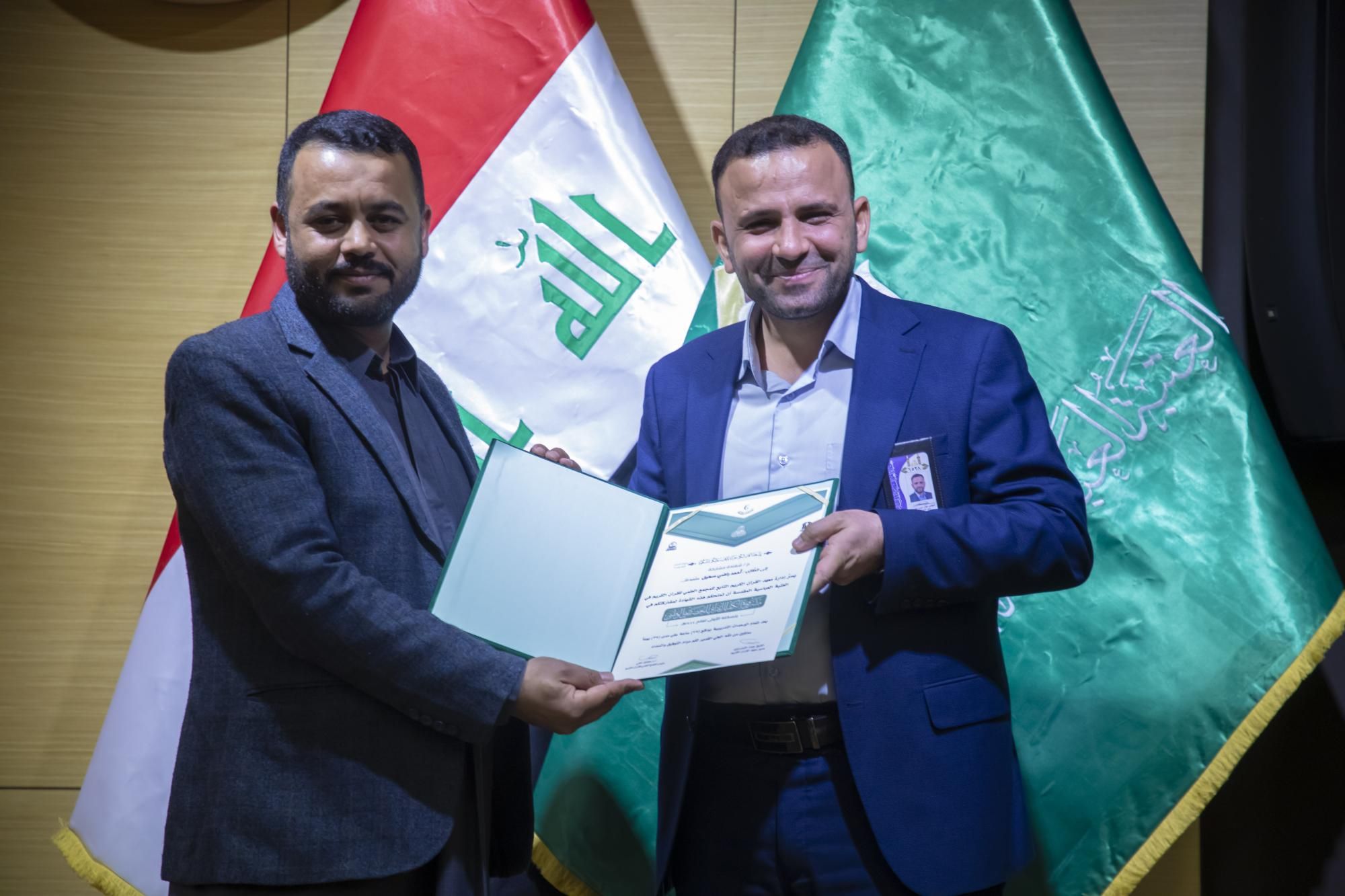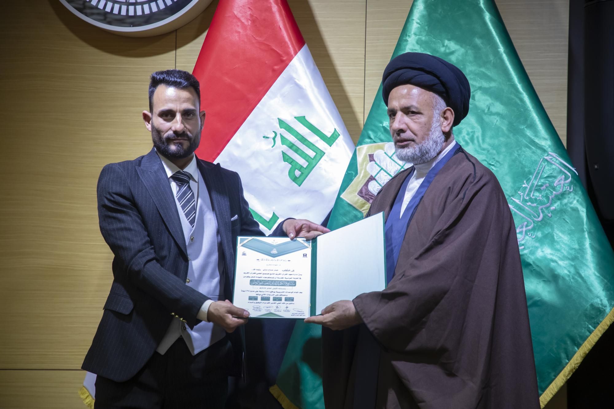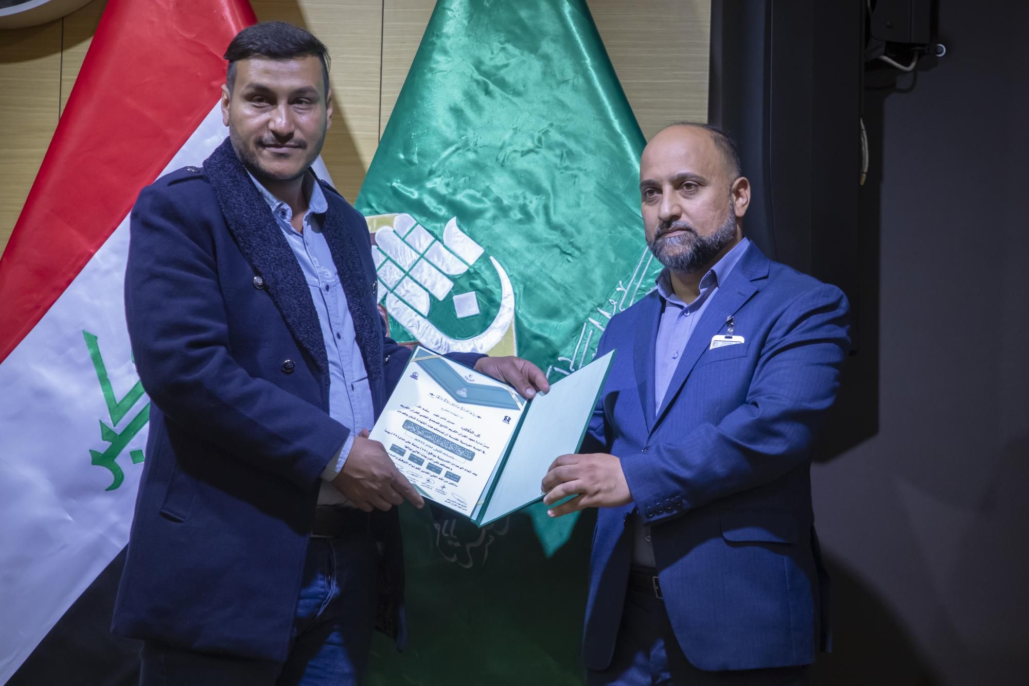 كرّم المجمَع العلميّ للقرآن الكريم في العتبة العباسية المقدّسة، المتخرّجين في مشروع الكفيل القرآني التخصّصي الوطني الرابع.rnrnجاء ذلك ضمن فعّاليات الحفل المركزي لمشروع الكفيل القرآني التخصّصي الوطني، الذي انطلق في رحاب العتبة العبّاسية المقدّسة، بحضور عضو مجلس إدارتها الدكتور عباس الددة الموسوي، ورئيس المجمَع العلمي الدكتور مشتاق العلي وعدد من رؤساء الأقسام، والعديد من المهتمّين بالشأن القرآني.rnrnوقال معاون رئيس المجمَع الدكتور لواء العطية، إن 11111المجمَع العلميّ احتفل بتخرّج دورةٍ جديدة ضمن مشروع الكفيل الوطني التخصّصي بنسخته الرابعة، من أساتذة قد حصلوا على دروس في أحكام التلاوة وعلوم القرآن وقواعد الوقف والابتداء، وطرائق التدريس الحديثة11111.rnrnوأضاف 11111شارك في هذه الدورة التي استمرّت لمدة سنة كاملة قرابة (120) طالباً من مختلف محافظات العراق، وتلقّوا دروساً على يد أربعة أساتذة متخصّصين، وهم أستاذ مادة أحكام التلاوة الدكتور رافع العامري، وأستاذ مادة الوقف والابتداء الدكتور محمد عبد مشكور، وأستاذ مادة علوم القرآن الدكتور فاضل المسعودي، وأستاذ مادة طرائق التدريس الأستاذ الدكتور حيدر الشلاه11111.rnrnبدوره قال مدير معهد القرآن الكريم الشيخ جواد النصراوي إن 11111المتخرّجين سيُسهمون في نشر الثقافة القرآنية في ربوع العراق، سواء كان حفظاً أو تلاوةً أو تدبّراً11111، مضيفاً أن 11111الركيزة الأساسية في نشر تلك الثقافة هو إعداد جيلٍ من الأساتذة والمربّين يأخذون على عاتقهم تلك المسؤولية؛ فجاء هذا المشروع المبارَك ليخرج لنا مجموعةً من الأساتذة يقومون بهذا الدور11111.