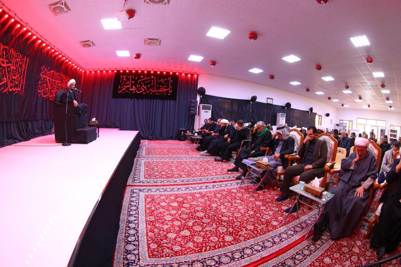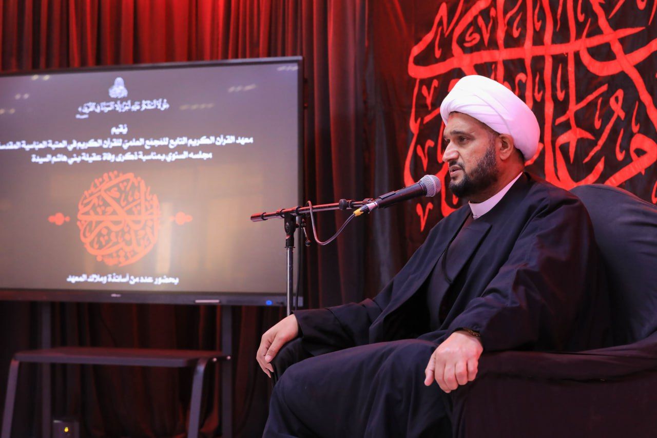 أحيا معهد القرآن الكريم التابع للمَجمَع العلميّ للقرآن الكريم في العتبة العباسية المقدسة، ذكرى وفاة السيدة زينب الكبرى (عليها السلام) بمجلس حسيني، حضره عدد من طلبة، وأساتذة المعهد.rnالمجلس أقيم في مقر المعهد وأفتتح بتلاوة قرآنية، تلاها محاضرة دينية قدمها الشيخ (رافد الراشدي) بين فيها السيرة العطرة لأم المصائب (عليها السلام) ودورها الكبير في كربلاء، كما بين بعض المضامين القرآنية التي يجب ان نسير عليها في حياتنا اليومية، ونشر علوم أهل البيت (عليهم السلام)، تلاها ختامًا مشاركة للرادود الحسيني (حسين فاهم الإبراهيمي) رثى فيها صاحبة المناسبة.rnوقال مدير معهد القرآن الكريم الشيخ جواد النصراوي: 11111 يواظب معهد القرآن الكريم على إحياء مناسبات أهل البيت (عليهم السلام)، مضافًا إلى مشاريعه القرآنية، ويسعى من خلال ذلك إلى نشر علوم أهل البيت وإحياء مناسبتهم العطرة بغية غرس ثقافة الثقلين الشريفين بين الناس11111.rnمؤكدًا: ان 11111 هذه المجالس تتسق ورؤية المَجمَع العلميّ الساعية لنشر ثقافة الثقلين، والعمل بوصية رسول الله (صلى الله عليه وآله) الداعية للتمسك بهم11111.