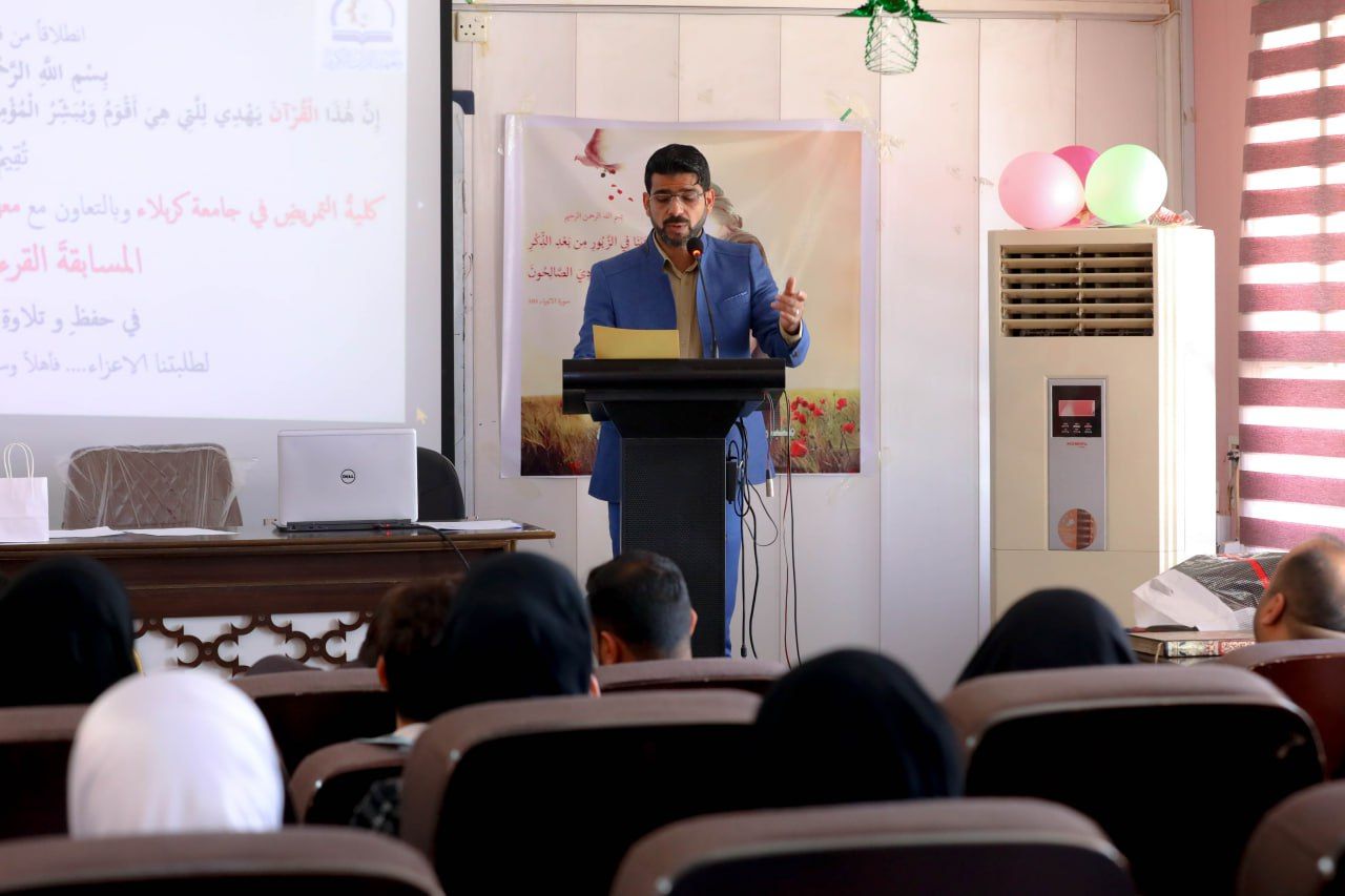 نظمت كلية التمريض في جامعة كربلاء وبالتعاون مع معهد القرآن الكريم التابع للمَجمَع العلميّ للقرآن الكريم في العتبة العباسية المقدسة، مسابقة قرآنية في الحفظ والتلاوة خاصة بطلبة الجامعة.rnالمسابقة شهدت تنافسًا قرآنيًا مميزًا، وأشرف عليها لجنة متخصصة تكونت من (الدكتور محمد الطيار، والدكتور علي حمد الكلكاوي، والأستاذ حسين الخفاجي، والحافظ مصطفى سعدون)، كما تضمنت المسابقة كلمة لمعاون عميد كلية التمريض للشؤون العلمية الدكتور حسن عبد الله شكر خلالها العتبة العباسية المقدسة ودعمها المستمر من أجل نشر ثقافة الدين الإسلامي الحنيف بين أبناء المجتمع، تلتها مشاركة المتسابقين، واختتمت بفوز الطالب (أمير قحطان) بالمركز الأول، وتم تكريمه من قبل عمادة الكلية، وتكريم جميع المشاركين، ولجنة التحكيم.