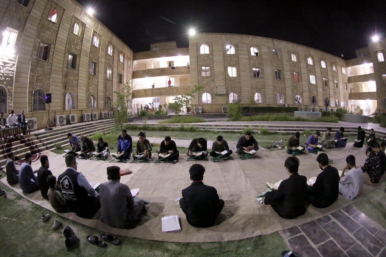 نظم معهد القرآن الكريم التابع للمَجمَع العلميّ للقرآن الكريم في العتبة العباسية المقدسة، ختمة قرآنية لطلبة جامعة كربلاء، وهي ضمن البرامج الرمضانية التي أعدها المعهد لإحياء أيام الشهر الفضيل في كربلاء والمحافظات.rnالختمة أقيمت لطلبة الأقسام الداخلية في الجامعة، ويقرأ فيها يوميًا جزءً كامل بمشاركة نخبة من قرّاء المعهد، بهدف إشاعة الثقافة القرآنية بين فئات المجتمع.rnيذكر أن معهد القرآن الكريم أعد برامج رمضانية متنوعة، منها الختمات التي توزّعت في كربلاء المقدسة والمحافظات، إضافة إلى المسابقات، والمحافل، ومجالس العزاء، والمحاضرات الفكرية، والندوات المعرفية، وبرامج إحياء ليالي القدر المباركة.