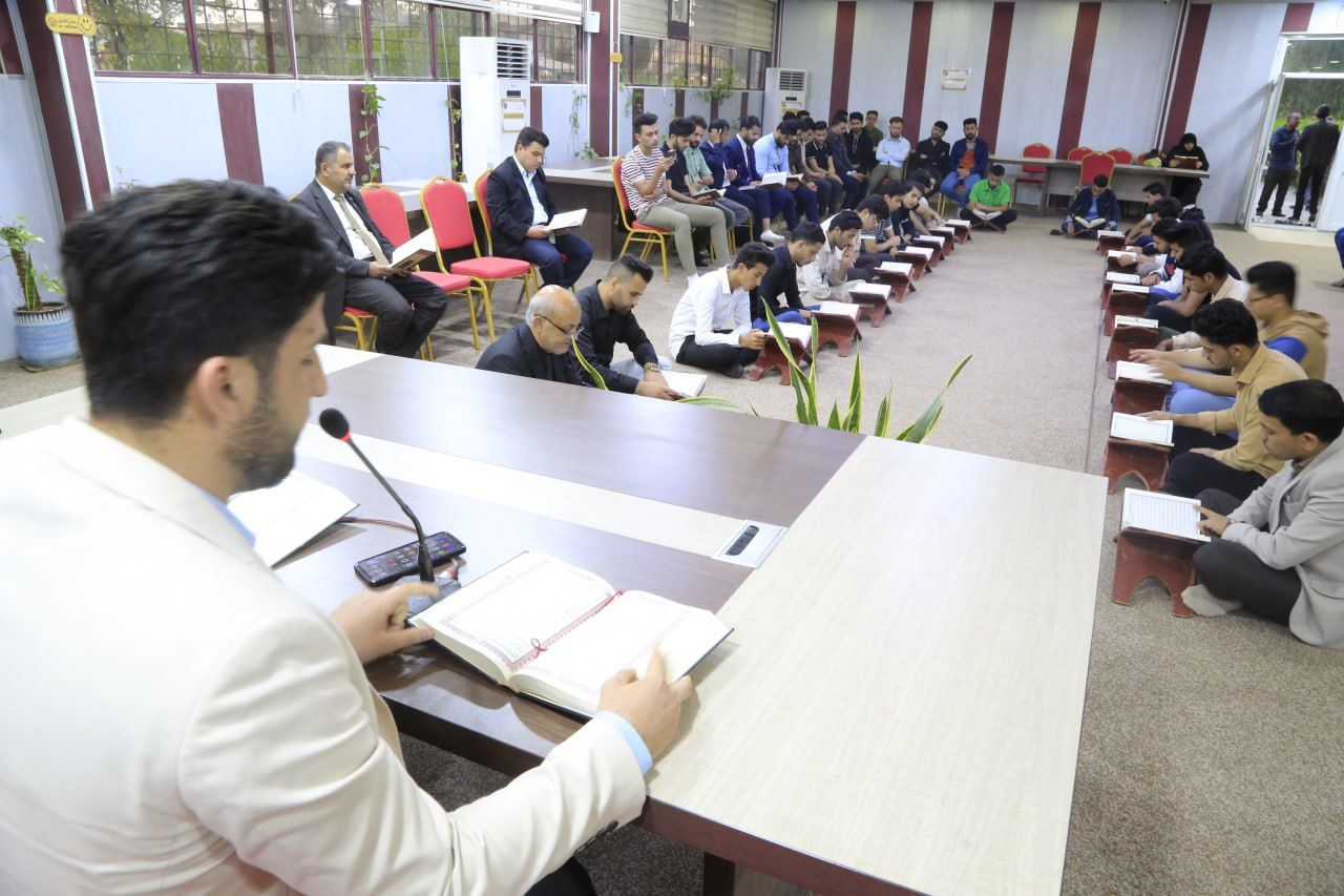 نظم معهد القرآن الكريم فرع الهندية التابع للمَجمَع العلميّ للقرآن الكريم في العتبة العباسية المقدسة، محفلًا قرآنيًا بالتعاون مع المعهد التقني في كربلاء لطلبة الأقسام الداخلية بمشاركة نخبة من القرّاء.rnأفتتح المحفل بكلمة لعميد المعهد الدكتور (فاضل محمد ظاهر) رحب فيها بالحاضرين، وشكر التعاون المستمر من لدن العتبة المقدسة، عاد مشاريعها الخدمية والدينية بالمشاريع الرائدة، تلتها كلمة لمسؤول فرع الهندية السيد (حامد المرعبي) تناول فيها شرح جملة من المسائل الفقهية المتعلقة بشهر رمضان المبارك، كما تطرق لآيات الذكر الحكيم لا سيما التي دعت لطلب العلم وربطه بالعمل والسعي الجاد.rn تلا ذلك مشاركة لكل من القارئ (أمير قحطان، وعلي ناجي، وعلي قربوز)، ويأتي هذا النشاط من ضمن سلسلة النشاطات القرآنية التي يقيمها الفرع في القضاء، ويهدف إلى تعزيز الجانب القرآني لدى شريحة الطلبة في الحرم الجامعي خدمة للثقلين الشريفين.rn