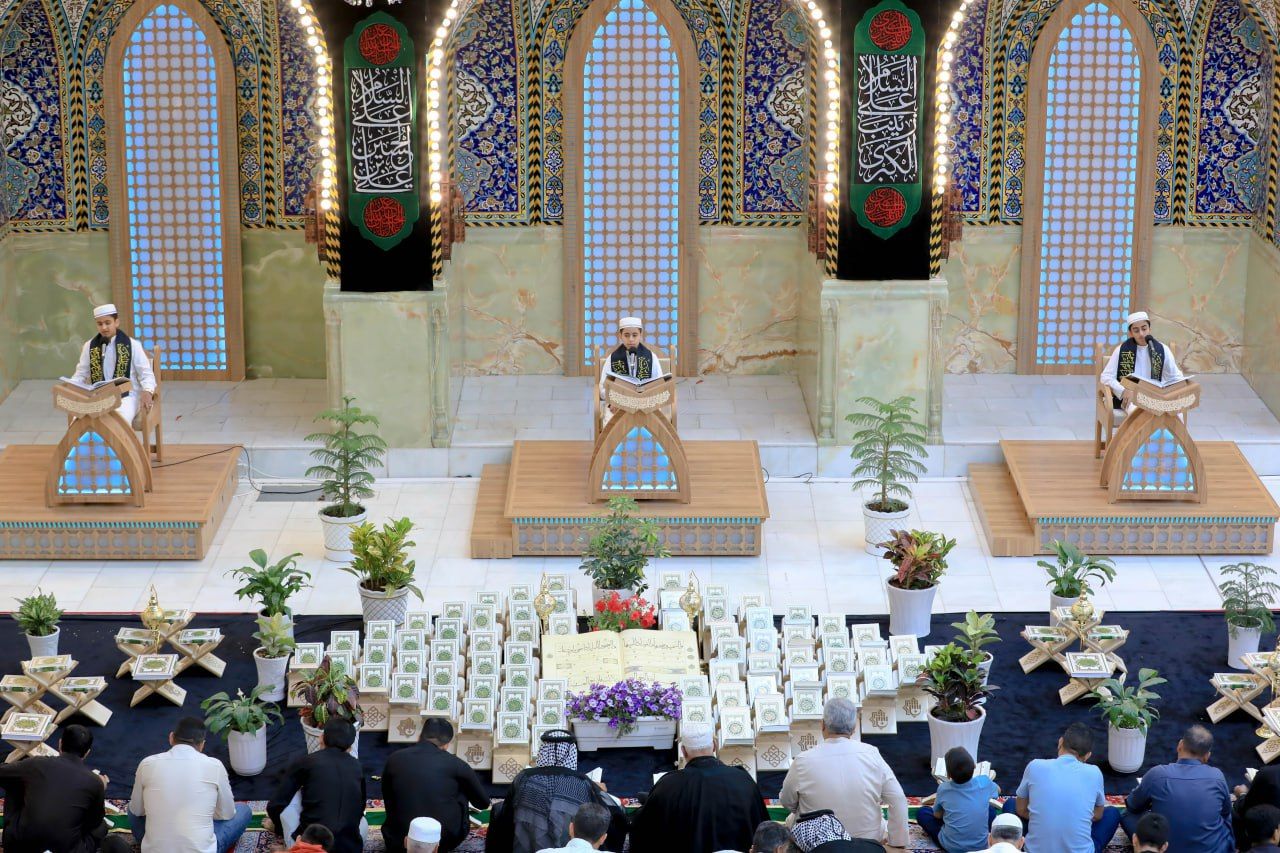 أشرك معهد القرآن الكريم التابع للمَجمَع العلميّ للقرآن الكريم في العتبة العباسية المقدسة، طلبة مشروع حفظ القرآن الكريم في فعاليات الختمة القرآنية الرمضانية المرتلة التي تقام في الصحن الطاهر للمولى أبي الفضل العباس (عليه السلام).rnوقال مدير معهد القرآن الكريم الشيخ جواد النصراوي: 11111أشركنا طلبة مشروع حفظ القرآن الكريم ضمن الفئات المشاركة في فعاليات الختمة المركزية، وتهدف هذه الخطوة إلى ترسيخ الأثار المعرفية، والنفسية عند الطلبة، كما تسهم في كسر حاجز تواصل الحفاظ مع الجمهور بحكم أعمارهم الفتية11111.rnمؤكدًا: أن 11111الفائدة من إشراكهم تمكين الطلاب وتشجيعهم لارتقاء المنصة وتلاوة كتاب الله المجيد، ومراجعة ما يحفظون11111.