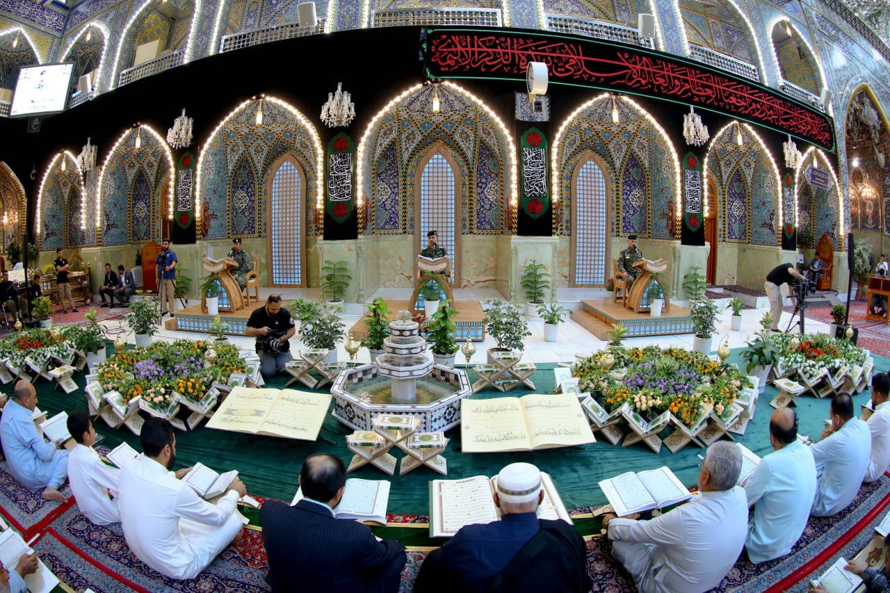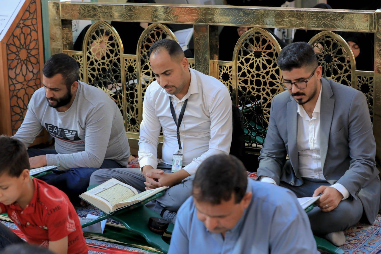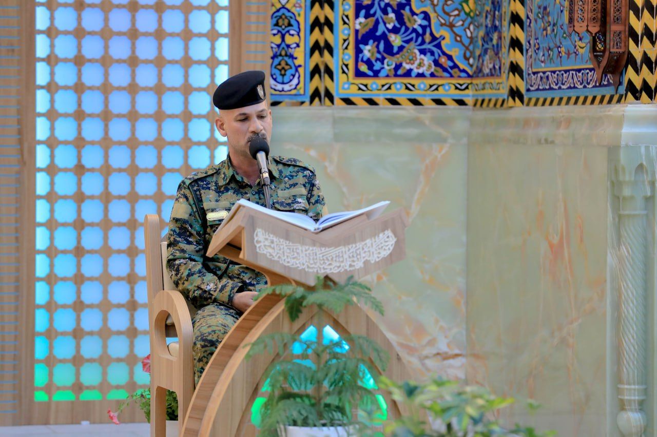 شارك عدد من منتسبي القوات الأمنية في الختمة القرآنية الرمضانية المرتلة التي تقام في صحن المولى أبي الفضل العباس (عليه السلام).rnrnويشرف على الختمة الرمضانية المركزية معهد القرآن الكريم التابع للمَجمَع العلميّ للقرآن الكريم في العتبة العباسية المقدسة.rnrnوقال مدير المعهد الشيخ جواد النصراوي: إن 11111معهد القرآن الكريم أعد خطة كاملة لإحياء شهر رمضان المبارك بالمائدة القرآنية وعلى رأسها الختمة المركزية في الصحن المطهر التي تبدأ يومياً في الساعة الرابعة عصراً، حيث خَصصت بعض أيامها لعدد من شرائح المجتمع المتمثلة بطلبة العلوم الدينية، وأساتذة الجامعات، ومنتسبي القوات الأمنية، وتبث مباشرة عبر مجموعة من القنوات الفضائية11111.rnمؤكدًا: أن 11111 الهدف من إشراك الفئات المجتمعية في الختمة هو لترسيخ ثقافة كتاب الله المجيد، ونشره بين مختلف فئات المجتمع11111.