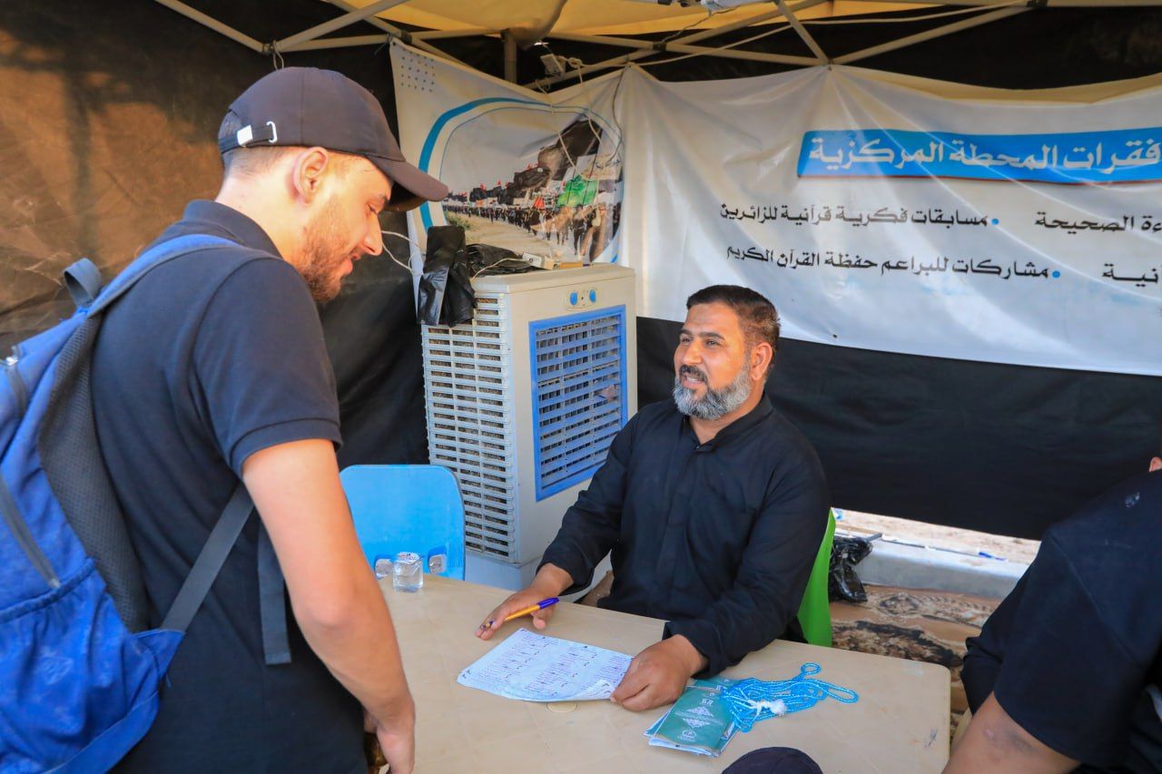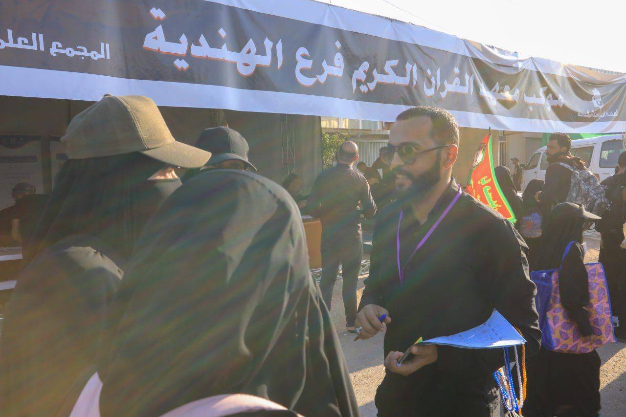 تفاعل الزائرين مع مشروع تعليم القراءة الصحيحة للزائرين الذي يقيمه معهد القرآن الكريم فرع الهندية التابع للمَجمَع العلميّ للقرآن الكريم في العتبة العباسية المقدسة، حيث فتح المعهد أكثر من (٢٠) محطة في القضاء.rnوقال مسؤول فرع الهندية السيد حامد المرعبي: 11111 افتتح فرعنا (٢٠) محطة مركزية وفرعية توزعت على المحاور الرئيسة المؤدية صوب كربلاء المقدسة، إذ تقدم خدمات قرآنية متنوعة، خدمة للزائرين11111.rnمؤكداً: أن 11111المحطات يشرف على التعليم فيها أكثر من (١٢٠) معلمًا قرآنيًا يقدمون دروسًا في تعليم سورة الفاتحة، وقصار السور، وأذكار الصلاة، مضافًا إلى الإجابة على الاستفتاءات الشرعية، وإشراك الزائرين بالمسابقات المعرفية، والمحافل القرآنية، وصلاة الجماعة11111.rnيذكر أن معهد القرآن الكريم وفروعه، افتتح أكثر من (٦٣) محطة مركزية وفرعية في كربلاء والمحافظات؛ خدمة للزائرين الوافدين لزيارة الأربعين.