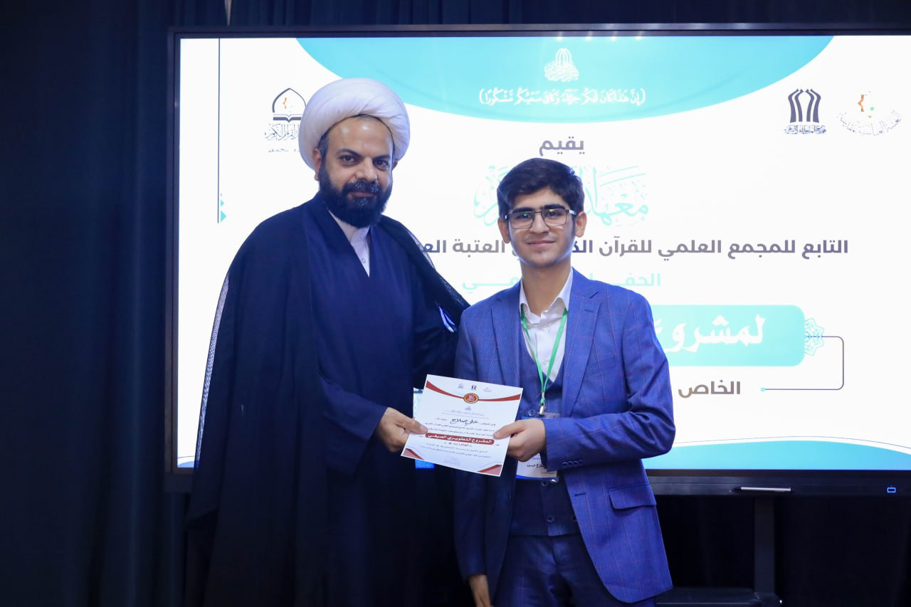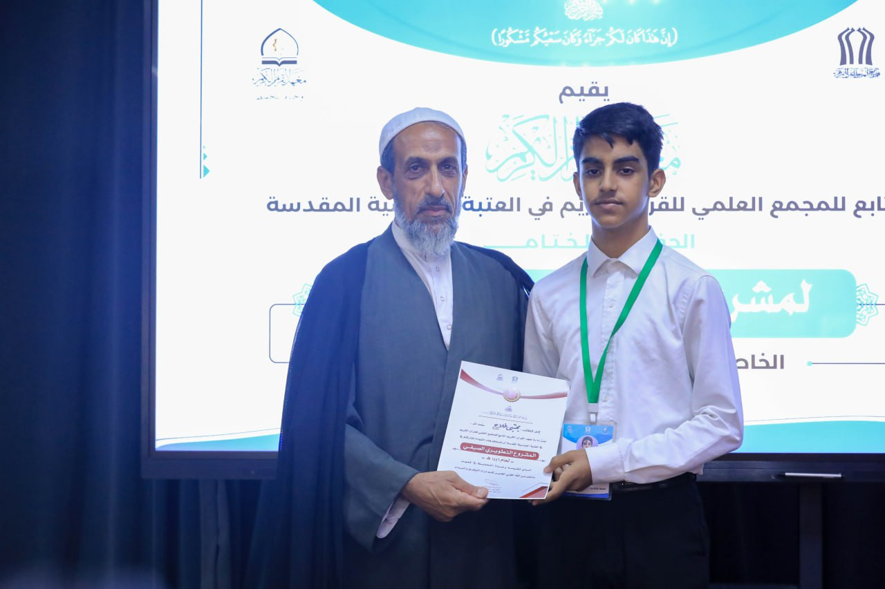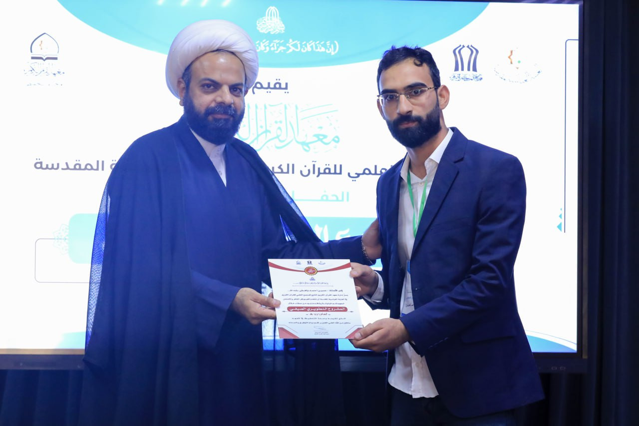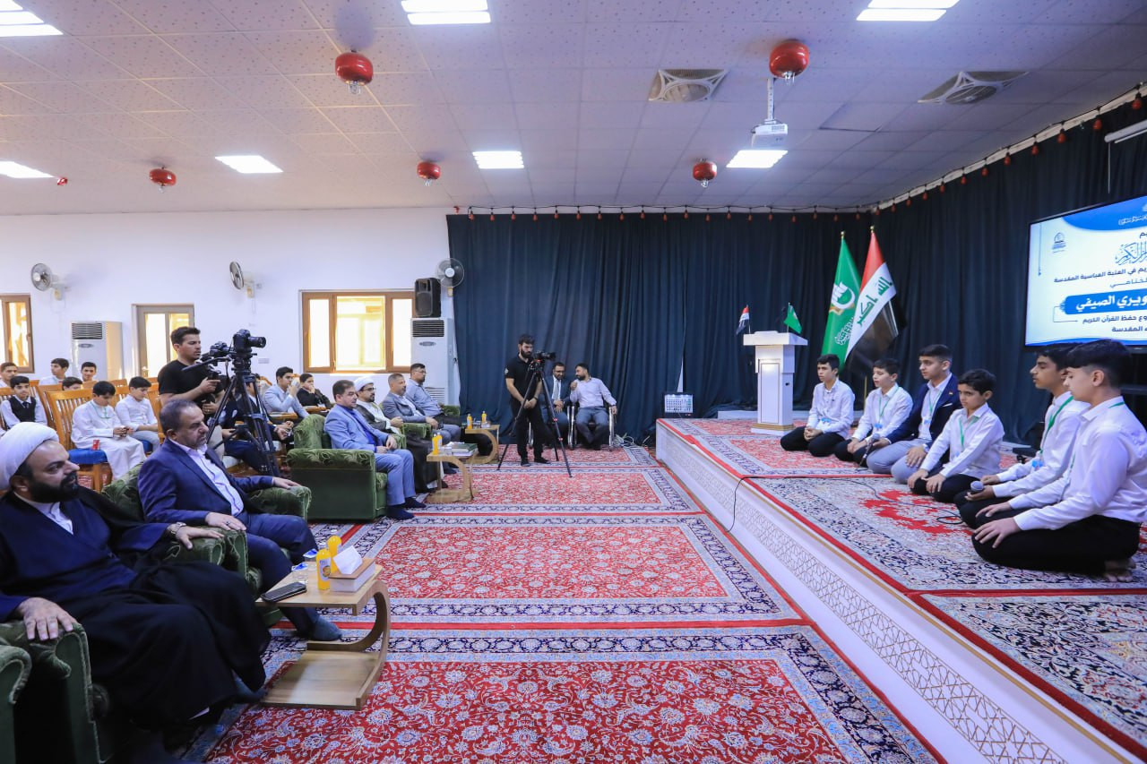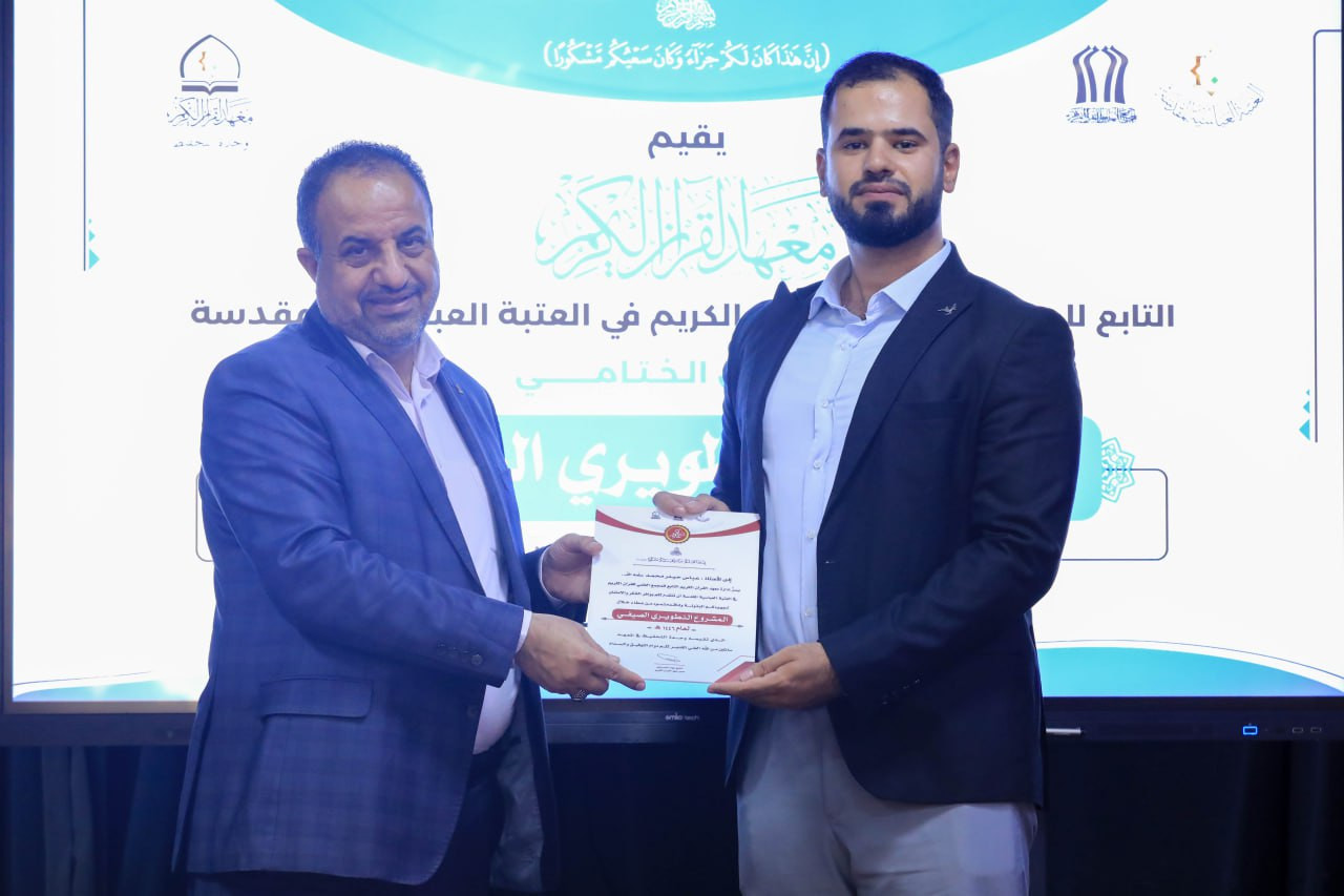 أحتفى المَجمَع العلميّ للقرآن الكريم التابع للعتبة العباسية المقدسة، بتخرج أكثر من (70) حافظًا من طلبة المشروع التطويري الصيفي الخاص بمشروع حفظ القرآن الكريم في كربلاء، الذي يشرف عليه معهد القرآن الكريم التابع للمَجمَع. الحفل افتتح بتلاوة للحافظ البرعم علي عادل، تلتها قراءة سورة الفاتحة على أروح الشهداء، ثم كلمة المَجمَع العلميّ ألقاها المعاون التعليمي لرئيس المَجمَع الدكتور علاء الموسوي التي رحب فيها بالحضور، وبارك للقائمين على المشروع جهودهم المبذولة، مؤكدًا أن العتبة العباسية المقدسة دأبت على تكثيف الجهود في الجانب القرآني، والاهتمام بالمشاريع الخاصة ببناء الإنسان واهم هذه المشاريع هي المشاريع القرآنية. تلتها كلمة المعهد ألقاها ممثلًا عنه مسؤول وحدة التلاوة الشيخ علي الرويعي، التي بين فيها أبعاد وأهداف المشروع الذي انطلاق قبل ثلاثة أشهر أستثمارًا لأوقات العطلة الصيفية، والمتضمن ثلاث محاور الأول لتثبيت المحفوظات، وحفظ 50 صفحة من المصحف الكريم، والمحور الثالث هو التربوي، وقدمت هذه المحاور في عشرة ساعات يوميًا، كما شكر كل من ساهم في إنجاح المشروع الذي يهدف إلى بناء شخصية الطالب. جاء بعدها فقرة المطاردة في الحفظ قدمها نخبة من طلبة المشروع استعرضوا فيها مهارات ما يحفظون، تلاها عرض مسرحي لطلبة المشروع بين كيف تنقل المفاهيم القرآنية بكل بساطة من خلال ما تلقوها الطلبة طيلة أيام المشروع، أعقبها تلاوة جماعية لمجموعة من طلبة وحدة التحفيظ، ثم اختتم الحفل بتوزيع الشهادات التقديرية على الأساتذة والمشاركين.