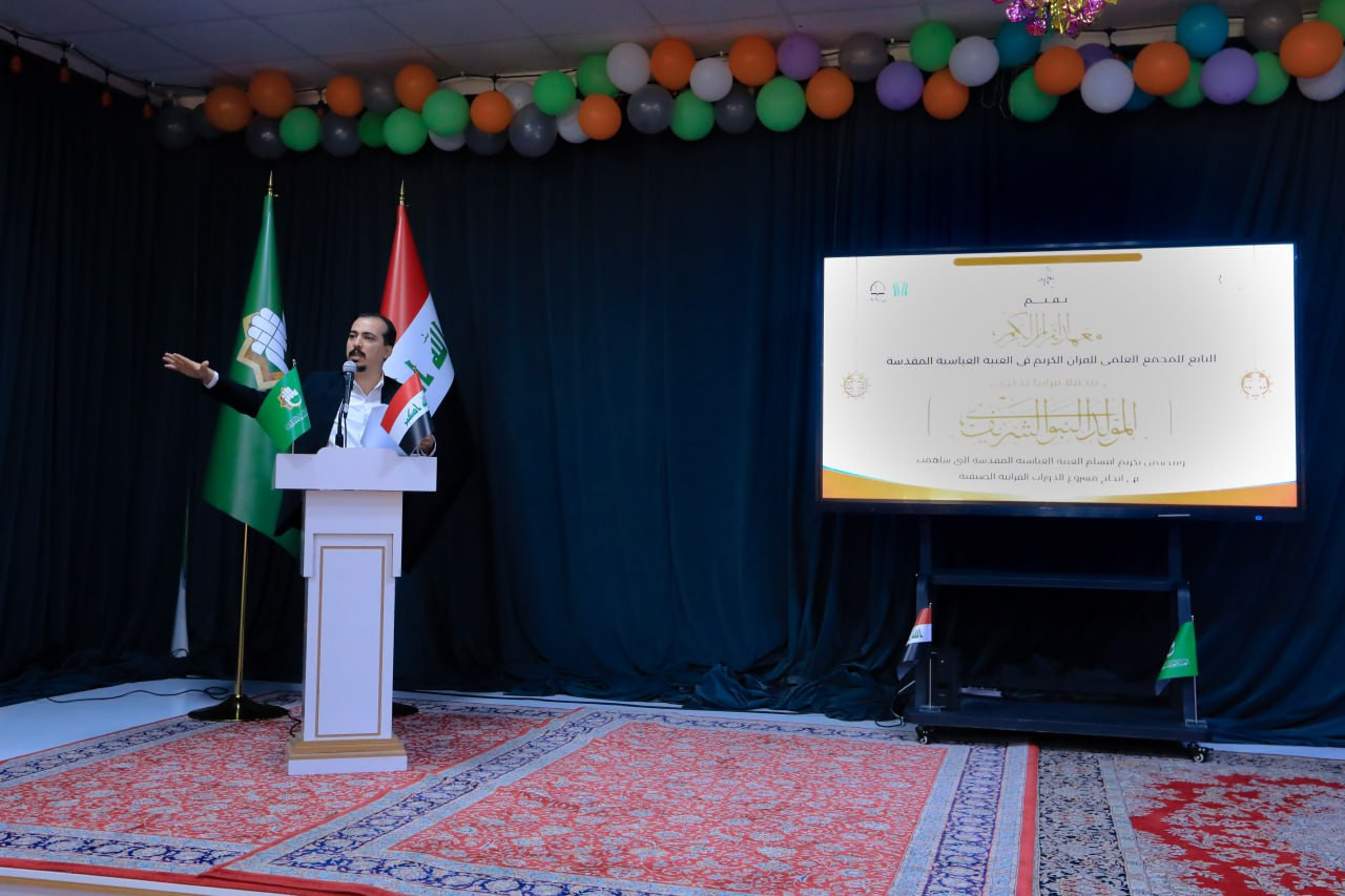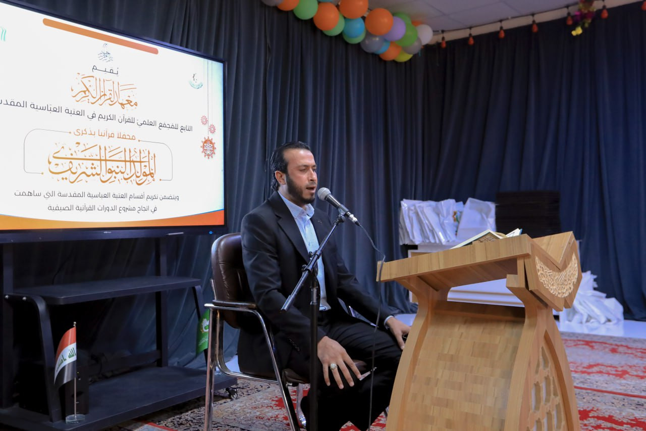 كرّم المَجمَع العلميّ للقرآن الكريم في العتبة العباسية المقدسة، مجموعة من أقسام العتبة المطهرة التي شاركت بنجاح مشروع الدورات القرآنية الصيفية، الذي يشرف عليه معهد القرآن الكريم التابع للمَجمَع. حفل التكريم أقيم بالتزامن مع المولد النبوي الشريف، وشهد فقرات متعددة، منها تلاوة الافتتاح لقارئ العتبتين المقدستين السيد حيدر جلوخان الموسوي، أعقبها كلمة المَجمَع ألقاها ممثلًا عنه مدير معهد القرآن الكريم الشيخ جواد النصراوي التي بارك فيها المناسبة الجليلة للحاضرين، وشكر جهودهم المبذولة في إنجاح المشروع، وبين جملة من وصايا النبي العطرة تزامنًا مع ولادته الشريفة. جاء بعدها فقرة شعرية قدمها الشاعر زين العابدين السعيدي إحياءً للمناسبة العطرة، تلتها مشاركة إنشادية قدمها المنشد محمد مهدي صلاح، وختامًا كرمت إدارة المعهد مجموعة من الأقسام التي شاركت في نجاح مشروع الدورات القرآنية الصيفية.