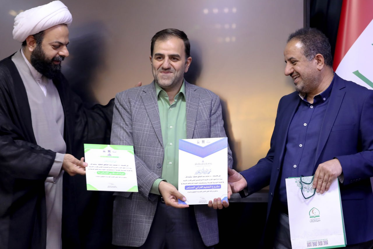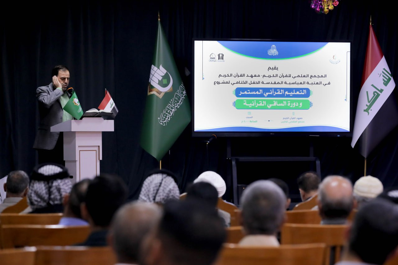 اختتم المَجمَع العلمي للقرآن الكريم في العتبة العباسية المقدسة، مشروع التعليم القرآني المستمر، ودورة الساقي الخاصة بتعليم أحكام التلاوة والتجويد. وقال المعاون التربوي للمَجمَع العلمي الدكتور علاء الموسوي: إنّ "معهد القرآن الكريم في كربلاء المقدسة التابع للمَجمَع، اختتم مشروع التعليم القرآني المستمر، ودورة الساقي الخاصة بتعليم أحكام التلاوة والتجويد، التي ينظمهما بهدف إعداد أساتذة أكفاء في قراءة القرآن الكريم وإجادة نطق حروفه وكلماته". وأضاف، أنّ "هذه الأنشطة استمرت قرابة عام كامل وتضمنت دروسًا متعددة في أحكام التلاوة والتجويد والتدبر في القرآن الكريم وأخلاقيات كتاب الله المجيد، قُدمت عَبرَ أساتذة متخصصين". من جانبه ذكر مسؤول وحدة النشاطات القرآنية في المعهد الدكتور علي حمد، أنّ "الطلبة تلقّوا معلومات قرآنية تمكنهم من إجادة فصاحة القراءة من الوقف والابتداء والنغم وأحكام التلاوة، إلى جانب مخارج الحروف وصفاتها". وأوضح، أنّ "فعاليات الاختتام تضمنت محاور عدّة، منها: إلقاء كلمات عبّرت عن أهمية هذا المشروع، وعرضًا فيديويًّا للتعريف عن الدورات التي أقامها المعهد، إلى جانب توزيع شهادات المشاركة للمشاركين".