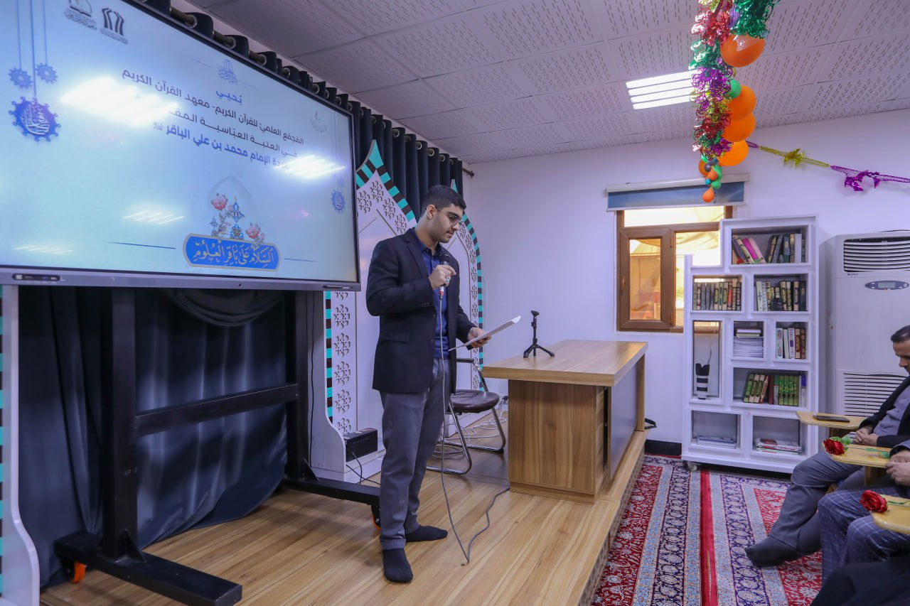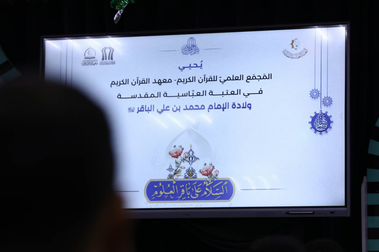 أحيا معهد القرآن الكريم التابع للمَجمَع العلميّ للقرآن الكريم في العتبة العباسية المقدسة ولادة الإمام محمد بن علي الباقر عليهما السلام في كربلاء. الحفل حضره جمع من أساتذة وملاك المعهد، وافتتح بتلاوة للقارئ محمد مهدي صلاح، تلته محاضرة دينية قدمها الشيخ محمد شابث بين فيها فضائل الإمام الباقر، وعلومه المستفيضة التي ننهل من معارفها، كما أكد على تجذير ثقافة وعلوم الثقلين في أذهان المجتمع، مع صد الهجمات التي تغزو عقول الشباب. تلا ذلك فقرة إنشادية شارك فيها المنشد محمد صلاح، أحيا فيها مناسبة الولادة، وهذا الحفل يندرج ضمن برامج المعهد الساعية لإحياء مناسبات أهل البيت عليهم السلام بمجالس قرآنية فكرية تنشر فكر الثقلين الشريفين وترسخ قيمهم السامية.