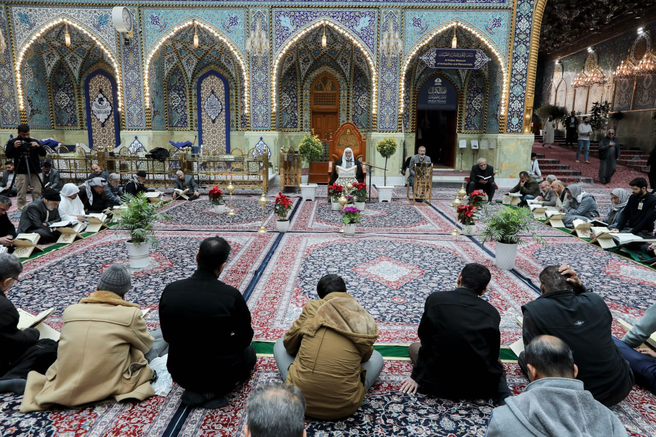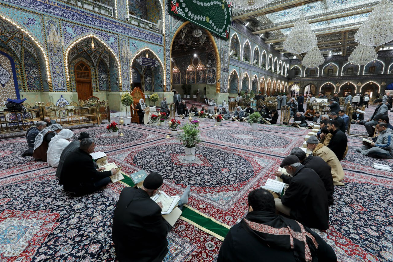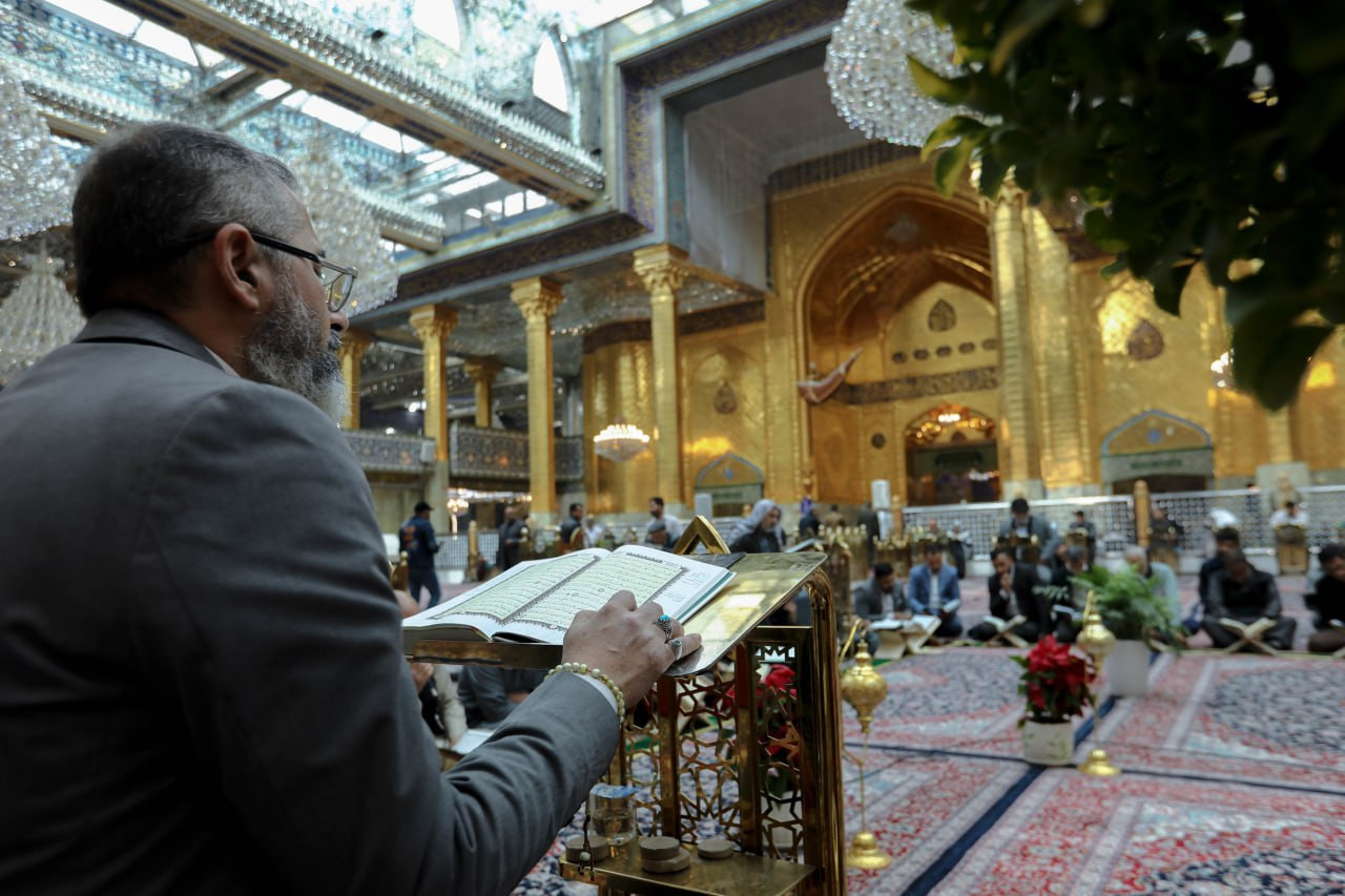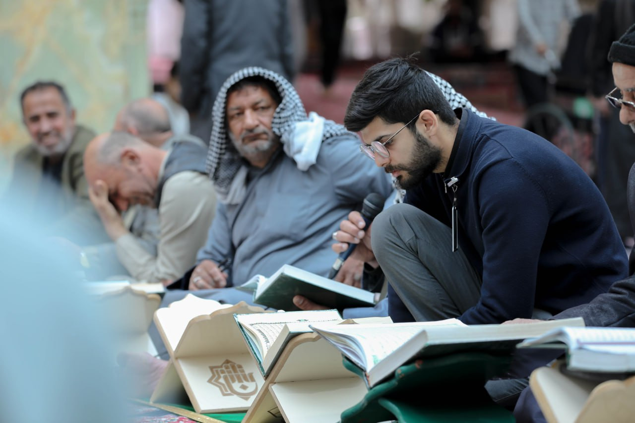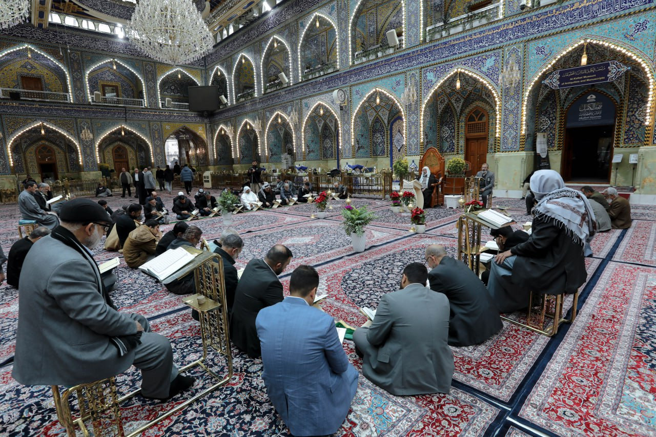 شهد الصحن العباسي المطهر مشاركة فاعلة لعدد من زائري العتبتين المقدستين الحسينية والعباسية، في الجلسة القرآنية التعليمية الخاصة بالزائرين التي يقيمها معهد القرآن الكريم التابع للمَجمَع العلميّ للقرآن الكريم في العتبة العباسية المقدسة. وقال مسؤول وحدة التلاوة وإعداد القرّاء في المعهد الأستاذ علاء الدين حمود: إن "الجلسات القرآنية التعليمية تُقام طيلة أيام الشهر الفضيل بعد صلاة الظهرين، ويُتلى فيها جزء كاملٌ من القرآن الكريم لكلّ يوم، وتستمرّ حتّى اليوم الأخير من شهر رمضان". وأضاف: "يشارك في الختمة جمعٌ من الزائرين الوافدين إلى كربلاء من كلّ أنحاء العالم، وتتناول الجلسة تعليم القراءة الصحيحة لتلاوة الكتاب العزيز، وأحاديث نبويّة شريفة، وأقوال لأهل البيت (عليهم السلام)، حول أهمّية تلاوة القرآن الكريم وعظمتها خلال الشهر الكريم". وأوضح: أن "الجلسة تكون بنيّة التعلّم، وتطرح خلال الجلسة بعض الملاحظات التصحيحية، لتحقيق الاستفادة للمشاركين في الجلسة".