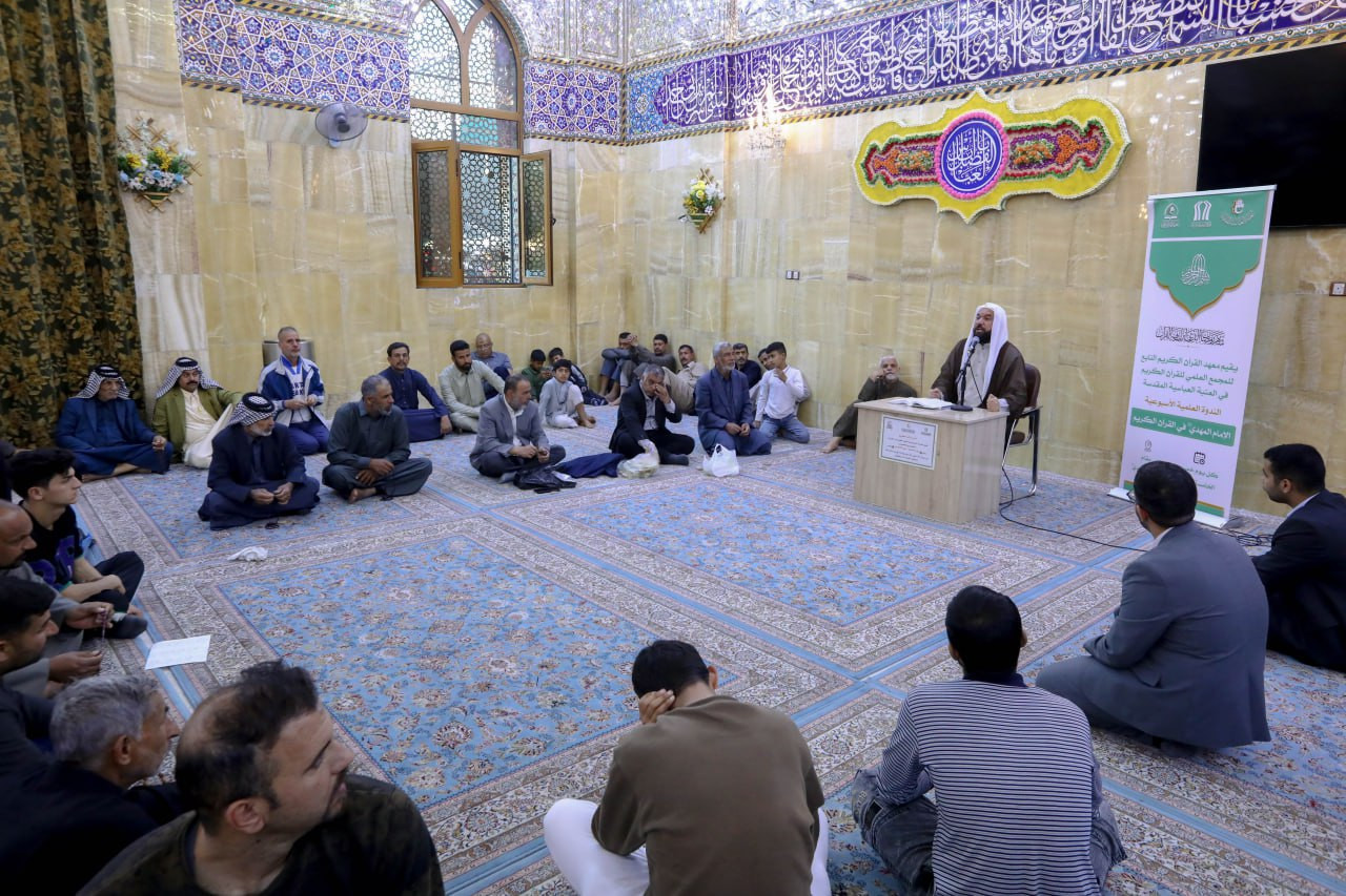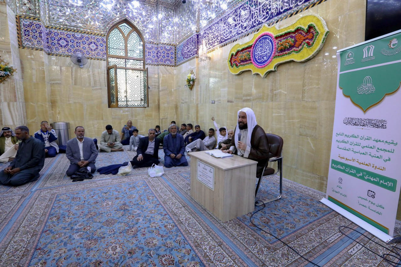 أقام المجمع العلمي للقرآن الكريم ممثلاً بمعهد القرآن الكريم سلسلة ندوات علمية أسبوعية بعنوان الإمام المهدي عجل الله فرجه الشريف في القرآن الكريم. وقال مدير معهد القرآن الكريم الشيخ جواد النصراوي: أن "المعهد أطلق سلسة محاضرات علمية تتمحور حول الإمام المهدي عجل الله فرجه الشريف في القرآن الكريم يحاضر فيها الشيخ محمد النبهاني". وبين: أن"الندوات تقام كل يوم خميس عند الساعة الخامسة عصراً في مقام الإمام المهدي المنتظر عجل الله فرجه الشريف ويحضرها جمع من الزائرين الكرام. وأضاف النصراوي: أن " الهدف من الندوات ترسيخ العقيدة الإيمانية من خلال الاستدلال والبرهان القرآني، وتقوية الارتباط بإمام الزمان عجل الله فرجه الشريف.