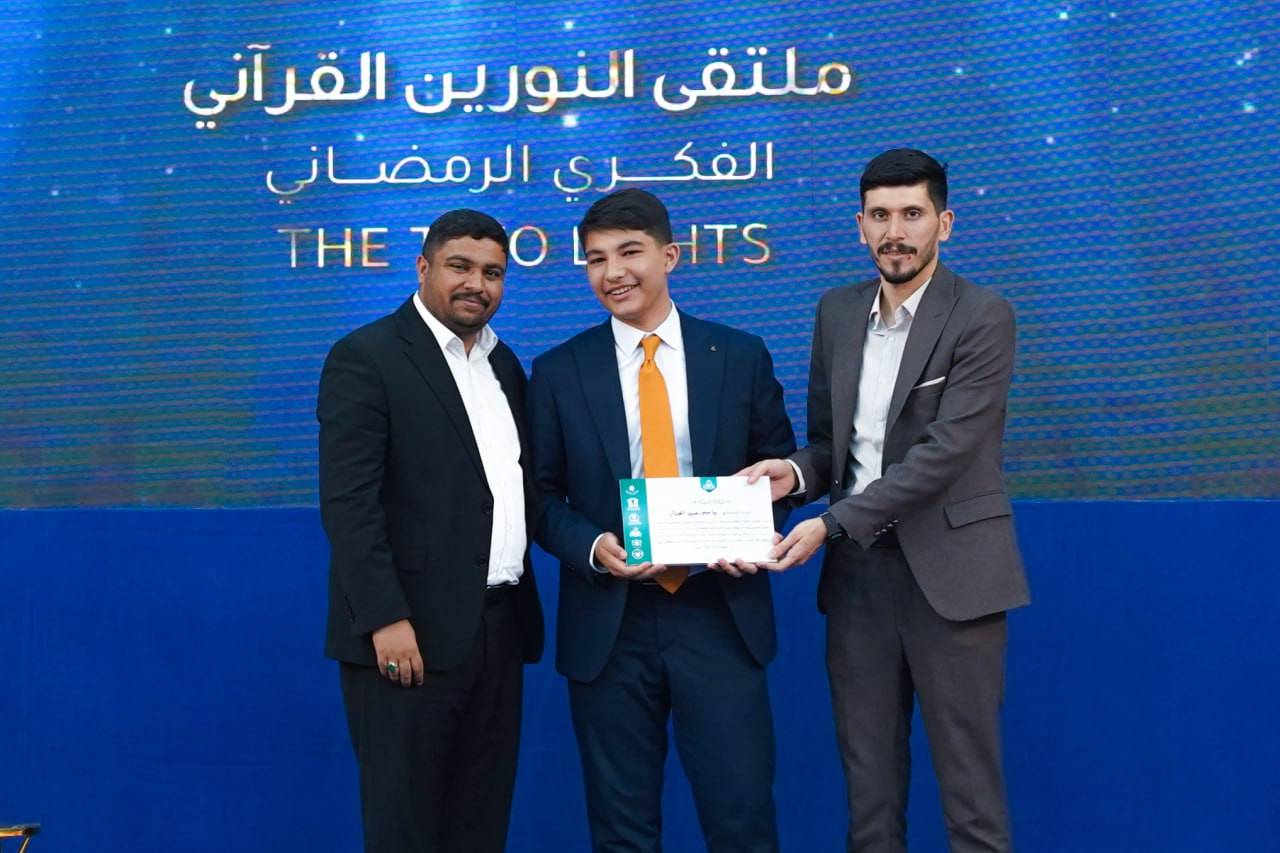 اختتم معهد القرآن الكريم فرع بابل، التابع للمَجمَع العلميّ للقرآن الكريم في العتبة العباسية المقدسة، مسابقة (الفتى المبدع) للخطابة والشعر الحسيني الفصيح، التي جرت ضمن فعاليات ملتقى النورين القرآني الفكري الرمضاني الرابع. المسابقة التي نظّمها المعهد بالتعاون مع الأمانة الخاصة لمزار العلوية الشريفة بنت الإمام الحسن المجتبى (عليهما السلام)، شهدت مشاركة واسعة من الشباب المبدعين في مجالي الخطابة والشعر الحسيني، حيث قدم المتسابقون لوحات أدبية مؤثرة عكست حبهم وتمسكهم بالقيم الإلهية ومدرسة أهل البيت (عليهم السلام). وجاءت هذه الفعالية ضمن سلسلة الأنشطة القرآنية والفكرية التي يحرص معهد القرآن الكريم على تنظيمها خلال شهر رمضان المبارك، لتعزيز الوعي القرآني وترسيخ النهج الحسيني بين الأجيال الناشئة. وفي ختام المسابقة، تم تكريم الفائزين والمشاركين تقديرًا لجهودهم وإبداعهم، وسط حضور نخبة من الأساتذة والطلبة والمهتمين بالشأن القرآني.