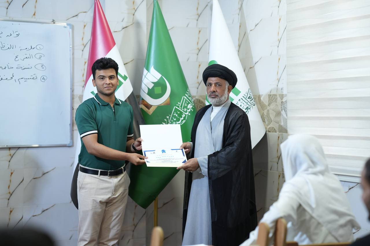 أختتم معهد القرآن الكريم فرع الهندية التابع للمَجمَع العلميّ للقرآن الكريم في العتبة العباسية المقدسة، الدورة القرآنية التخصصية لطلبة وأساتذة التحفيظ القرآني في القضاء. الدورة شهدت مشاركة (٢٠) أستاذًا وطالبًا، وتضمن الختام كلمة لمسؤول وحدة التحفيظ في الفرع الأستاذ محمد مرتضى الجبوري، مثمناً فيها دور العتبة العباسية المقدسة و إهتمامها البالغ للقرآن الكريم بما يضمهُ من تلاوةٍ وحفظٍ وتفسير، وبين أهمية هكذا دورات في تعزيز قدرة الأستاذ القرآنية والفنية في إدارة درس التحفيظ. كما شهد الحفل توزيع الشهادات التقديرية على المشاركين تشجيعاً لهم لتقديم أفضل الخدمات للطلبة المنضمين في الحلقات القرآنية المباركة.