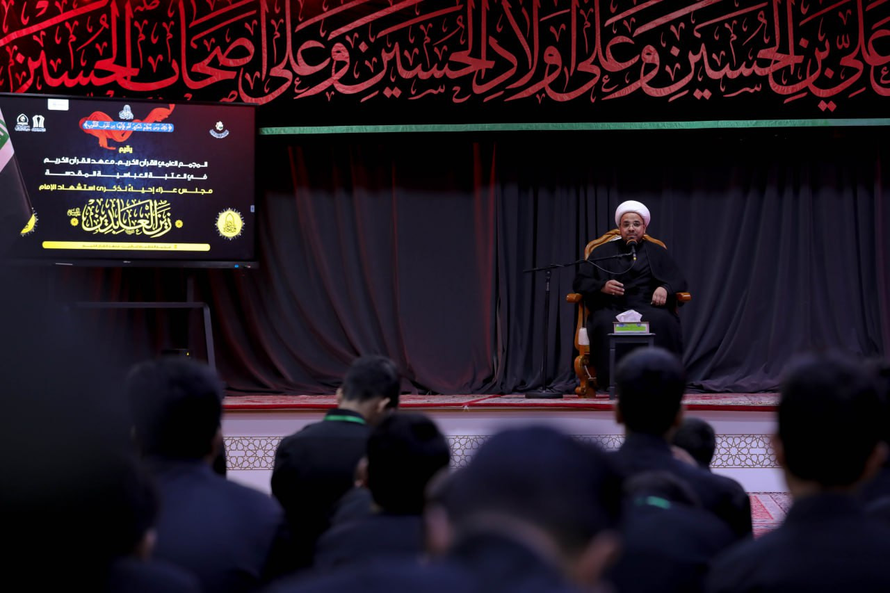 أحيا معهدُ القرآن الكريم التابعُ للمَجمَع العلميّ للقرآن الكريم في العتبة العباسية المقدسة ذكرى شهادة الإمام علي بن الحسين (عليهما السلام)، بإقامة مجلسٍ حسيني حضره جمعٌ من طلبة وأساتذة المعهد. ألقى المجلسَ الشيخُ حمد التميمي، حيث بيّن بعضًا من فضائل الإمام ودوره في معركة الطفّ وما بعدها، مؤكّدًا أنَّه (عليه السلام) المؤسّسُ الأوّل لمدرسة التعاليم الدينية والفقهية والتربوية. أعقبت المحاضرةَ مشاركةٌ للرادود الحسينيّ حسين أبو شعير، أحيا فيها هذه المناسبة الأليمة. وشارك طلبةُ مشروع حفظ القرآن الكريم في موكبٍ خدميٍّ قدّم خدماته للزائرين الوافدين إلى المرقدين الطاهرين، لإحياء ذكرى شهادة الإمام السجاد (عليه السلام).