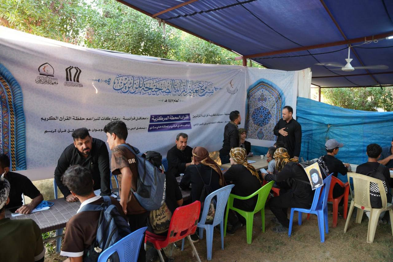 أطلق المَجمَع العلميّ للقرآن الكريم في العتبة العباسية المقدسة، ممثلًا بمعهد القرآن الكريم فرع بابل، مشروع تعليم القراءة الصحيحة للزائرين المتجهين صوب قبلة الأحرار الإمام الحسين عليه السلام، وذلك في محاور متعددة من محافظة بابل. وجاء المشروع من خلال محطات قرآنية مركزية توزعت على عدد من المسارات التي يسلكها الزائرون، وتضمنت فقرات متنوعة شملت: تعليم القراءة الصحيحة، وإقامة محافل قرآنية مباركة، بالإضافة إلى مسابقات فكرية قرآنية تهدف إلى تعزيز الوعي والمعرفة بثقافة القرآن الكريم. ويشرف على كل محطة أكثر من 15 معلمًا مختصًا ، في خطوة تهدف إلى تقديم خدمة قرآنية ميدانية مباشرة للزائرين الكرام، والمساهمة في نشر ثقافة الاهتمام بكتاب الله تلاوةً وتدبّرًا خلال موسم الزيارة الأربعينية المباركة.