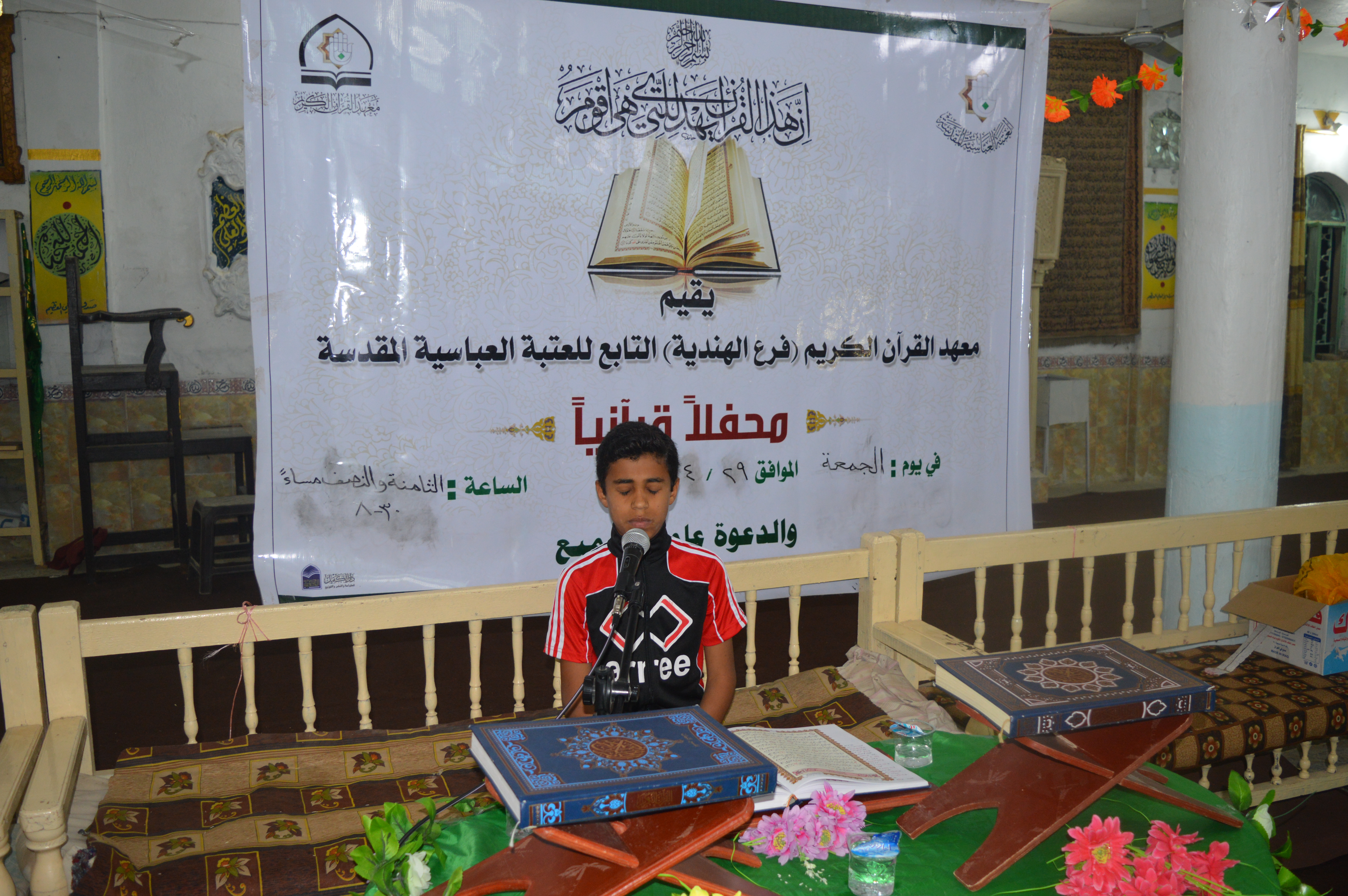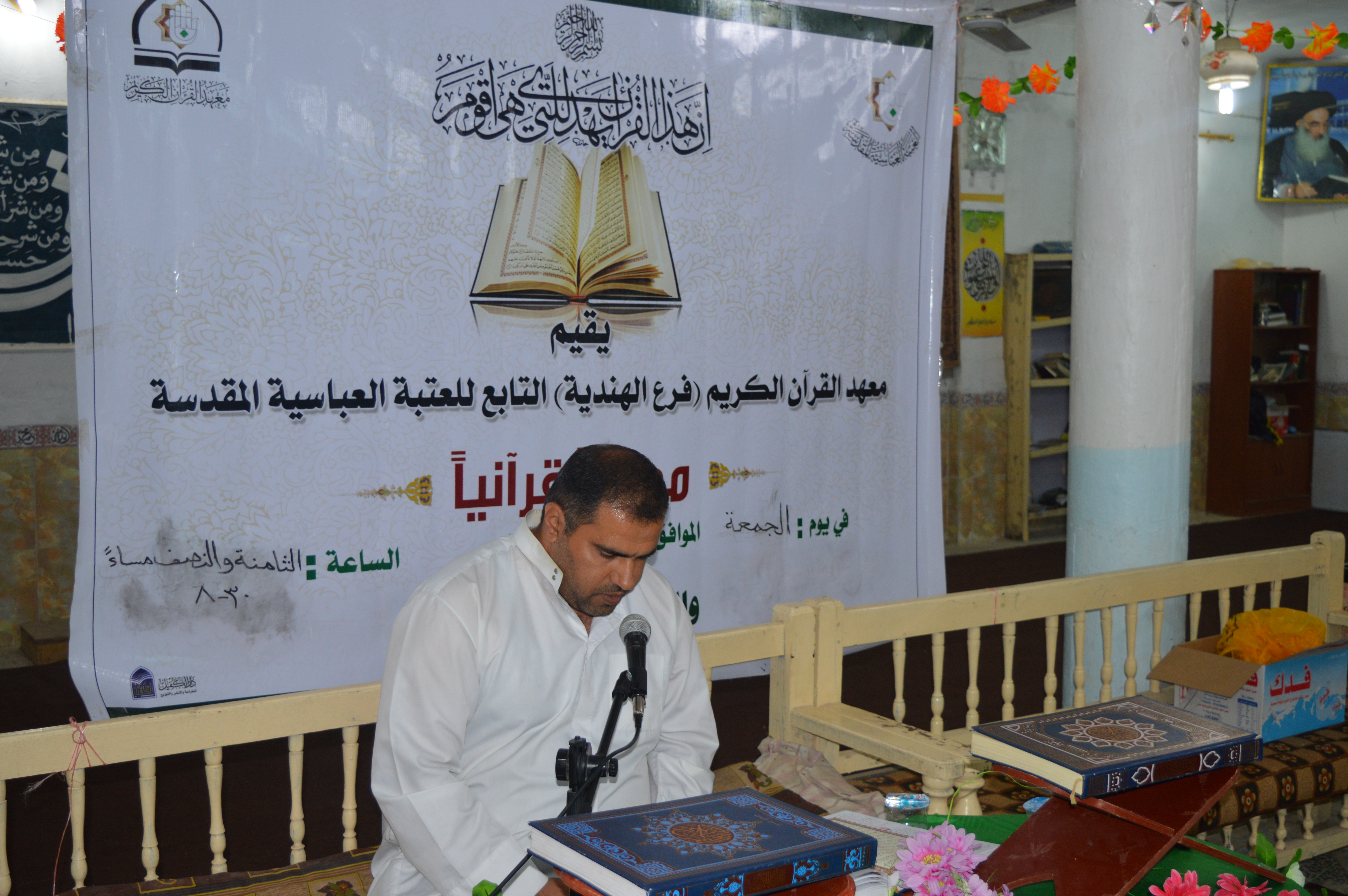استذكارا لاستشهاد الإمام موسى بن جعفر الكاظم (عليه السلام) أقام معهد القرآن الكريم_ فرع الهندية التابع للعتبة العباسية المقدسة محفلاً قرآنياً في جامع الرسول الأمين في منطقة الدعوم بمشاركة نخبة من القرّاء. استُهل الحفل المبارك بقراءة عطرة للقارئ (عماد الدعمي) بعد ذلك كلمة مسؤول فرع الهندية السيّد حامد المرعبي تناول فيها حياة الإمام الكاظم (عليه السلام) في عصر اللارشيد وما واجهه من ظلم وسجون حتى استشهاده مسموماً في 25/رجب/ 183هـ كما أوصى المؤمنين وحثهم على ضرورة التّواصل في هذه المحافل الكريمة بعد ذلك جاءت كلمة إمام الجامع الشيخ (عبد الحسين الدعمي) شكر فيها معهد القرآن الكريم على رعايته واقامته لهذه المحافل المباركة كما جدد دعوته للقائمين على المعهد في العمل بهذه الروحية والهمة العالية خدمة لكتاب الله الجليل بعد ذلك صدحت حناجر كلّ من القرّاء (حسن الجنابي وحسنين عماد ويوسف الفتلاوي وباقر حسين علي والسيد محمد الحسني) بقراءة مباركة، ليكون مسك ختام المحفل المبارك دعاء الفرج والدعاء للحشد الشعبي والقوات الامنية بالنصر .
