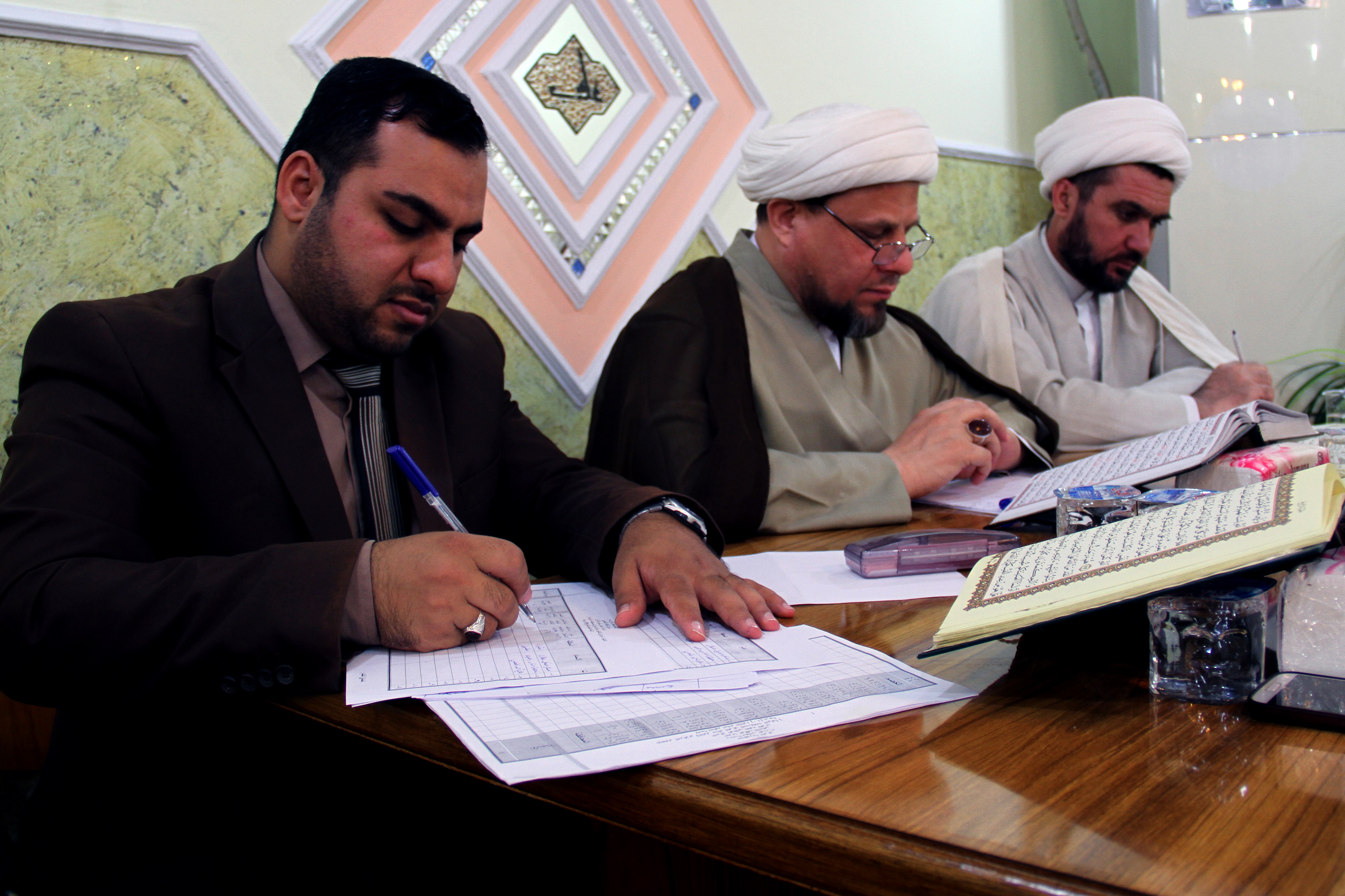 أقام مركز إعداد القرّاء والحفاظ في معهد القرآن الكريم التابع للعتبة العباسية المقدسة امس السبت المصادف(20/شعبان لسنة 1437هـ) وفي إطار استعداداته لبرامج شهر رمضان القرآنية اختباراً للقرّاء الراغبين بالمشاركة في الختمة القرآنية المباركة والتي يقيمها معهد القرآن الكريم في الصحن العباسي الشريف طيلة أيام شهر رمضان المبارك ومن المقرر أن تنقل الختمة مباشرة على قناة الفرات الفضائية الاختبارات أجريت بإشراف لجنة متخصصة ضمت كل من (الشيخ مضر الصحاف عن مادة أحكام التجويد، والشيخ خير الدين علي الهادي عن مادة الوقف والابتداء، والقارئ سراج منير عن مادة الصوت والنغم القرآني) وتقدم للاختبار مجموعة من قرّاء محافظة كربلاء المقدسة وخارجها حيث ستختار اللجنة أفضل المستويات للمشاركة في الختمة. ومن الجدير بالذكر أن لمعهد القرآن الكريم وفروعه في المحافظات العديد من البرامج القرآنية المباركة منها المسابقة القرآنية الفرقية الثانية والختمة الرمضانية المباركة فضلاً عن الختمات القرآنية في الحسينيات والمساجد والتي تقيمها فروع المعهد