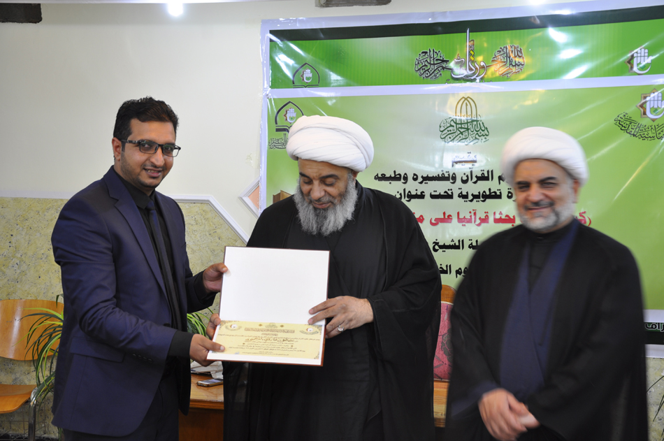 بحضور سماحة آية الله الشيخ محمد السند (دام عزة) أختتم مركز علوم القرآن الكريم وتفسيره وطبعه يوم أمس الخميس المصادف 3/11/2016م العمل بالدورة التطويرية الأولى والتي كانت بعنوان ( كيف تكتب بحثاً قرآنياً على منهج الثقلين). الدورة أقيمت على قاعة قاعة معهد القرآن الكريم وأستمرت لمدة خمسة أيام، شارك فيها عدد من الباحثين والمهتمين بالتأليف وحاضر فيها فضيلة الشيخ ضياء الدين الزبيدي مدير مركز علوم القرآن وتفسيره وطبعه وقد تناول فيها المبادئ الأساسية لكتابة البحث والقواعد العلمية المعروفة في هذا المجال بشكل سريع ومركز قبل الخوض في تفاصيل المحور الأساسي في الدورة والذي هو منهج الثقلين الشريفين القرآن الكريم والعترة الطاهرة بإعتباره منهج أصيل أرسى قواعده النبي الأكرم صلى الله عليه وآله في حديث الثقلين متناولاً أبعاد هذا المنهج ومميزاته وكيفية الاستفادة منه بالشكل الصحيح. المشاركون من جانبهم شكروا القائمين على هذه الدورة المهمة مبينين أنها قدمت لهم الكثير من المعلومات القيمة حول منهج الثقلين الشريفين. هذه الدورة تأتي بالتزامن مع مسابقة أفضل مؤلف عن القرآن الكريم على منهج الثقلين والتي أطلقها المركز حيث من شأنها هذه الدورة أن تساعد الراغبين في المشاركة في المسابقة على فهم هذا المنهج القومين الذي هو شرط أساسي من شروطها. ومن الجدير بالذكر أن مركز علوم القرآن وتفسيره وطبعه سيقيم دورات أخرى تبين كيفية الإستفادة من منهج الثقلين الشريفين باعتباره المنهج الأكمل، فضلاً عن أن المركز أقام العديد من الدورات الخاصة بعلوم القرآن الكريم لعدد من أساتذة المدارس وطلاب الجامعات العراقية وهو مستمر في تقديم الدورات القرآنية التي من شأنها أن تساعد الباحث في الكتاب العزيز على الفهم الصحيح لمعانيه القيمة وفق منهج الثقلين الشريفين.