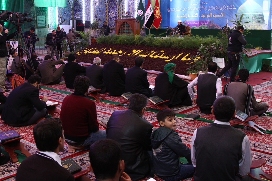 في مساءٍ مباركٍ بذكرى ولادة الرسول الأكرم محمّد(صلّى الله عليه وآله) وحفيده الإمام أبي عبدالله جعفر الصادق(عليه السلام)، أقام معهدُ القرآن الكريم في العتبة العبّاسية المقدّسة ضمن فعاليات الاحتفال السنويّ الذي تُقيمه العتبتان المقدّستان الحسينيّة والعبّاسية بهذه المناسبة أمسيةً قرآنيّة في صحن أبي الفضل العبّاس(عليه السلام) وبمشاركة عددٍ من القرّاء. استُهِلَّت هذه الأمسية التي كان ذكرُ الله عبقاً في أجوائها بتلاوةٍ مباركةٍ لقارئ العتبتين المقدّستين الحاج مصطفى الصرّاف, جاءت بعدها تلاوةٌ معطّرة بأنفاس القارئ محمد الطيّار من معهد القرآن الكريم ومن ثمّ المنشد على الساعدي ليختتم المحفل القرآنيّ بتلاوةٍ للسيد حيدر جلوخان قارئ العتبة العبّاسية المقدّسة. تأتي إقامةُ هذه الأمسية القرآنيّة ضمن فعاليات المؤتمر إيماناً من القائمين على هذه الاحتفاليّة بأنّ القرآن يزرع في القلوب الإيمان، لذا ينبغي غرس تعاليم القرآن في قلوب المجتمع ليعمر به ما خُرّب منه، والحرص على أن يتأدّب بآداب القرآن ويتخلَّق بأخلاقه، وهذا لن يحدث ما لم تتظافر كلّ الجهود من المعنيّين في هذا الشأن وإقامة مثل هكذا محافل، لذا كان هذا المؤتمر الذي أقامته العتبة العبّاسية لبنةً في تنشيط الحراك القرآنيّ في العراق.