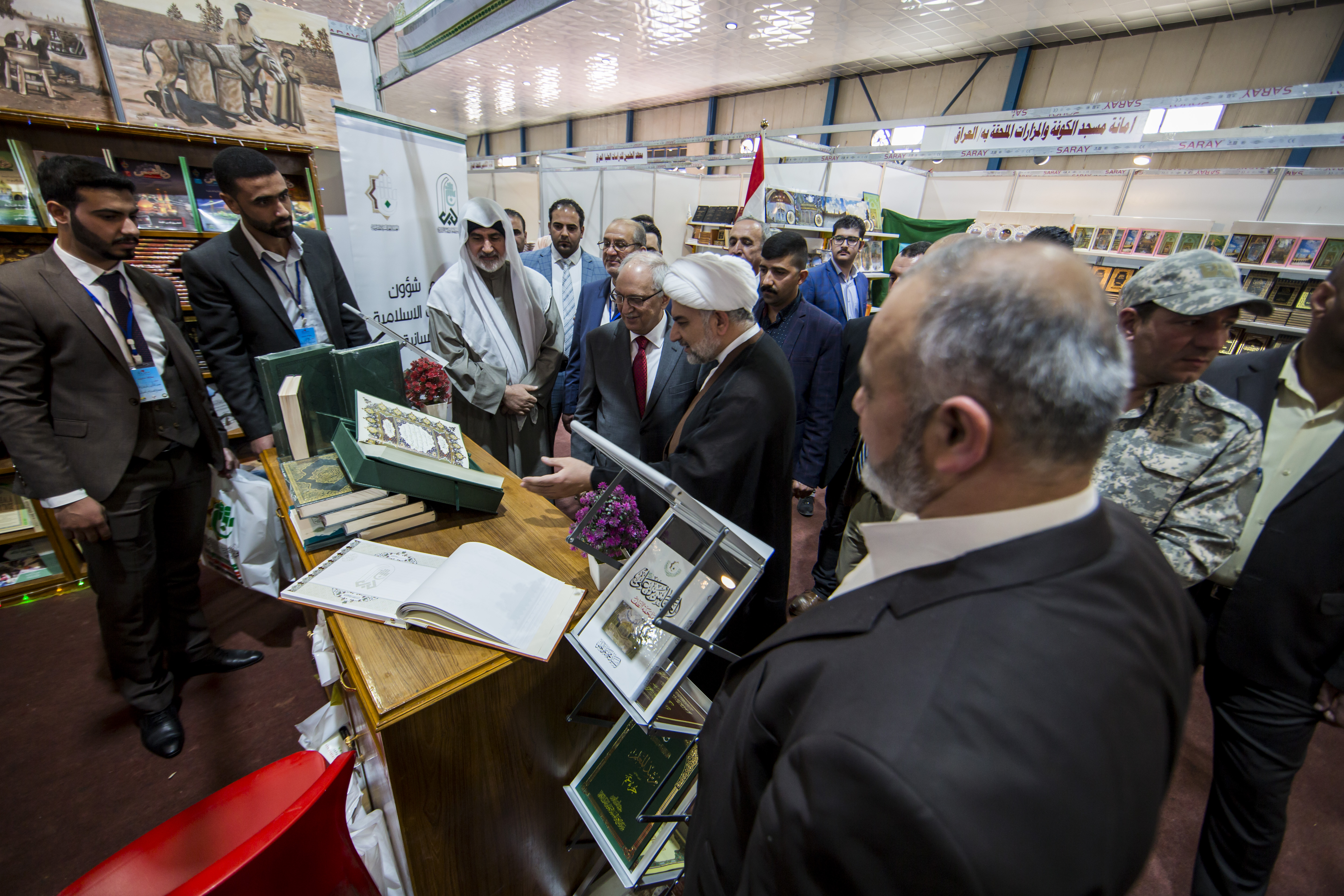 وزير التعليم العالي والبحث العلمي الدكتور عبد الرزاق العيسى وعند زيارته جناح العتبة العباسية المقدسة المشارك في معرض بغداد الدوليّ للكتاب والذي أقيم على أرض العاصمة بغداد، أشاد بإنجازات العتبة العباسية المقدسة وخصوصا المصحف الشريف الذي تم إعداده في مركز علوم القران وتفسيره وطبعه التابع لها قائلا إنه من دواعي الفخر والاعتزاز أن يخط ويطبع المصحف في كربلاء المقدسة وهو أول مصحف يخط ويطبع في العراق بحرف خطاط عراقي ومطبعة عراقية وهي ميزةٌ أمتاز بها الجناحُ عن بقيّة الأجنحة. يُذكر أنّ للعتبة العبّاسية المقدّسة العديد من المشاركات السابقة في معرض بغداد الدوليّ الذي يُعدّ من المعارض المهمّة لها بالإضافة الى مشاركتها في العديد من المعارض والمهرجانات داخل العراق وخارجه وبما يتناسب مع نهجها الذي اختطّته في نشر فكر وتعاليم أهل البيت(عليهم السلام)، ويشهد جناحُها إقبالاً متزايداً من قبل الجمهور وزيادةً في عدد الإصدارات في كلّ معرض عن سابقه.
