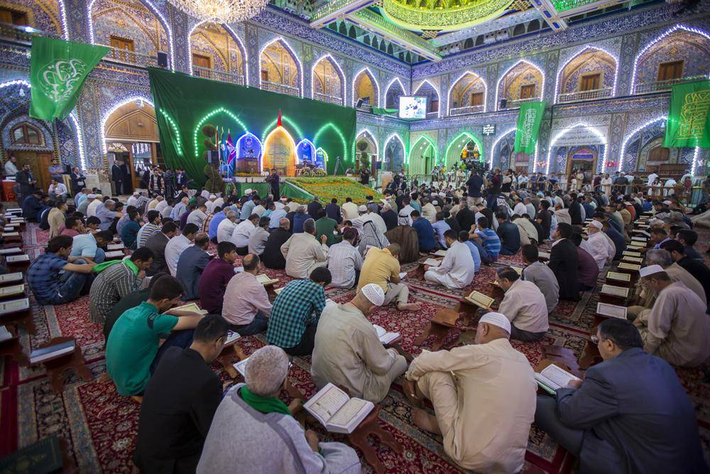 أقام معهد القرآن الكريم التابع لقسم شؤون المعارف الإسلامية والإنسانية أمسيةٌ قرآنيّةٌ عطرة مثلت مسكُ ختام فعاليّات اليوم الرابع لمهرجان ربيع الشهادة الثقافيّ العالميّ الذي يُقام تحت شعار: (الإمامُ الحسين-عليه السلام- غيثٌ منهمر وفيضٌ مستمرّ) والذي تنوّعت المشاركة فيه هذا العام، حيث شمل مشاركةً وحضوراً من (35) دولةً عربيّة إسلاميّة وعالميّة ومن قوميّات وطوائف متعدّدة. وقد شنّف أسماع الحضور في هذه الأمسية القرآنية المباركة كلٌّ من القارئ حيدر الجلوخان والقارئ أحمد عبد الحي من مصر والقارئ فلاح زليف والحافظ علي رضا من أفغانستان والقارئ سيد سعيد مسلم من مصر، كما ألقى السيد كريم الموسوي موشحات دينية بحب أهل البيت عليهم السلام. كما شهدت الأمسية تكريم أصحاب الحدث القرآني الأبرز ممثلي العراق الفائزين في المسابقة الدولية في ايران مضافاً إلى تكريم أساتذة دورات المرتضى التي أقامها معهد القرآن الكريم في العتبة العباسية المقدسة، وتكريم أفضل 10 قراء في دورة.