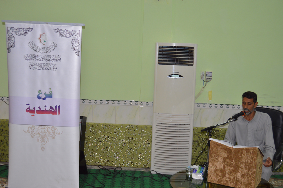 أقام معهد القرآن الكريم – فرع الهندية - التابع للعتبة العباسية المقدسة يوم السبت الموافق 20/5/2017 محفلاً قرآنياً في حسينية قمر بني هاشم – حي الجمعية – بمركز القضاء ويأتي هذا الحفل ضمن سلسلة المحافل القرآنية المستمرة التي يقيمها الفرع بهدف نشر الثقافة القرآنية بين أوساط المجتمع وقد شهد مجموعة من المشاركات لكل من (القارئ محمد العبودي، القارئ على المرتضى العيفاري، الحافظ محمد مظهر، الرادود الملا زهير البرقعاوي) كما شهد الحفل كلمة للسيد حامد المرعبي مسؤول الفرع والتي تحدث فيها عن مجموعة من المحاور القرآنية معرفاً بقيمة السير بهدي هذا الكتاب البين وضرورة إشراك العترة الطاهرة معه في أخذ العبر وفي ختام كلمته عرف السيد المرعبي بجملة من نشاطات المعهد الجديدة. المحفل شهد حضوراً عدد من الشخصيات الدينية والاجتماعية وعشاق الكتاب العزيز وقد أقيمت مسابقة للحاضرين شملت مجموعة من المعلومات القرآنية القيمة وزعت في ختامها مجموعة من الجوائز على أصحاب الإجابات الصحيحة. يذكر أن معهد القرآن الكريم فرع الهندية يقيم العديد من المحافل القرآنية بهدف نشر عبق الكتاب العزيز في ربوع القضاء فضلاً عما يقيمه من ختمات ودورات في الحفظ وأحكام التلاوة والمقامات وغيرها الكثير.