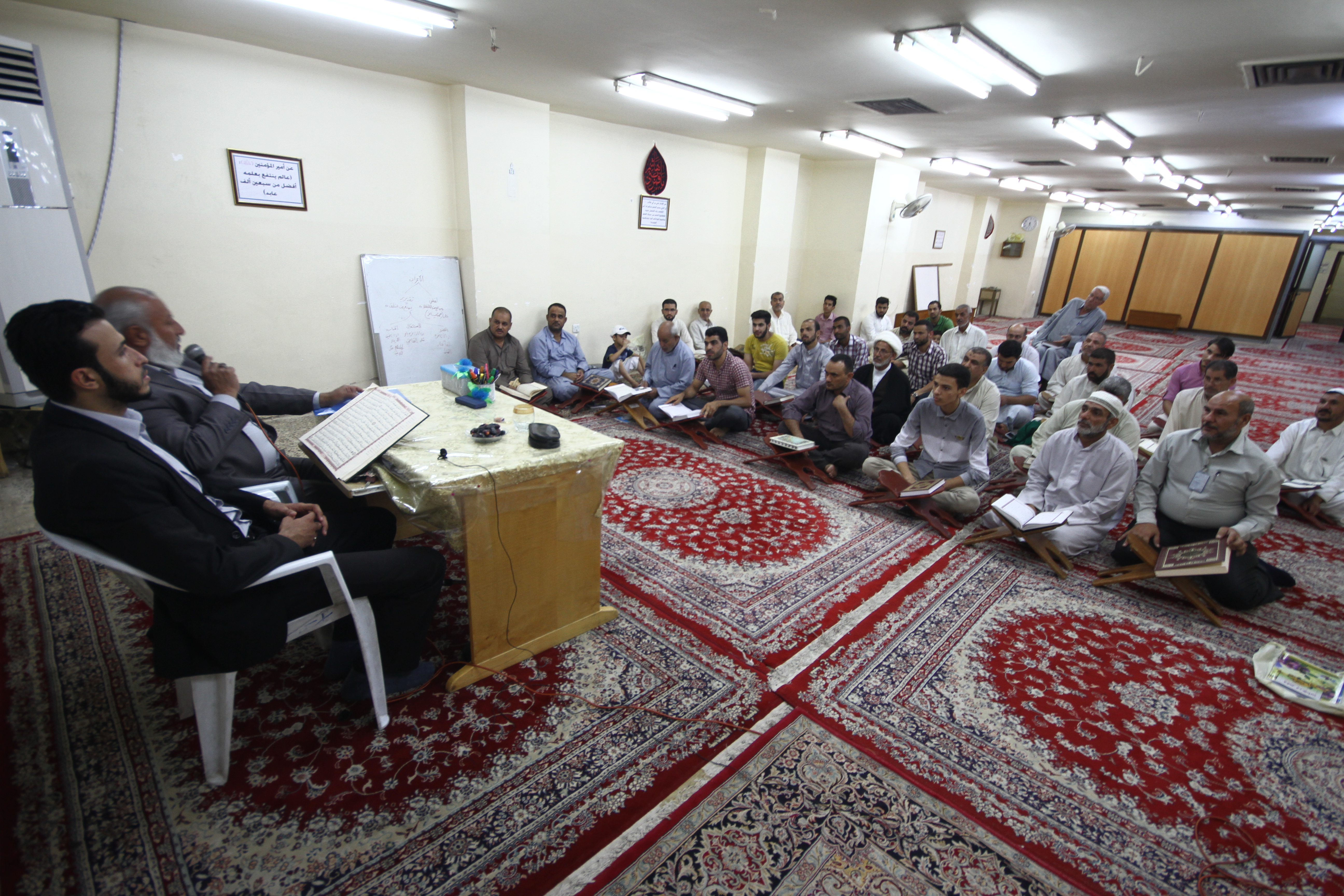 أقامت وحدة التلاوة في معهد القرآن الكريم التابع للعتبة العباسية المقدسة دورة ( سيد الماء ) التحقيقية التخصصية الأولى لقرّاء القرآن الكريم بالطريقة العراقية والمصرية, وذلك لأن الطريقتين في قراءة القرآن الكريم من الطرق الرصينة والمميزة والتي تمتاز بالحزن والخشوع في التلاوة وقد دعت الروايات الشريفة إلى تلاوة القرآن الكريم بالحزن منها ما روي عن الإمام الصادق ( عليه السلام) (إن القرآن نزل بالحزن فقراؤوه بالحزن) الدورة تتضمن دروس في أحكام التلاوة والصوت والنغم العراقي بجميع المقامات الأصلية والفرعية إضافة إلى تحقيق الأداء القرآني لآيات القرآن الكريم, وقد وصل عدد الطلبة المشاركين في هذه الدورة أكثر من ( 90) طالباً, هذا وتقام الدورة في كل يوم خميس من كل أسبوع في العتبة العباسية المقدسة. ومن الجدير بالذكر أن الدورة تأتي ضمن عدد من الدورات التي تقيمها وحدة التلاوة بهدف إعداد قرّاء مجيدين يخدمون الساحة القرآنية العراقية ويشرف على هذه الدورة في التحقيق (الأستاذ علاء الدين حمود)وفي النغم (القارئ السيد حيدر جلوخان الموسوي)