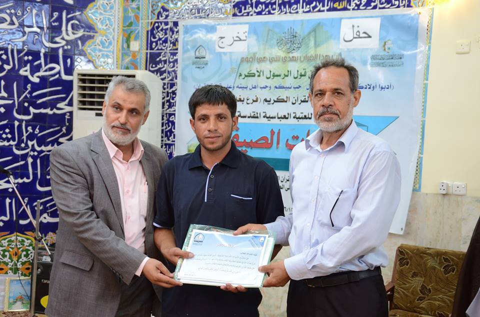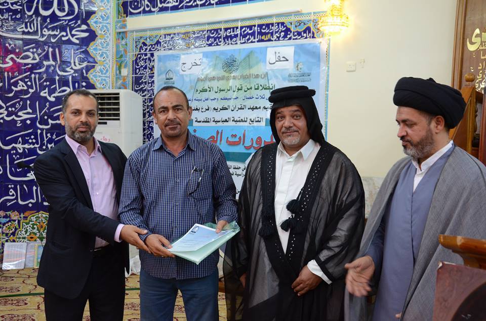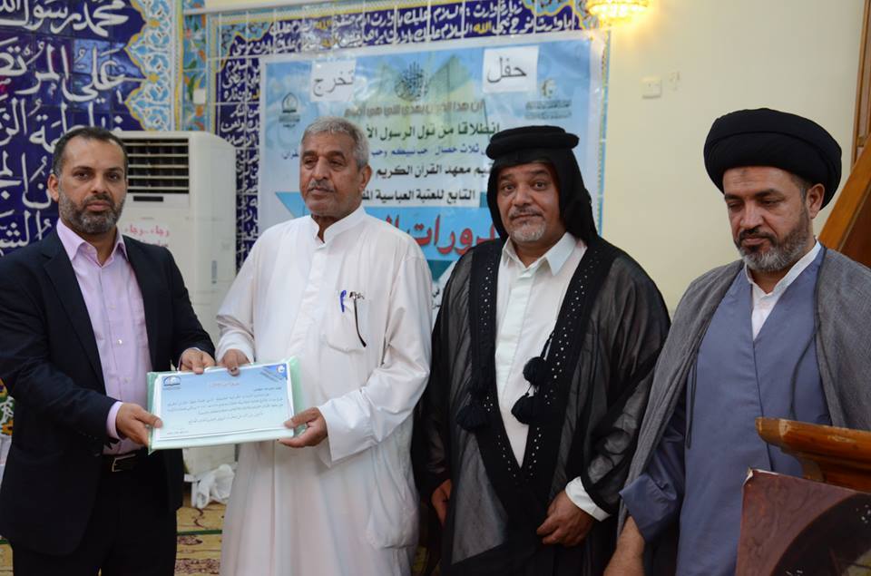 اقام معهد القرآن الكريم فرع بغداد التابع لقسم شؤون المعارف الإسلامية والإنسانية في العتبة العباسية المقدسة محفلا قرآنيا مباركا بماسبة تخرج الدورات الصيفية ضمن سلسة محافل اقامها المعهد في بغداد واقيم المحفل المبارك في منطقة جسر ديالى حسينية الهدى شارع 60 . بدء الحفل بتلاوة مباركة لاحد طلبة مشروع الدورات القرآنية الصيفية بعدها كلمة مسؤول الفرع الأستاذ نبيل الساعدي والذي قال فيها: نحن فرحون لما يحققه هذا المشروع الرائع والجميل وما يفرحنا اكثر هو ازدياد الاعداد عام بعد آخر كما وشطر الطلبة لحضورهم في هذه التجمعات القرآنية المباركة والسعي وراء المعرفة ونشر علوم القرآن وشكر أيضا إدارة معهد القرآن الكريم على توفير احتياجات إنجاح الدورات المباركة وتذليل كل الصعوبات في شبيل ذلك . بعد ذلك تخلل الحفل ابتهالات دينية واناشيد بحب القرآن وآل البيت ( سلام الله عليهم ) والقاء قصائد تحاكي المناسبة من قبل طلبة الدورات معبرة عن فرحهم ونشوتهم لتوزع بعد ذلك الشاهدات التقديرية على الطلبة المشاركين في الدورة . واختتم الحفل بالدعاء للمجاهدين بالنصر المؤزر وتحقيق النصر على قوى الظلام . يذكر ان معهد القرآن الكريم فرع بغداد يشارك ومنذ عدة أعوام في مشروع الدورات الصفية القرآنية الذي تقيمه وترعاه العتبة العباسية المقدسة وهو في تزايد مستمر لأعداد الطلبة المشاركين فيه.