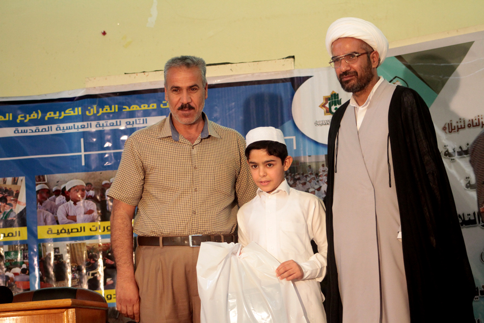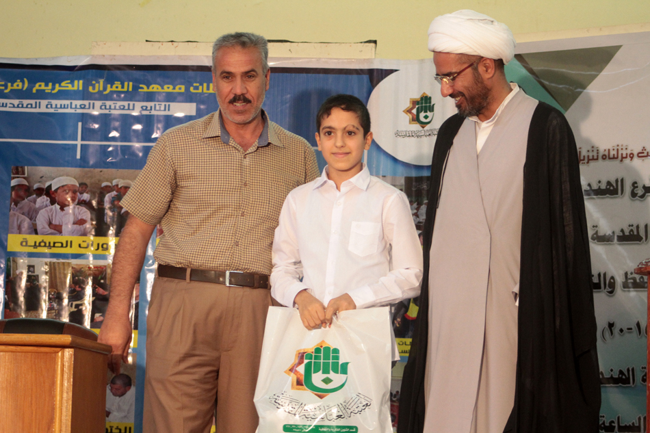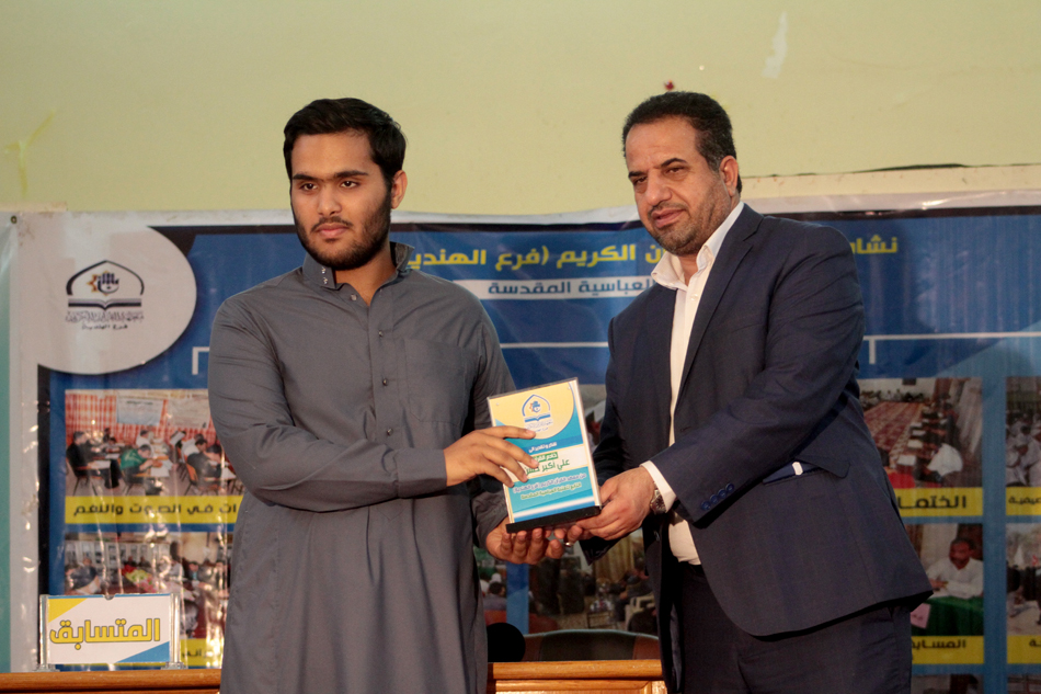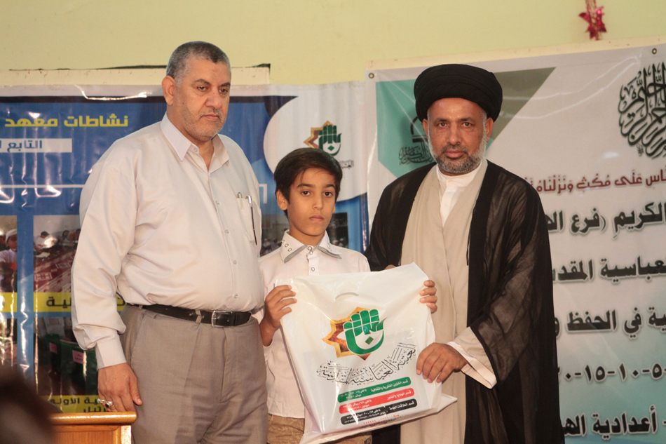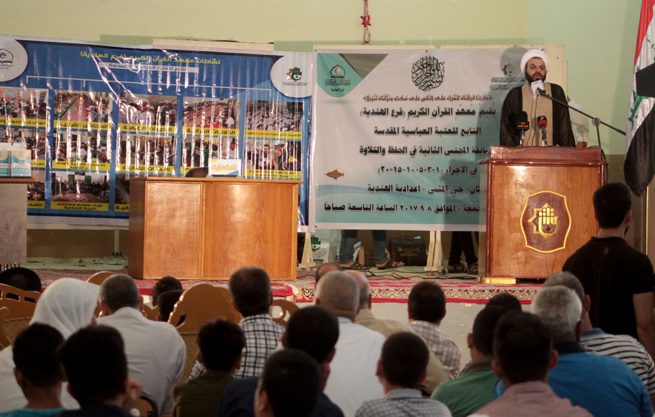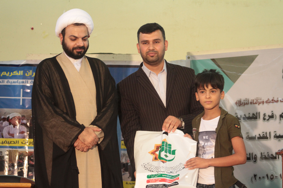 أقام معهد القرآن الكريم فرع الهندية التابع لقسم شؤون المعارف الاسلامية والإنسانية في العتبة العباسية المقدسة وبالتزامن مع عيد الغدير الأغر حفل ختام مسابقة المجتبى للحفظ والتلاوة بنسختها الثانية. نقطة شروع الحفل البهيج كانت من تلاوة مباركة للقارئ السيد مصطفى الموسوي بعد ذلك جاءت كلمة مسؤول فرع الهندية السيد حامد المرعبي قال فيها : إن هذه التجمعات تحفها الملائكة والبركة لأنها تحوي روح القرآن الكريم وما يضفي جمالية عليها هو تزامنها مع هذا اليوم المبارك وهو يوم الغدير الأغر كما ورحب فيها بالحضور المبارك وشكرهم على تحملهم عناء المجيء، بعد ذلك كانت كلمة لمدير معهد القرآن الكريم الشيخ جواد النصراوي قال فيها: يقيم معهد القرآن الكريم في العتبة العباسية في المقر الرئيس وفروعه العديد من النشاطات من محافل وندوات وأمسيات وغيرها من النشاطات التي نسعى من خلالها لنشر روح القرآن الكريم. وأضاف هذه المسابقة صادفت مع عيد الغدير مما يدعونا للفرح أكثر . وأضاف : علينا جميعا أن نعمل بالقرآن الكريم ونقتدي بالقرآن الناطق علي بن أبي طالب (عليه السلام) وهما وجهان لعملة واحدة وأوصى الشيخ النصراوي طلبة الحفظ بالبقاء والاستمرار في خط القرآن الكريم لأنه سبيل التوفيق والنجاح كما شكر ذوي الطلبة لتشجيع آبناءهم للانخراط في هذا الطريق واختتم كلمته بالدعاء للقوات الأمنية والحشد الشعبي بالنصر وللشهداء بالرحمة والجرحى بالشفاء العاجل. بعد ذلك جاءت فقرة الحفظ والتي يسال فيها الطلبة الحفاظ عن بداية السورة من خلال إشارة وهو يكمل النص من ثم صدحت حناجر لمجموعة من طلبة الفرع بنشيد الآباء و أهازيج ولائية تغنت بحب امير المؤمنين (عليه السلام)و إستمع الحضور إلى تلاوة عطرة للفائز الأول ل(١٠) أجزاء الطالب كميل حيدر جواد. بعد ذلك وزعت الجوائز على لجنة التحكيم والطلبة الفائزين الثلاث الأول على الأجزاء (١-٣-٦-٩-١٢ -١٥) ليكون مسك الختام مع كلمة مسؤول النشاطات في فرع الهندية الاستاذ ثائر حسن عبود استعرض من خلالها أهم نشاطات الفرع وهي إقامة الأمسيات والمحافل والندوات و الدورات الصيفية والاشتراك بمشروع تعليم القراءة في الزيارات المليونية كما أقام الفرع دورات لمعلمي التربيه الإسلامية ودورات في الآذان وغيرها من الأنشطة الهادفة لغرس روح القرآن وبذلك اسدل الستار على الحفل المبارك. من الجدير بالذكر أن معهد القرآن الكريم فرع الهندية يقيم هذه المسابقة للعام الثاني على التوالي في قضاء الهندية .