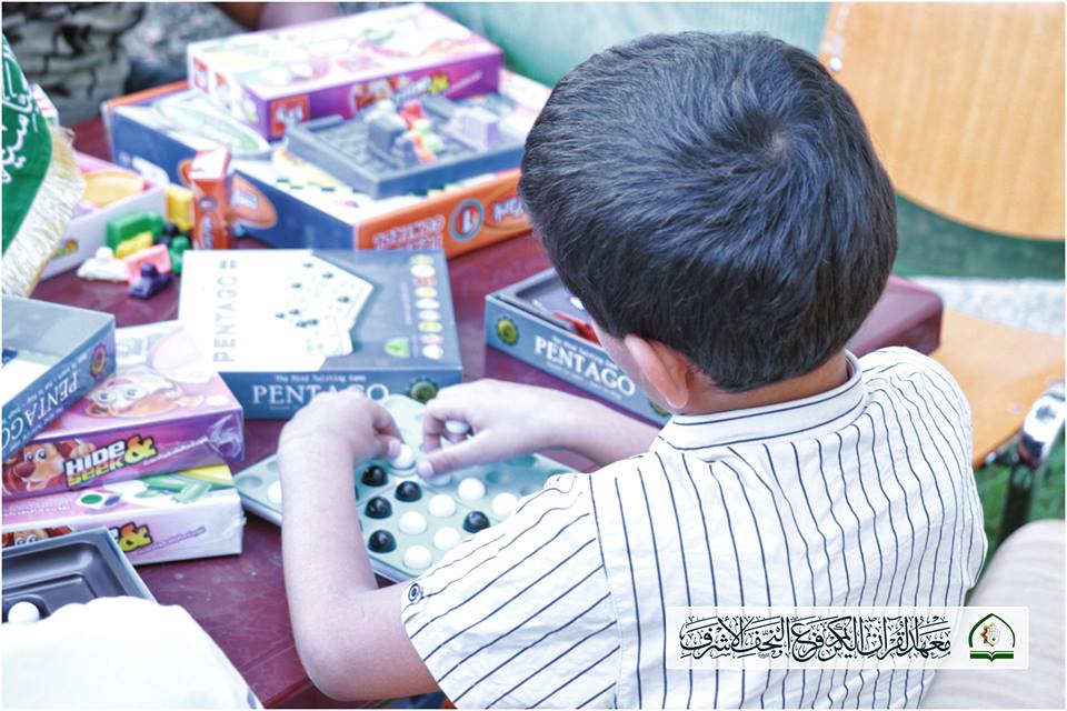 قام معهد القرآن الكريم / فرع النّجف الأشرف التابع للعتبة العباسية المقدسة بإستحداث برنامجاً ترفيهيّاً لتنمية مهارات طلبة حفظ القرآن الكريم عن طريق الألعاب الفكرية والعقلية، ويمكن للطّالب أن يُمارِسَ هذه الألعاب بعدما يُتمّ اختبارَهُ اليوميّ في الحفظ هذا فضلاً عن الهدف الرّئيس لاستحداث هذا البرنامج؛ فإن لألعاب العقل دوراً مُهِمٌّاً في رفع قابليّة الطّلاب على حفظ القرآن الكريم. ويذكر أنّ هذه الألعاب: 1. تُنمّي الذّاكرة. 2. تقوّي الذّاكرة والانتباه. 3. تُنَشِّطُ الذّاكرة (قصيرة المدى). 4. تُحفّز روحَ المُنافسةِ المُعتمِدَةِ على إعمال العقل والتّركيز. 5. تُساعد في تعليم كيفيّة اتّخاذ الخطوات الصّحيحة للوصول إلى الهدف. 6. تُعلّم الطّالب اتّخاذ القرارات الحاسمة في الوقت المناسب للوصول إلى الهدف الصّحيح. ومن الجدير بالذكر ان معهد القرآن الكريم يسعى جاهداً الى تحقيق كل ما هو يخدم القرآن الكريم والعترة الطاهرة في جميع ارجاء العالم .