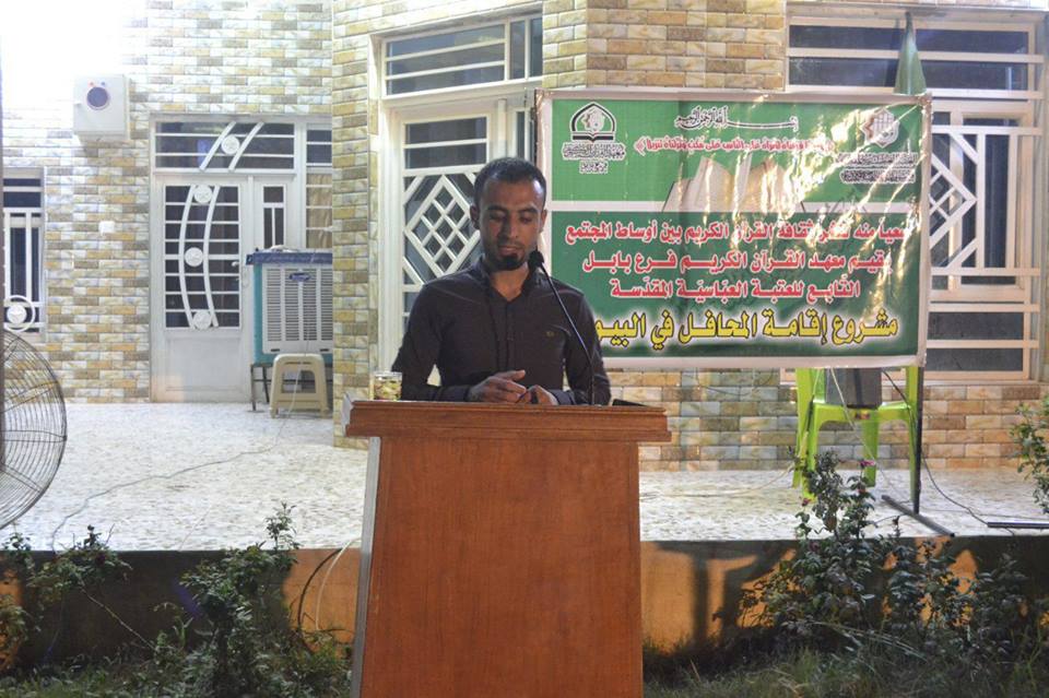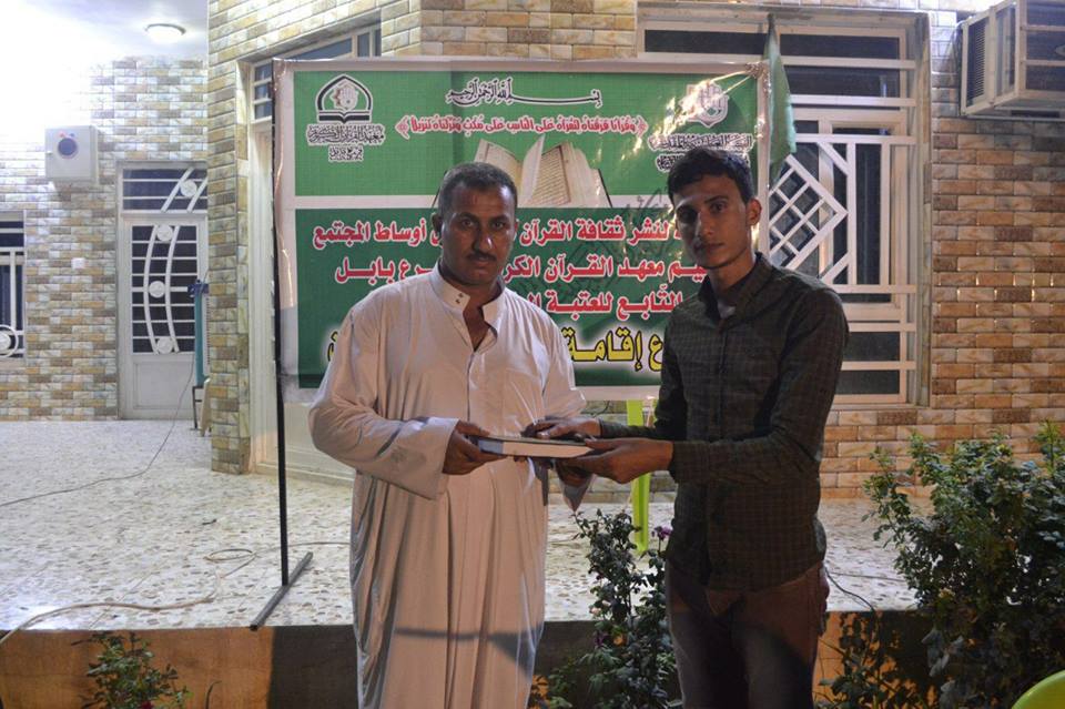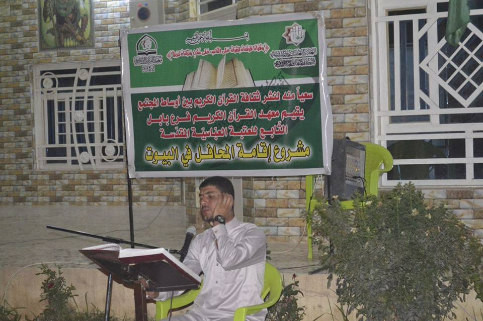 اقام معهد القران الكريم / فرع بابل التابع للعتبة العباسية المقدسة محفلا قرآنياً مباركاً في منطقة المهناوية ، بمناسبة حلول شهر محرم الحرام واستذكراً لفاجعة كربلاء واستشهاد اهل بيت الرسول (صلى الله عليه وآله) حيث شهد المحفل فقرات متعددة كانت أولها تلاوةً عطرة شنفت اسماع الحاضرين للقارئ (كرار هادي) و جاءت بعدها كلمة للأستاذ (عامر جواد اليساري) , بعنوان ((بناء الوطن أم المواطن)) ، وأيضاً تلتها فقرة الحفظ للحافظين (علي حيدر وعلي كريم) ، وكان ختامها مسك بتلاوة عطرة للقارئ (حسين خضير) ومن ثمّ قراءة دعاء الفرج لتعجيل في ظهور الحجة المنتظر(عج) وقراءة سورة الفاتحة الى ارواح شهدائنا الأبرار. وقدم الحاضرين الشكر والامتنان للساعين على مشروع أقامة المحافل القرآنية في البيوت آملين ان يعاد هذا المحفل في الايام المقبلة يذكر أن معهد القرآن الكريم التابع للعتبة العباسية المقدسة يقيم العديد من الدورات والمسابقات والمحافل القرآنية في المناسبات المختلفة بغية نشر الوعي القرآني بين أواسط المجتمع.