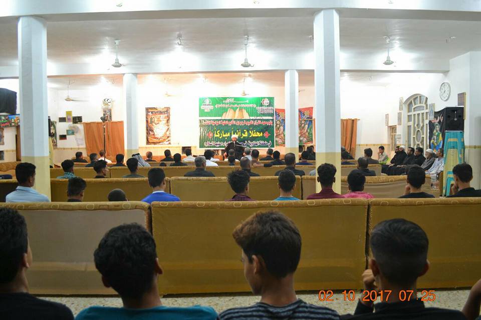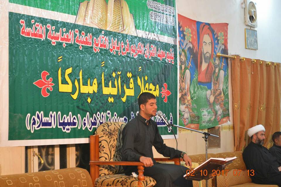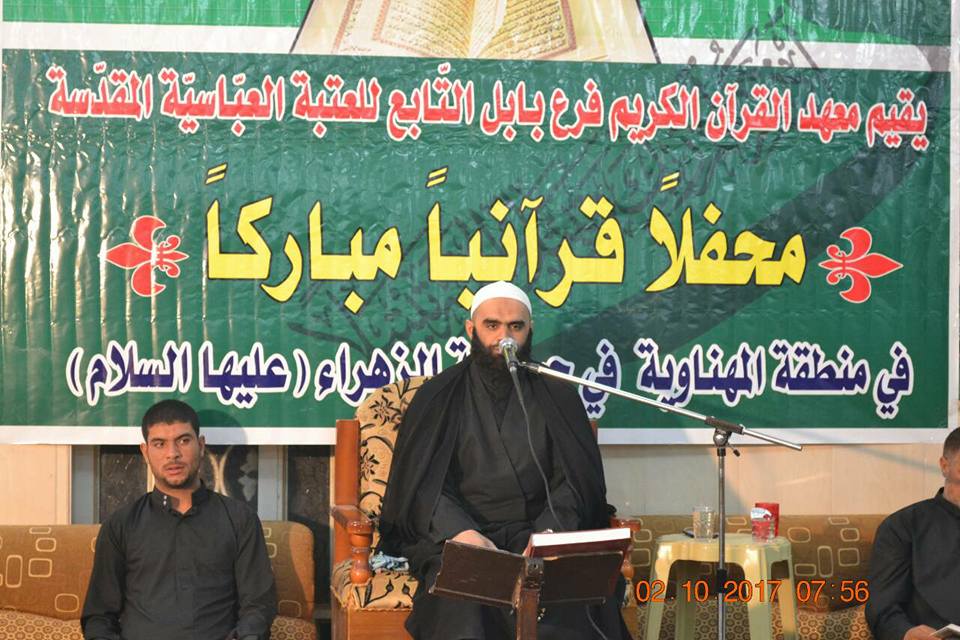 اقام معهد القرآن الكريم /فرع بابل التابع للعتبة العباسية المقدسة محفلاً قرآنيا مباركاً ومجلس عزاء بذكرى إستشهاد سبط النبي الأكرم (صلى الله عليه واله) سيد الشهداء الإمام الحسين بن علي (عليهم السلام) وذلك في منطقة المهناوية / سدة الهندية في مسجد وحسينية فاطمة الزهراء (عليها السلام) حيث شهد المجلس فقرات متعددة كانت أولها تلاوةً عطرة شغفت قلوب الحاضرين للقاري (حسين خضير) ثم تلته محاضرة فقهية للشيخ (يونس المالكي)، وكان ختامها مسك بتلاوة عطرة للقارئ الشيخ (حسام المنشداوي) وأختتم المحفل بقراءة دعاء الفرج وسورة الفاتحة لأرواح شهدائنا الابرار. ومن الجدير بالذكر أن معهد القرآن الكريم التابع للعتبة العباسية المقدسة له نشاطات قرآنية متتالية يسعى جاهداً الى نشر الوعي القرآني بين أواسط المجتمع كافة.
